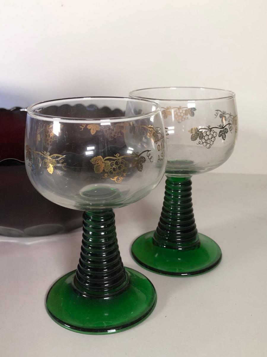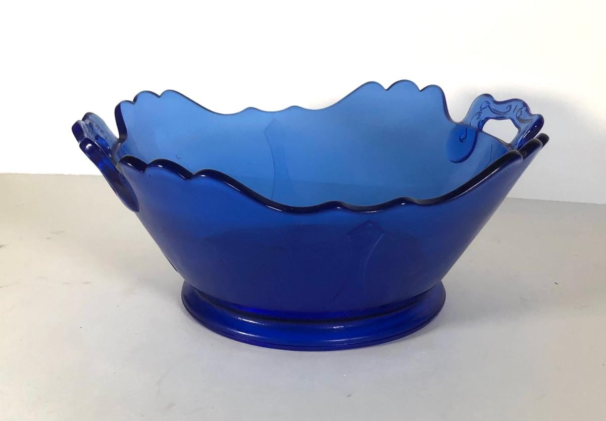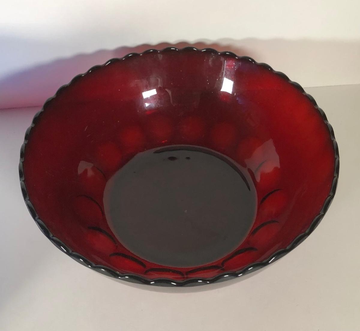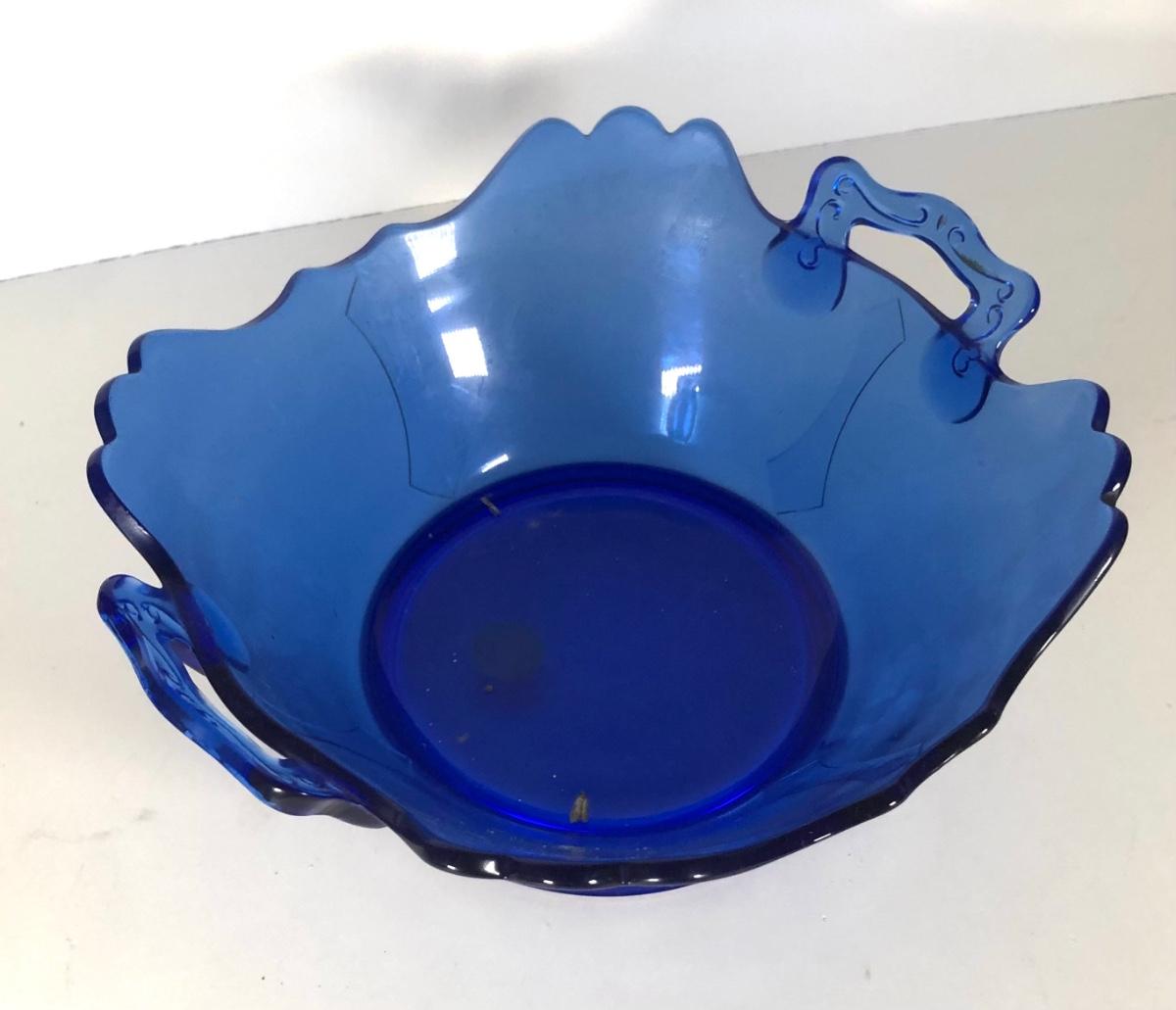 LOT 131K: Colorful Glassware - Vintage Luminaric Stem Beehive Glasses, L E Smith Mt Pleasant Cobalt Blue Cake Plates & Bowl & Ruffle Edge Ruby Bowl