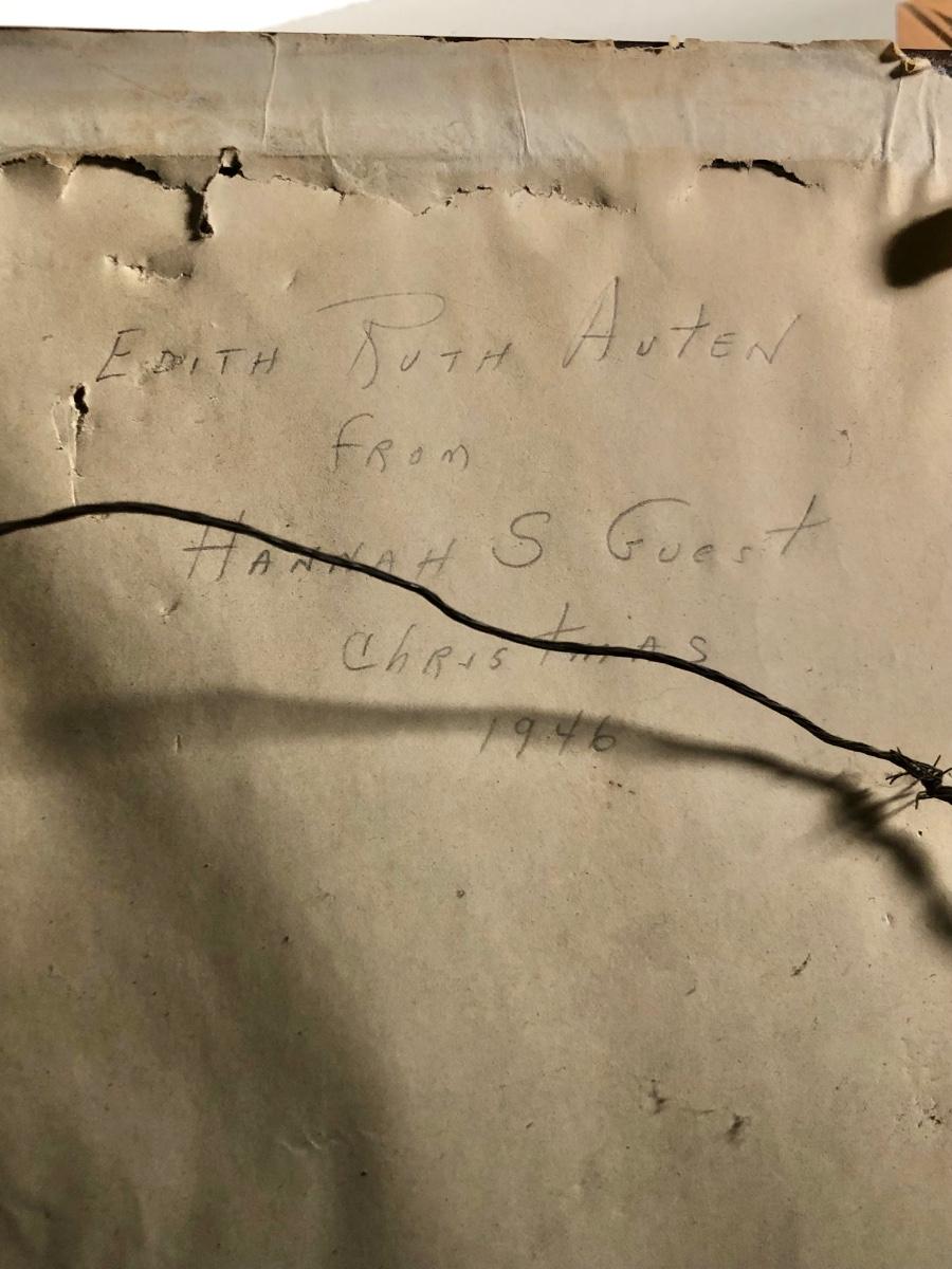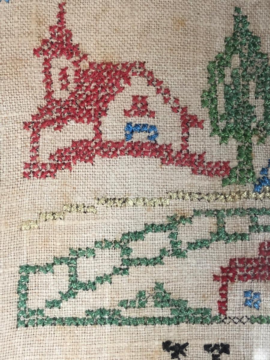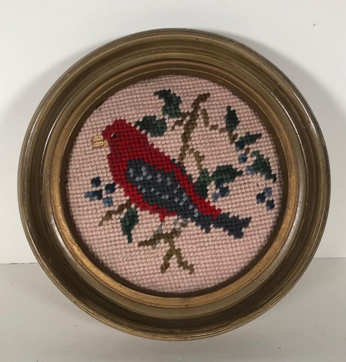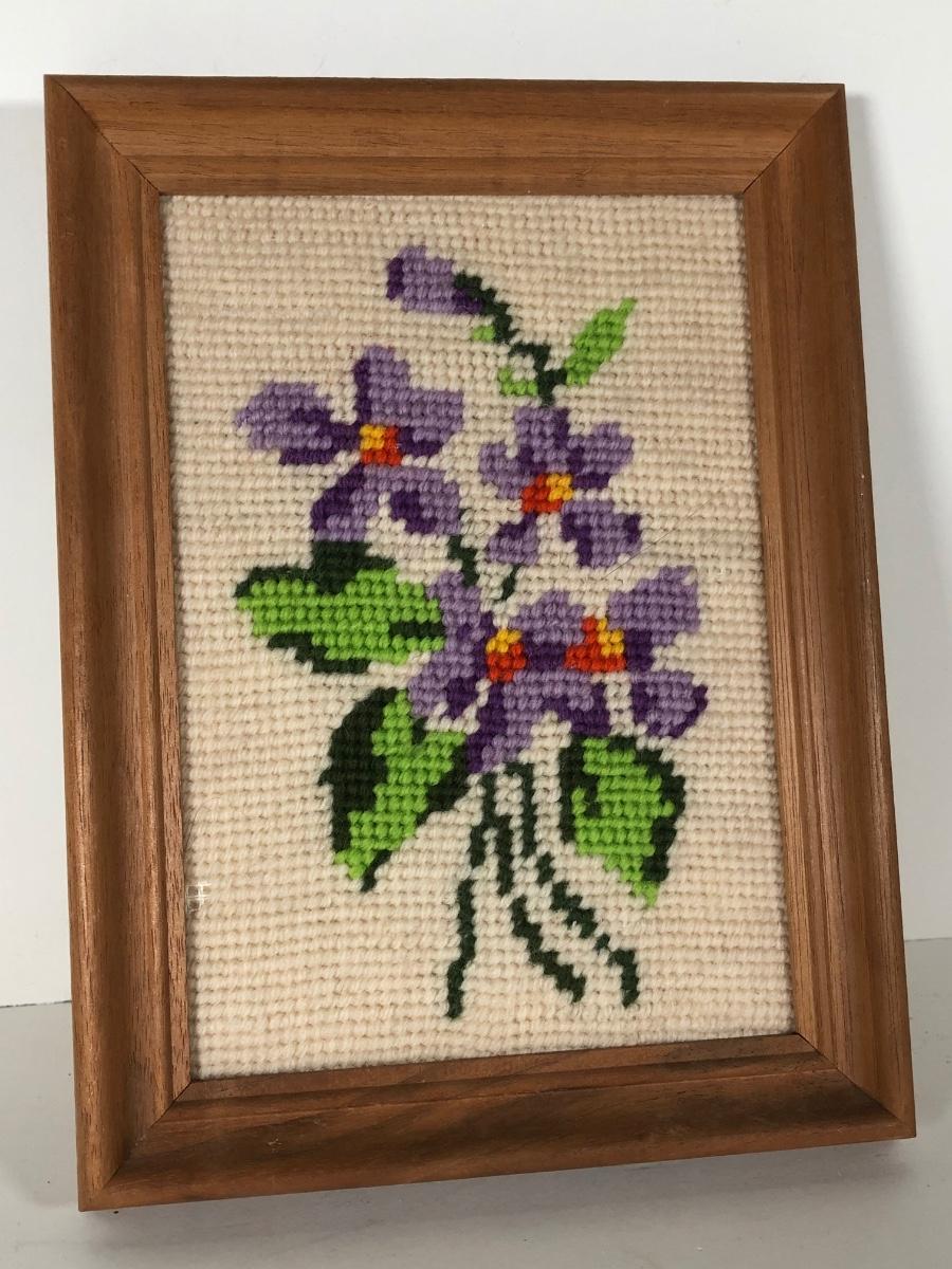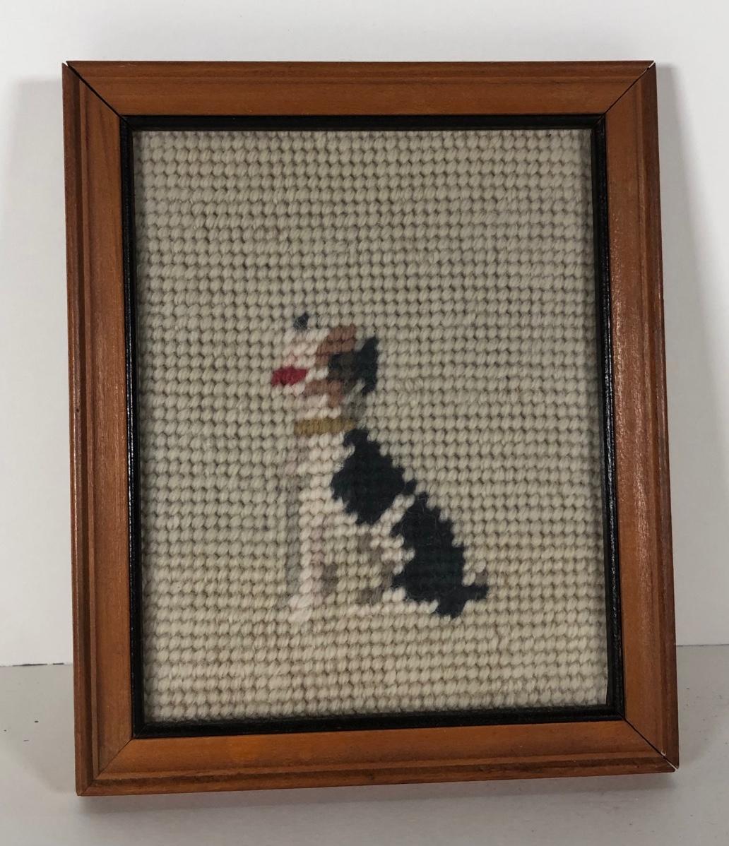 LOT 132D: Vintage Framed Cross Stitch / Needlepoint - 1946 Childhood Quote, Flowers, Dog & Cardinal