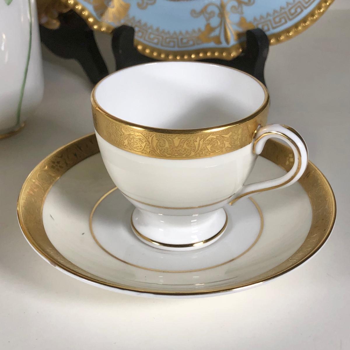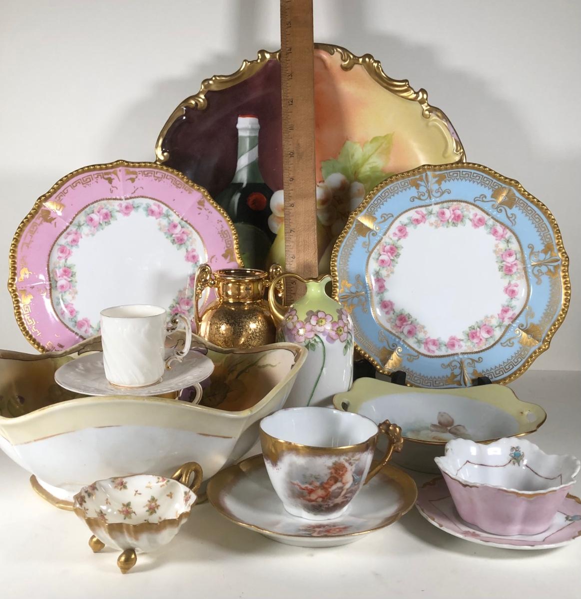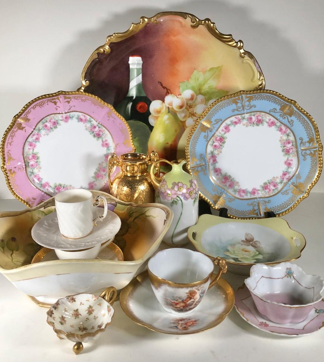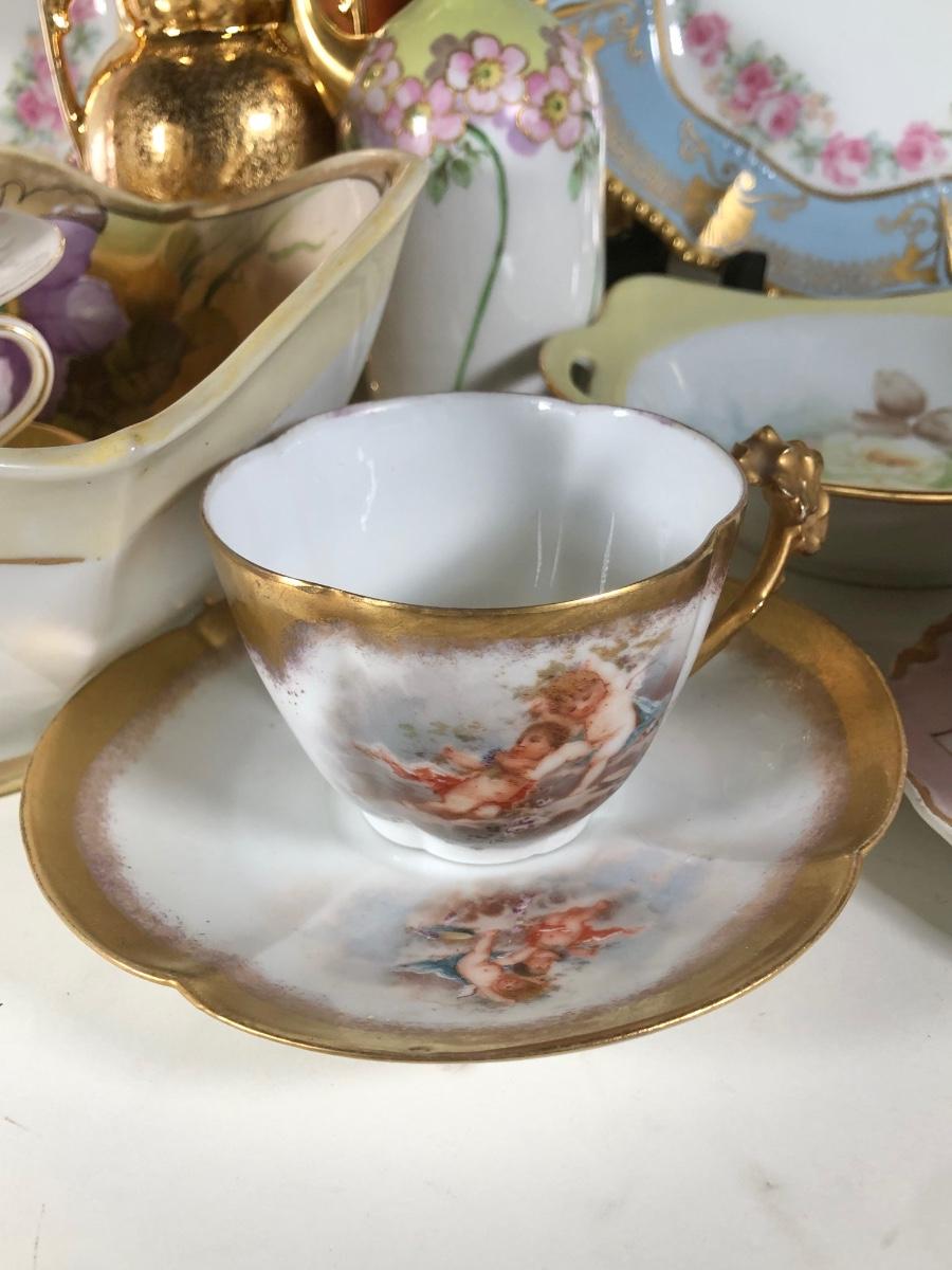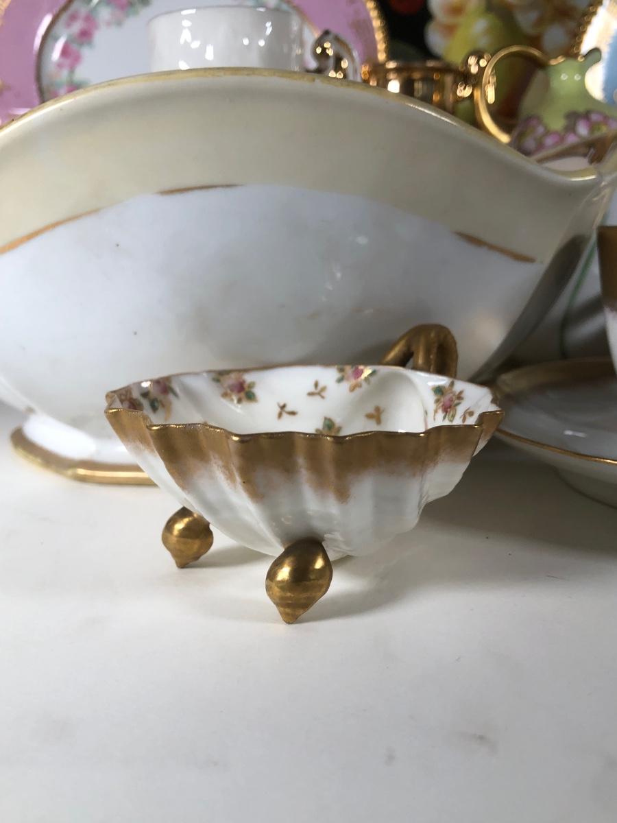 LOT 133D: Collection of Vintage Gold Accent China - WG&Co France, Hand Painted Elma Davidson, Belleek, Nippon, Limoges Elite France & Coronet, Vienna, Minton Westminster