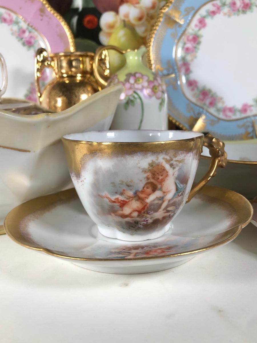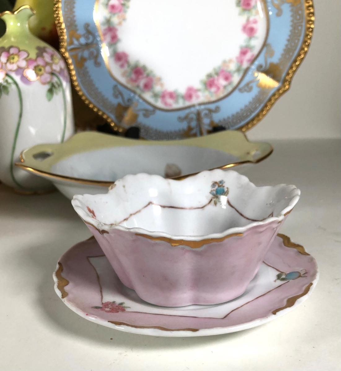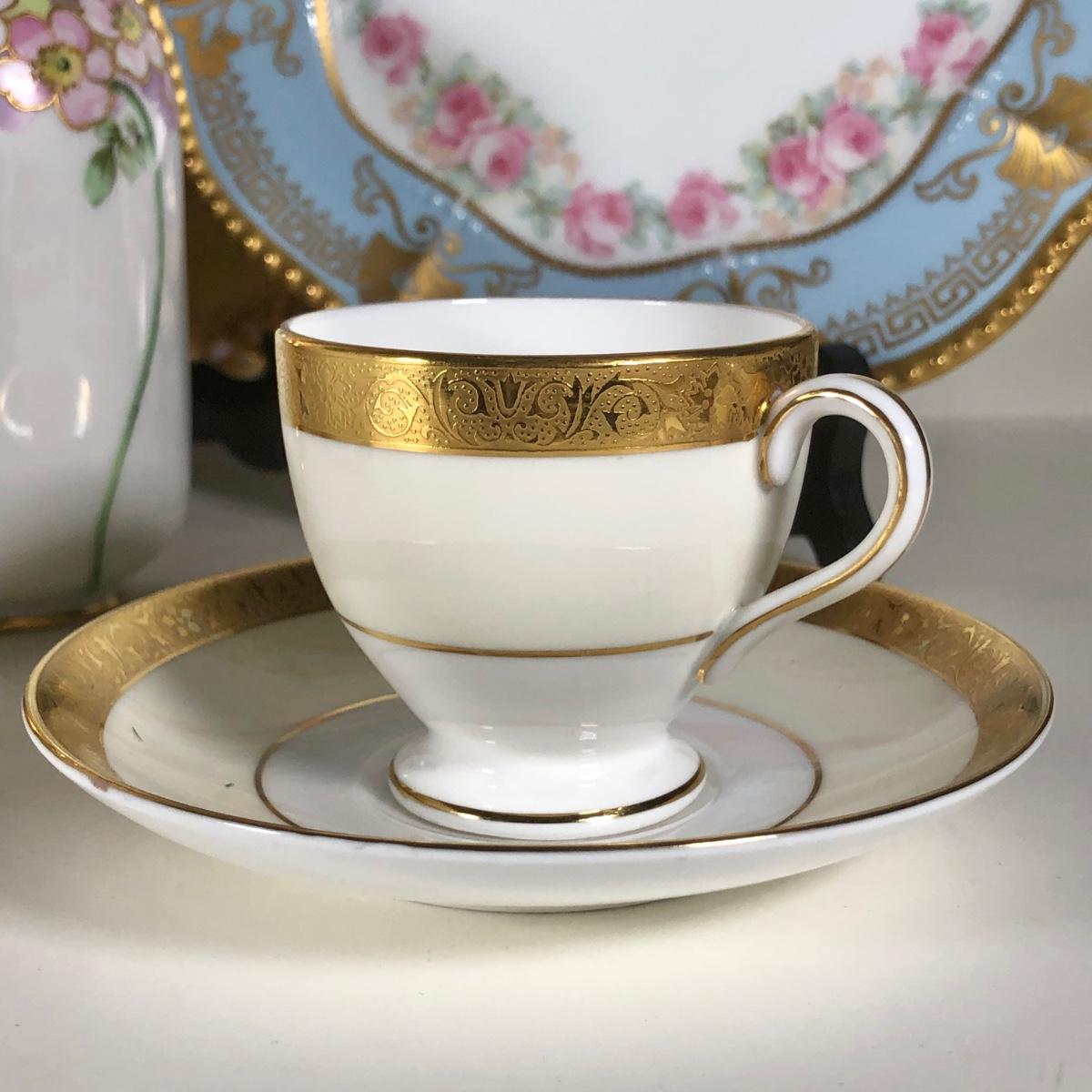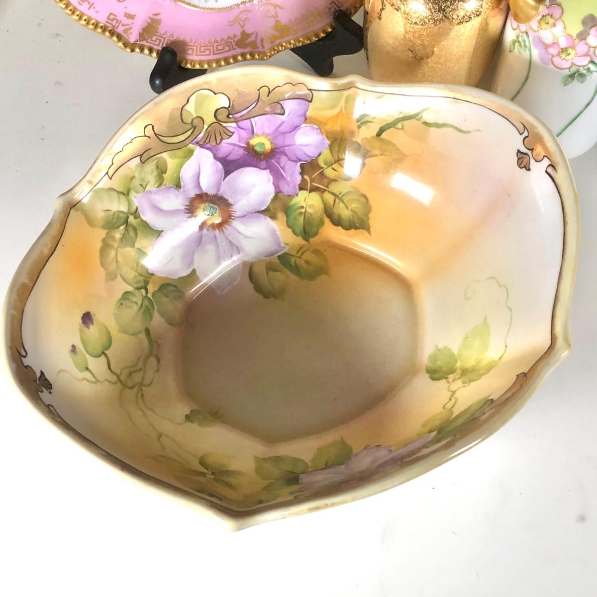 LOT 133D: Collection of Vintage Gold Accent China - WG&Co France, Hand Painted Elma Davidson, Belleek, Nippon, Limoges Elite France & Coronet, Vienna, Minton Westminster