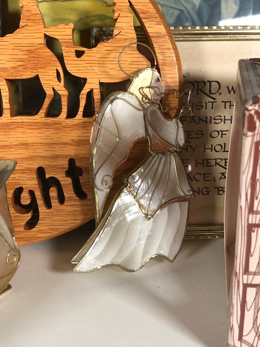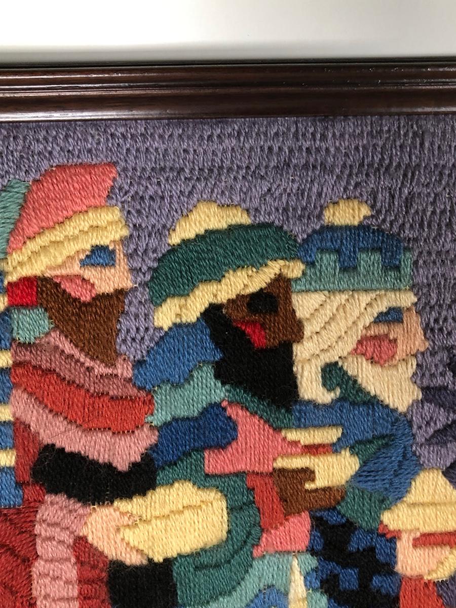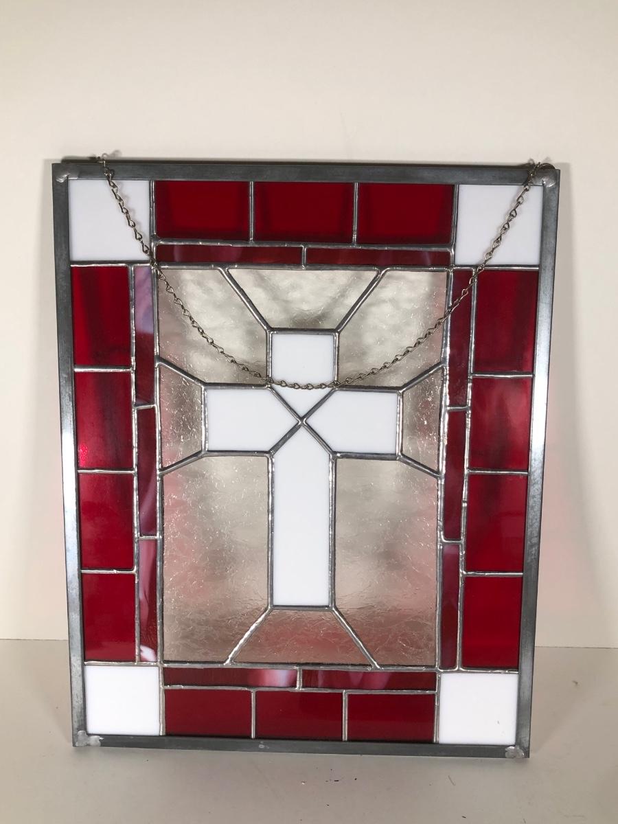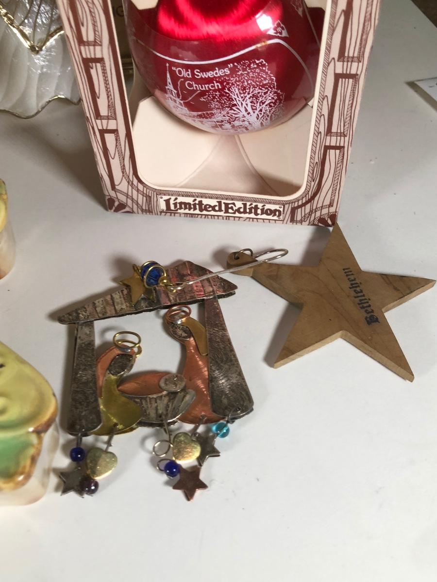 LOT 134D: Vintage Religious Home Decor - 1936 Framed Jesus Print, 3 Kings Embroidered Artwork, Stained Glass Cross, Brick from Trinity Church w/ Cover & More