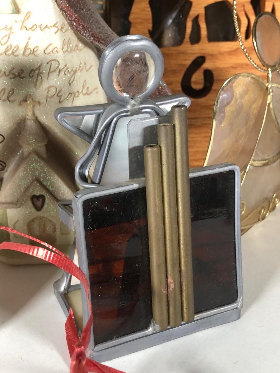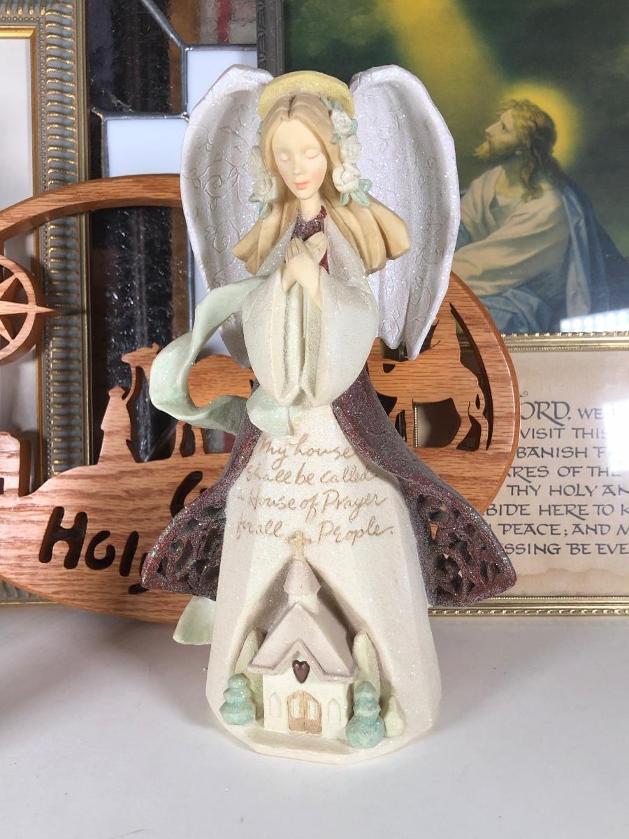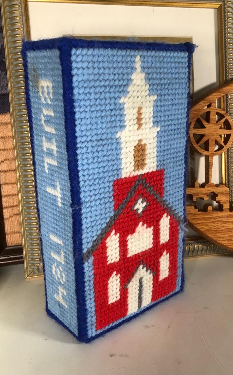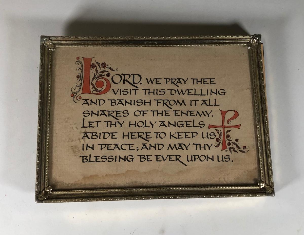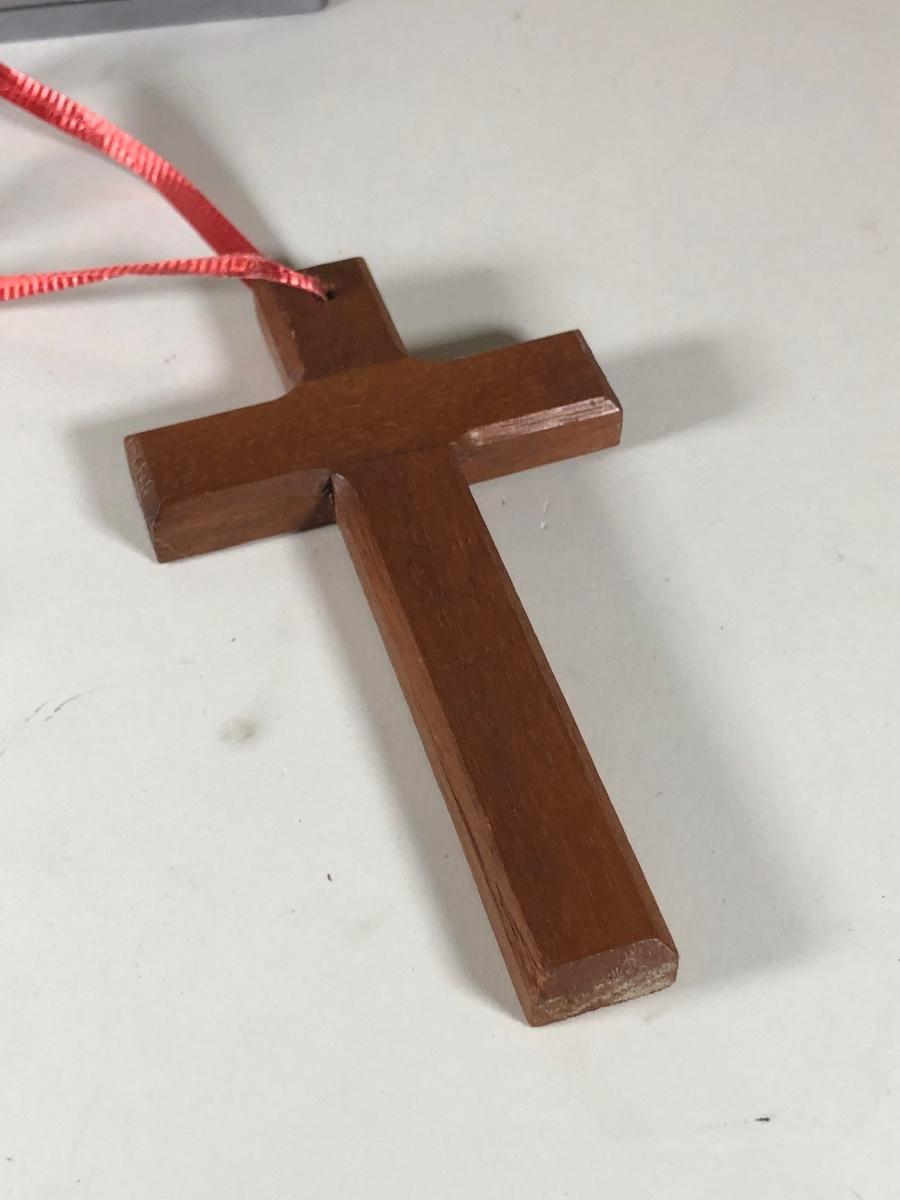 LOT 134D: Vintage Religious Home Decor - 1936 Framed Jesus Print, 3 Kings Embroidered Artwork, Stained Glass Cross, Brick from Trinity Church w/ Cover & More