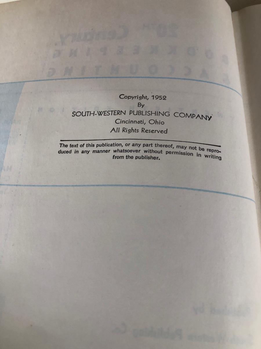 1952 20th Century Bookkeeping and Accounting 20th Edition First Year Course