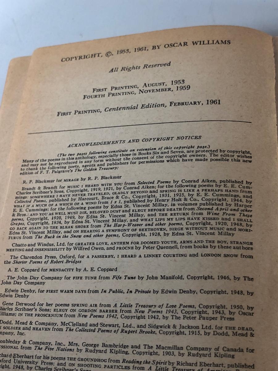 1961 Centennial Edition FT Palgraves The Golden Treasury revised & updated by Oscar Williams