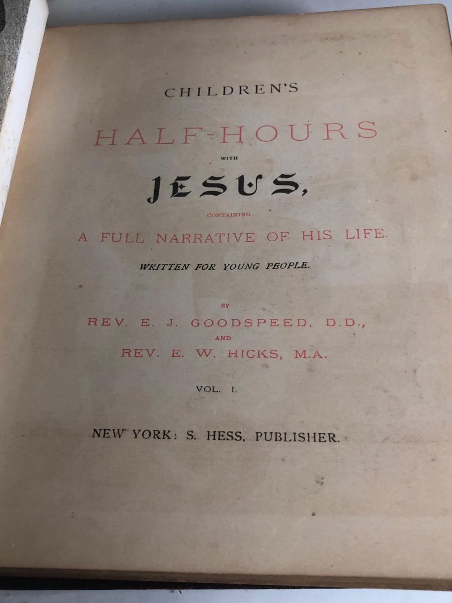 1877 Children's Half Hour with Jesus Volume I by Rev E J Goodspeed, DD & Rev E W Hicks, MA