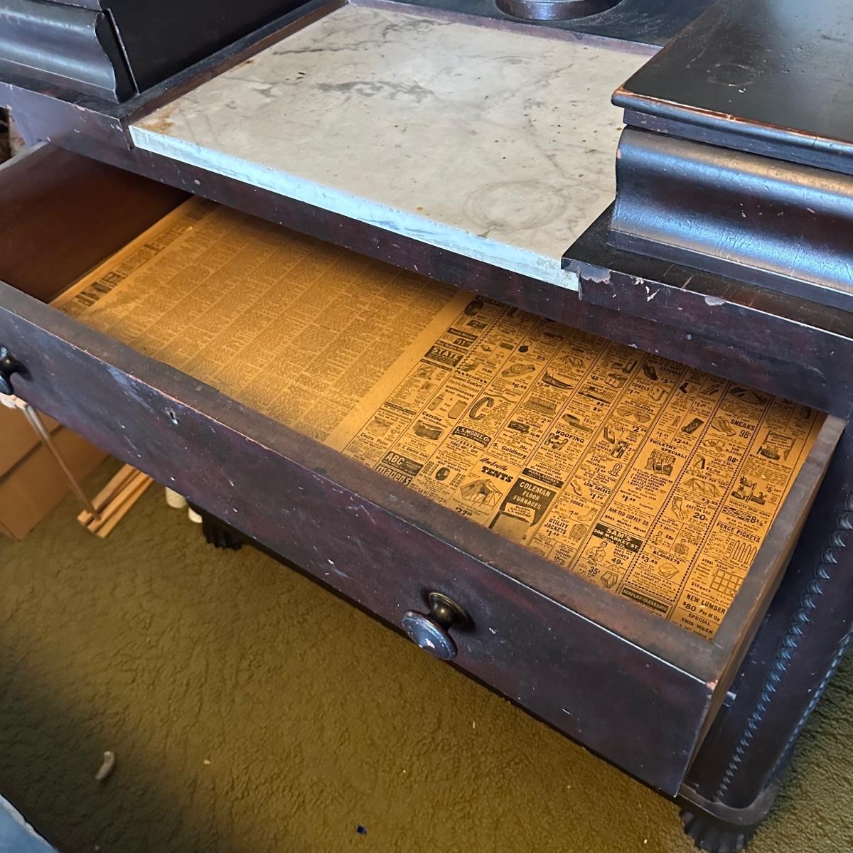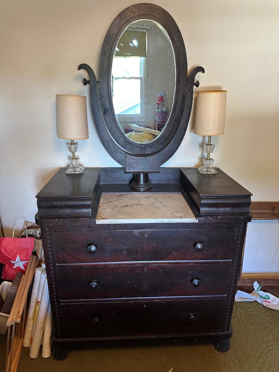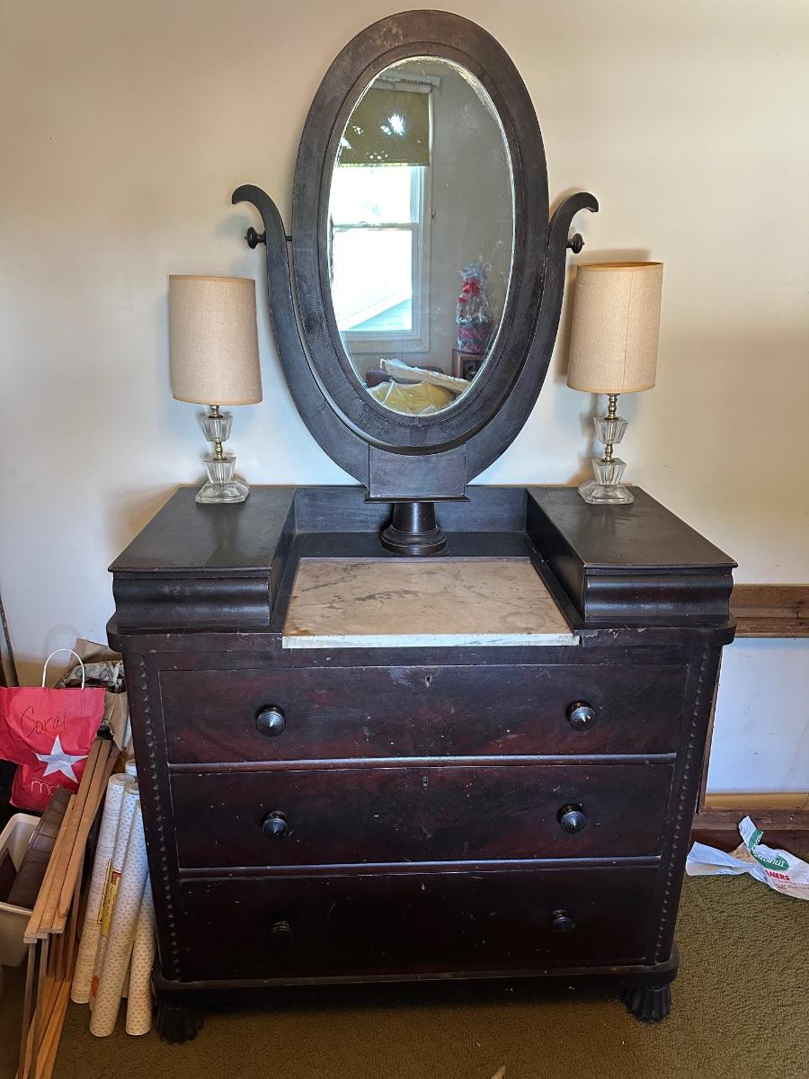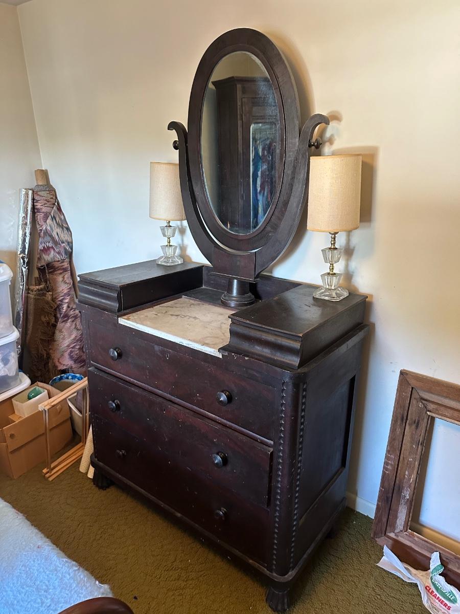LOT 161L: Antique Marble Top Dresser w/ Mirror