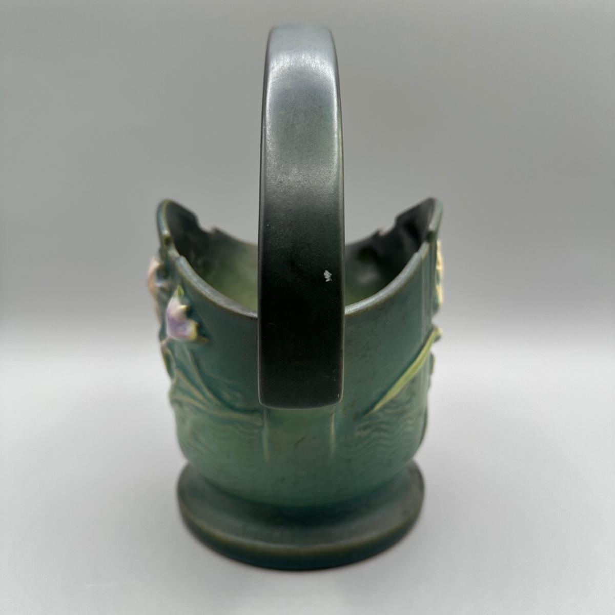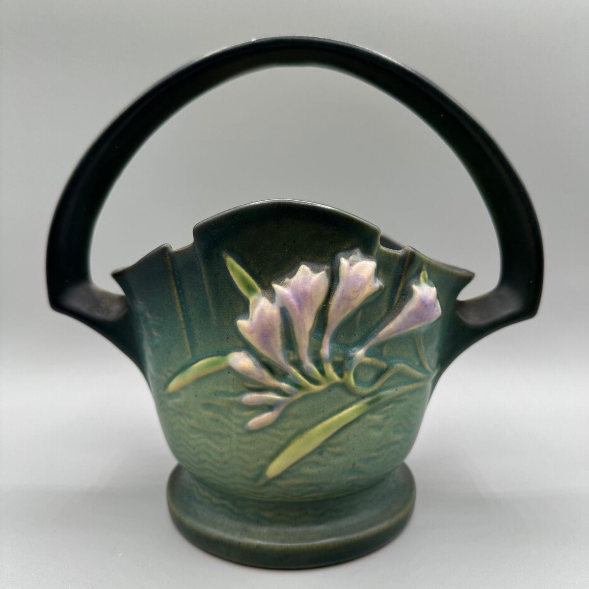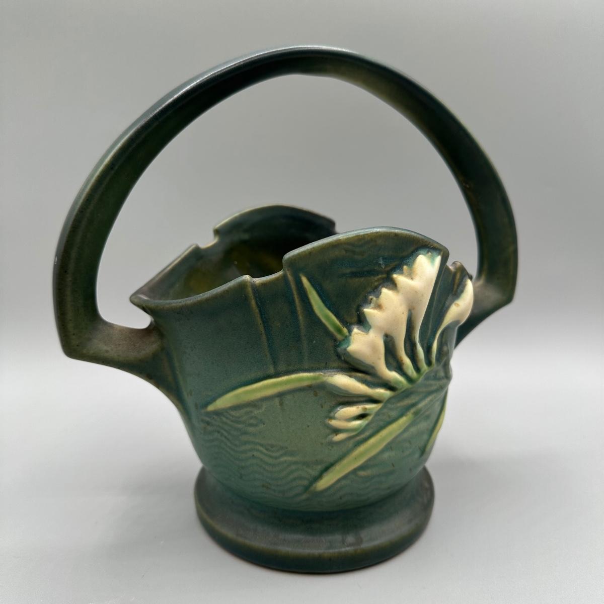 LOT 174L: Vintage 1940’s Roseville Pottery Green Freesia Basket