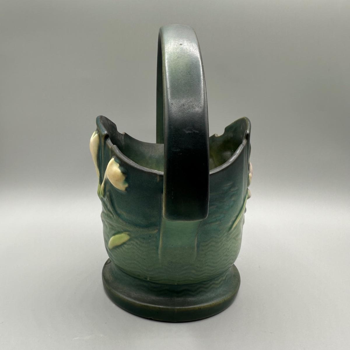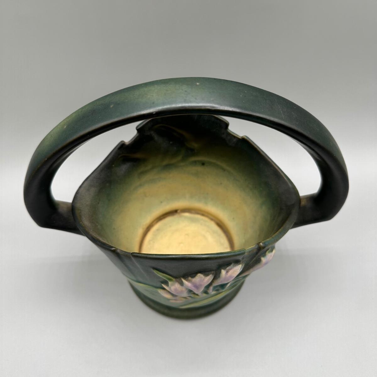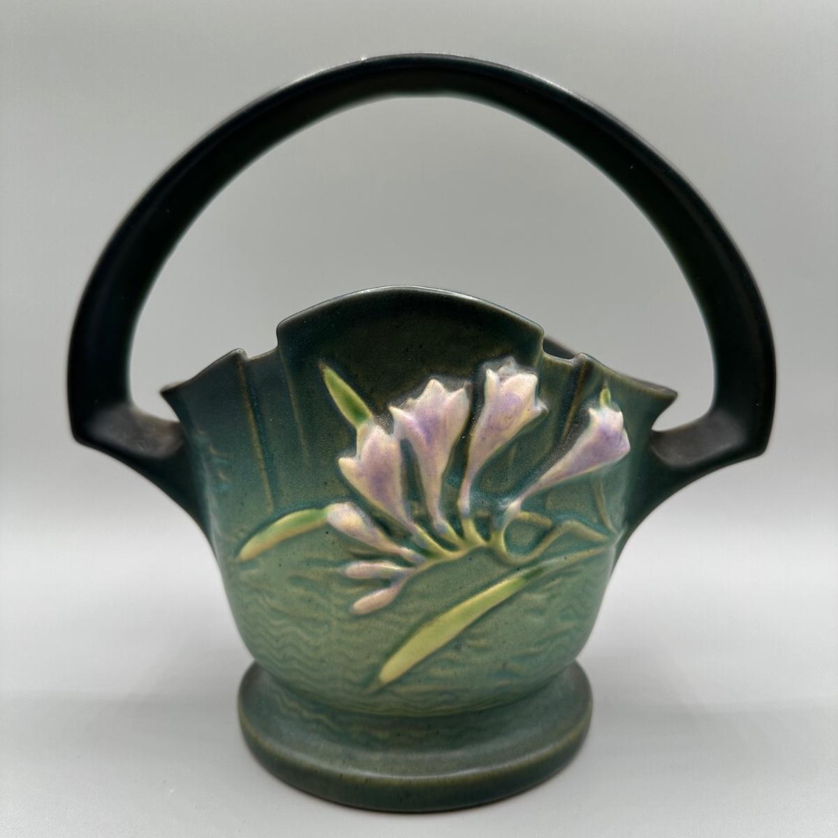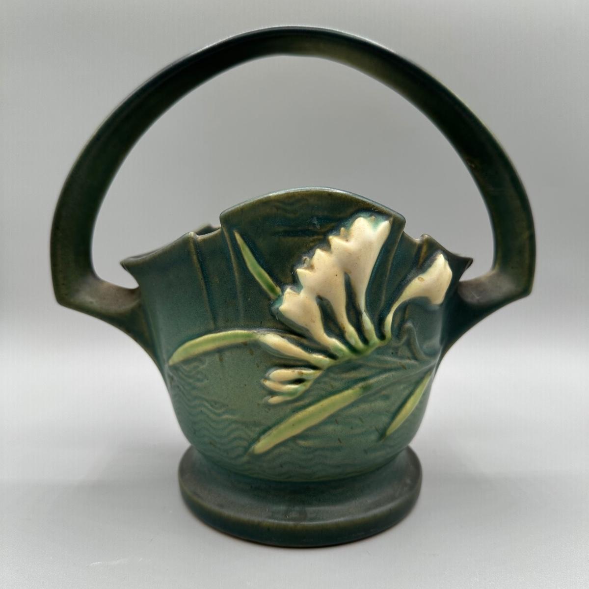LOT 174L: Vintage 1940’s Roseville Pottery Green Freesia Basket