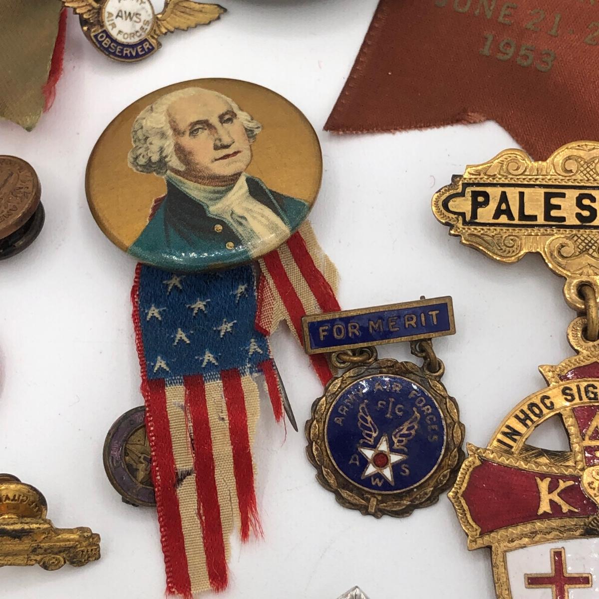 LOT 186J: Collection of Vintage Pins and Ribbons