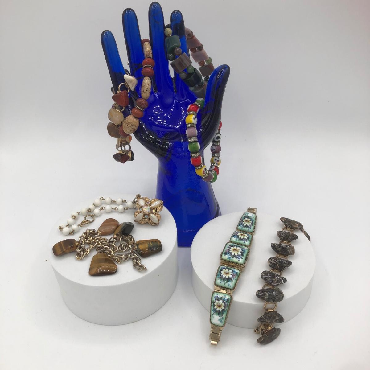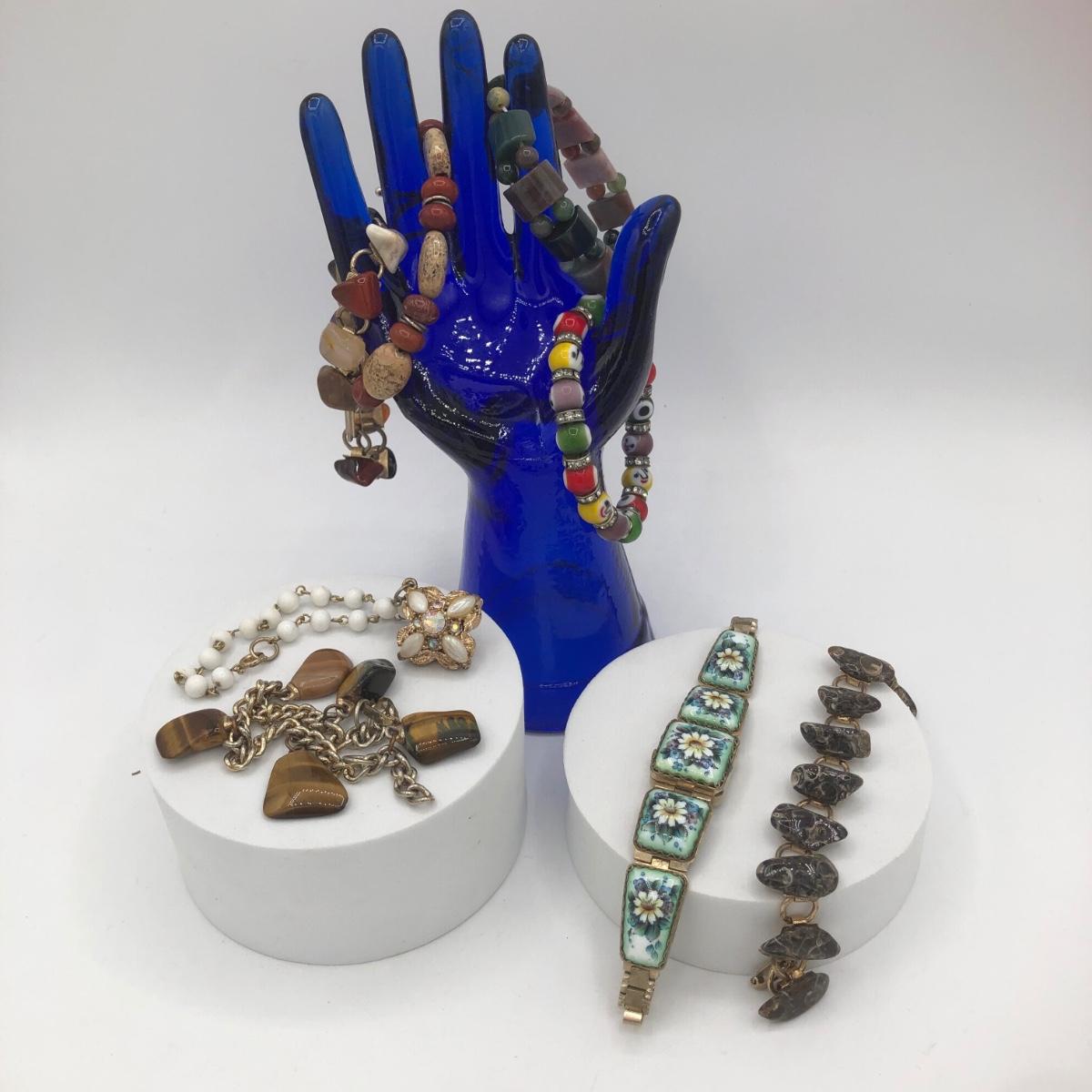 LOT 188J: Collection of Vintage Bracelets - Polished Stone, Floral Watch & More