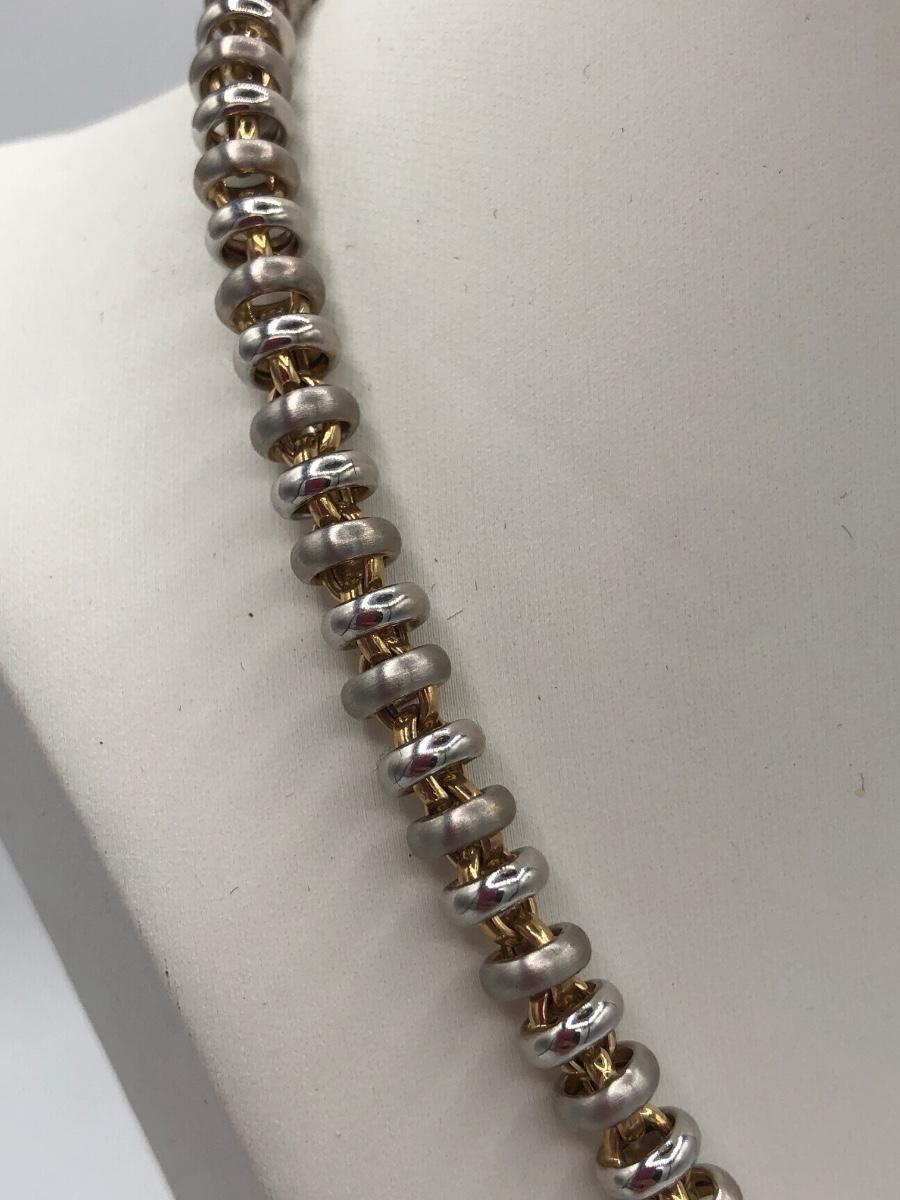 LOT 189J: 14k White & Yellow Gold 18" Necklace & 8" Bracelet Matching Set - marked as G S 14K (42.6gtw)