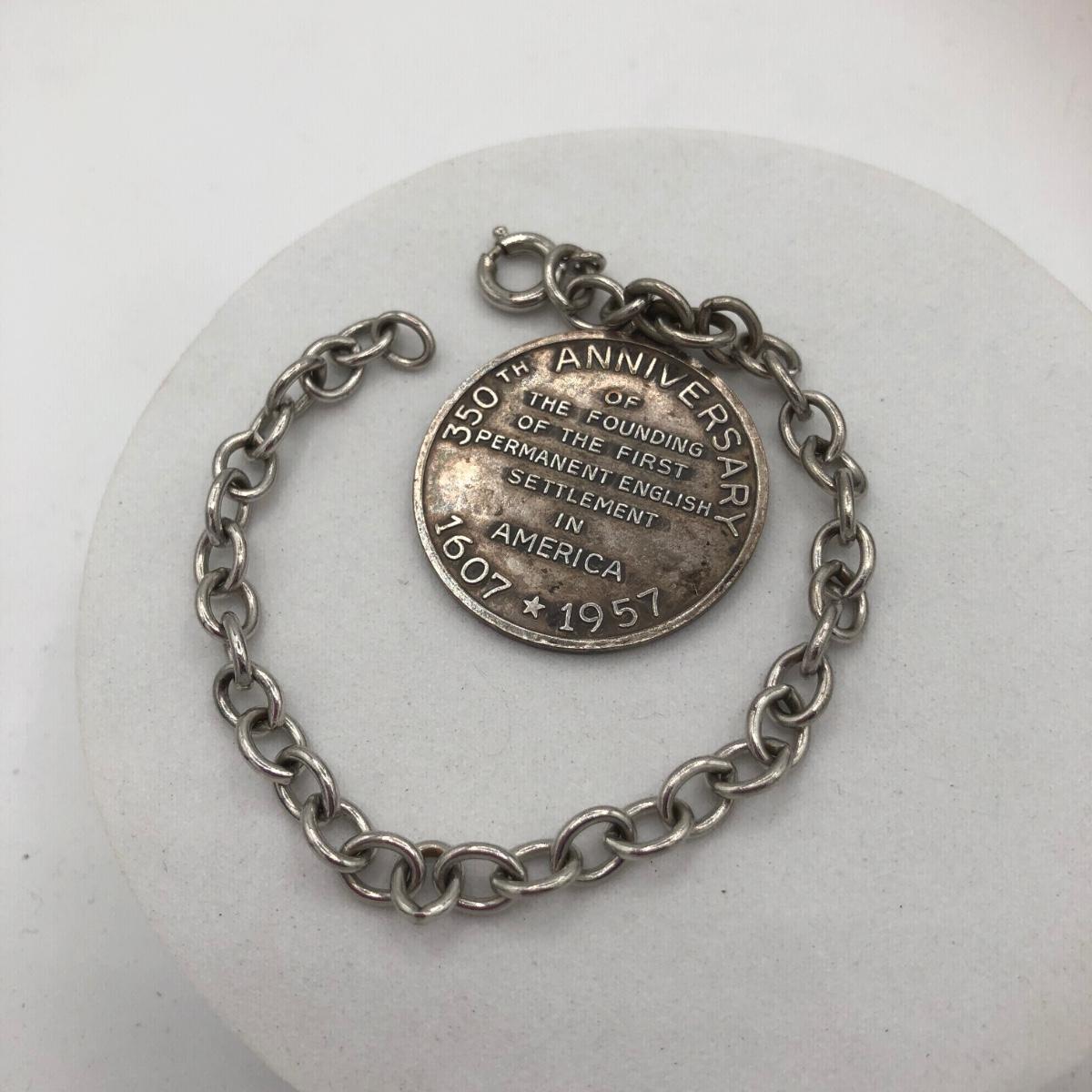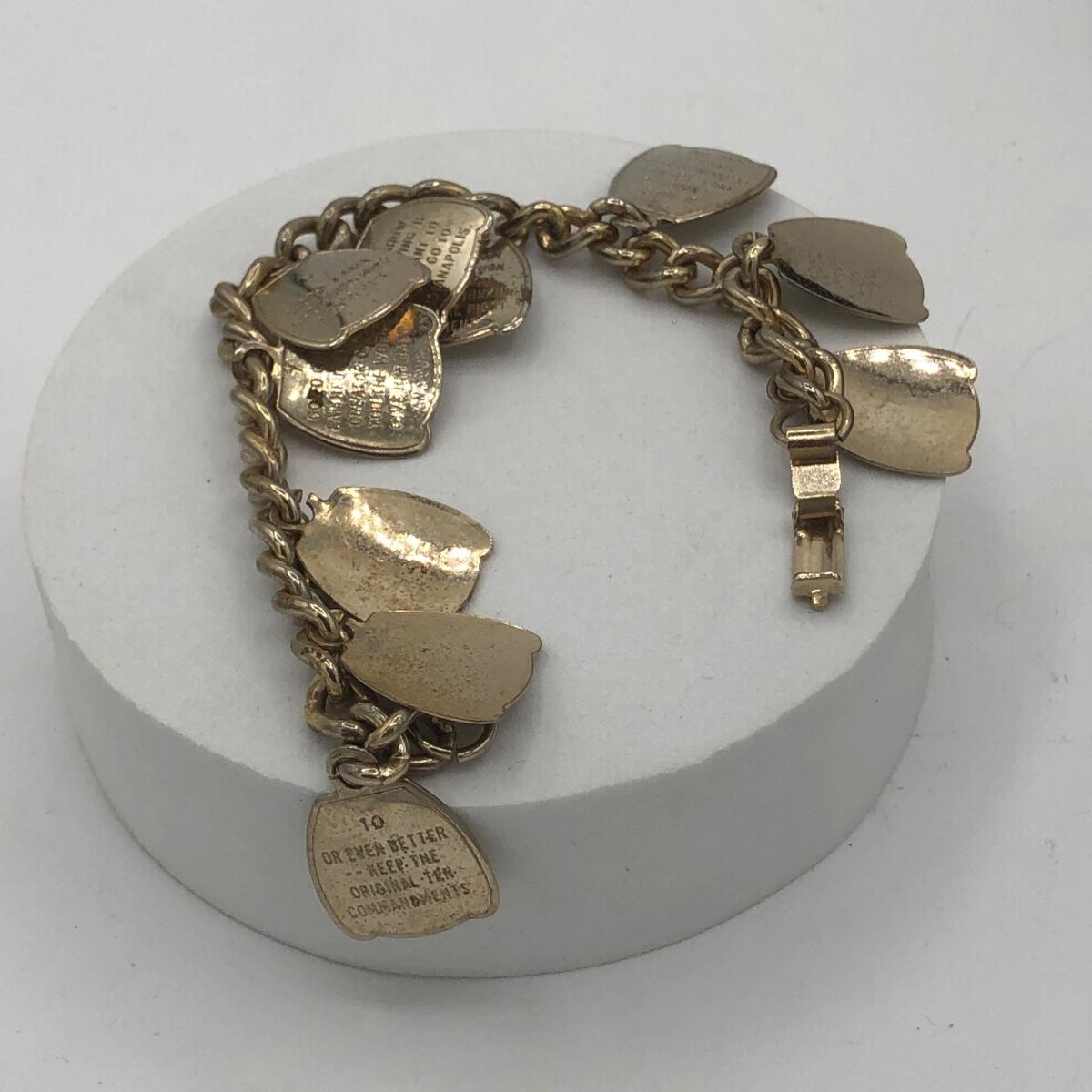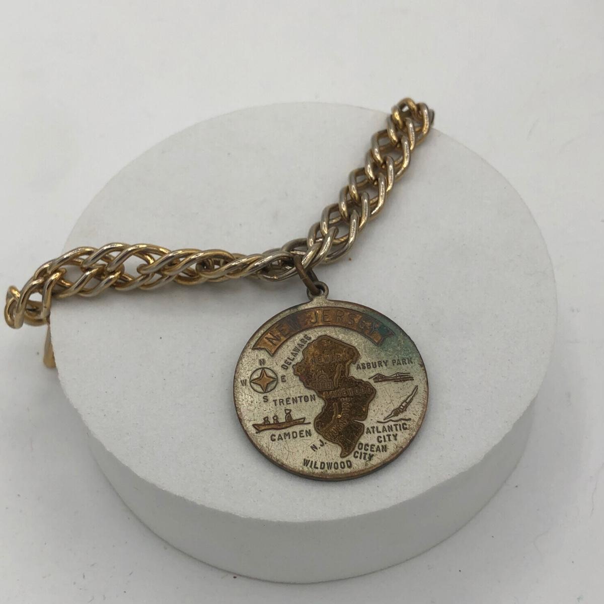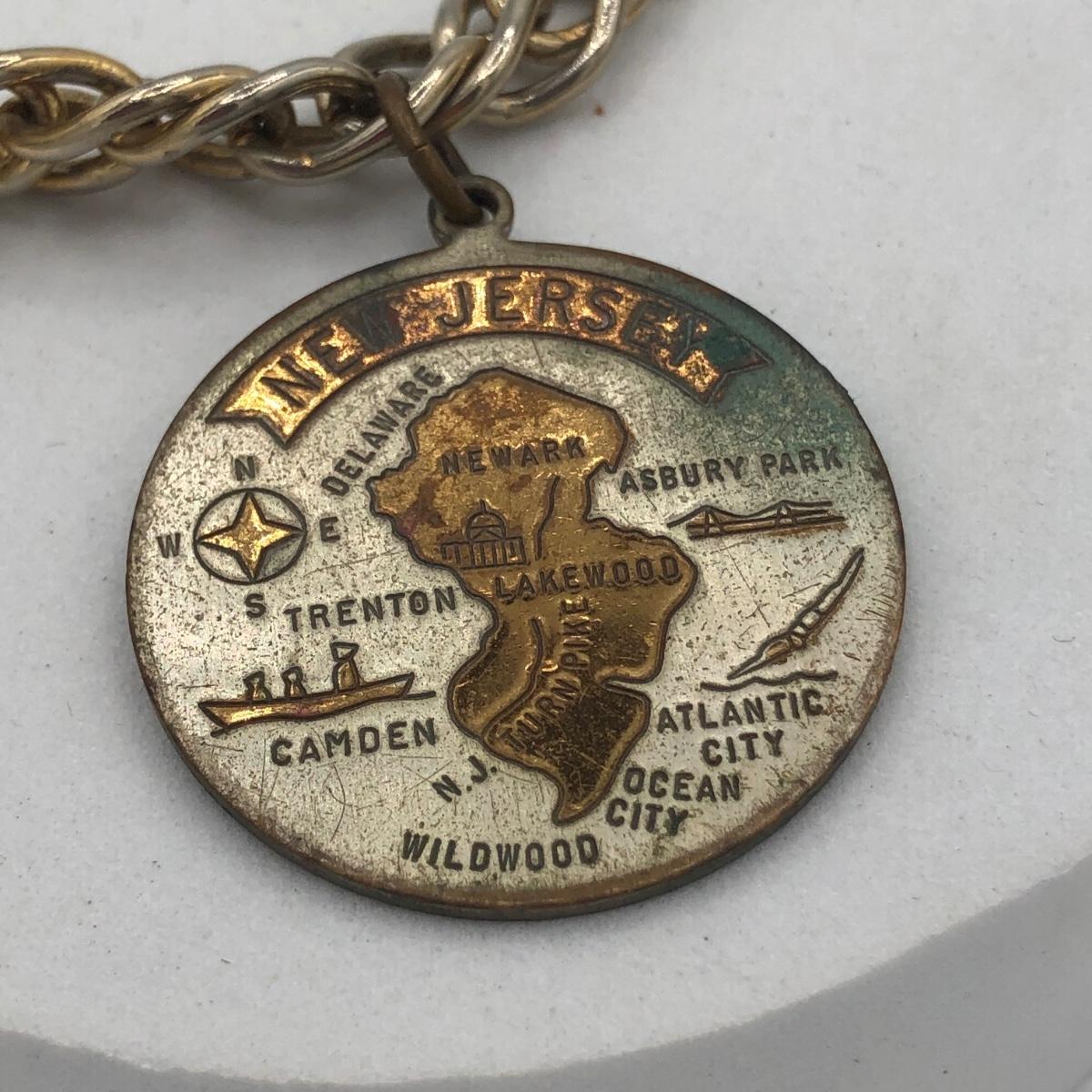 LOT 194J: Vintage Charm Bracelets & More - Goldette NY, 10 Commandments, NJ Coin Map, Jamestown 350 Year Anniversary Coin & More