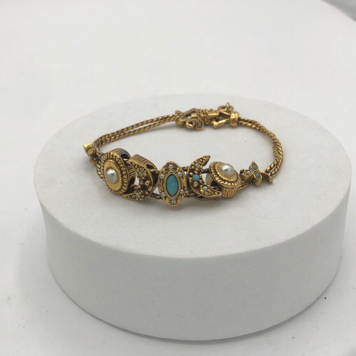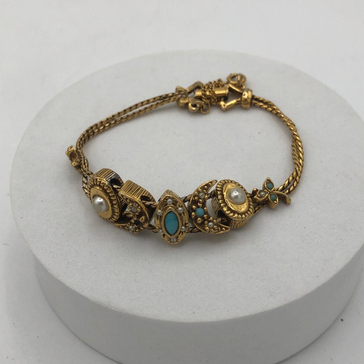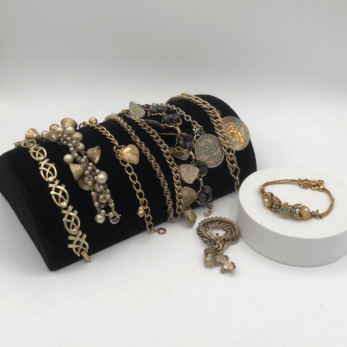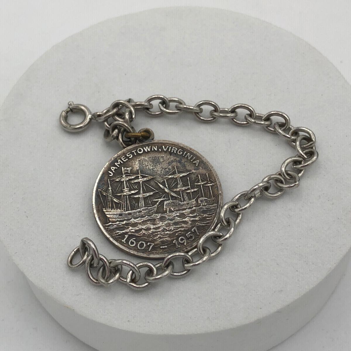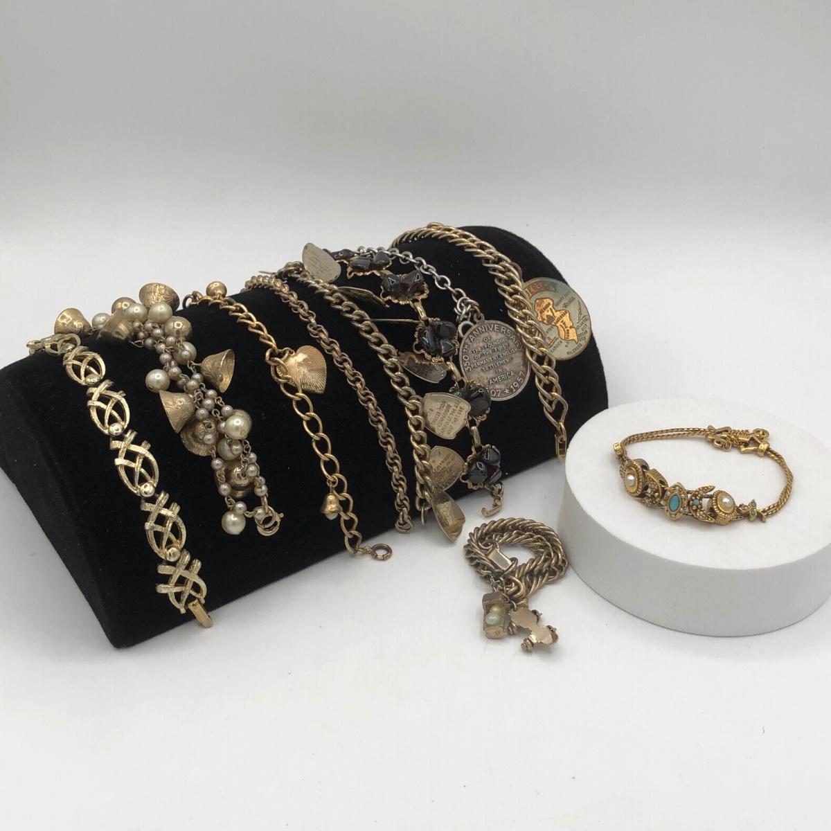 LOT 194J: Vintage Charm Bracelets & More - Goldette NY, 10 Commandments, NJ Coin Map, Jamestown 350 Year Anniversary Coin & More