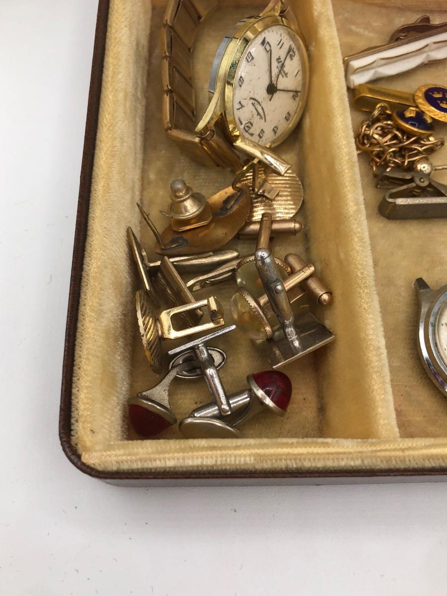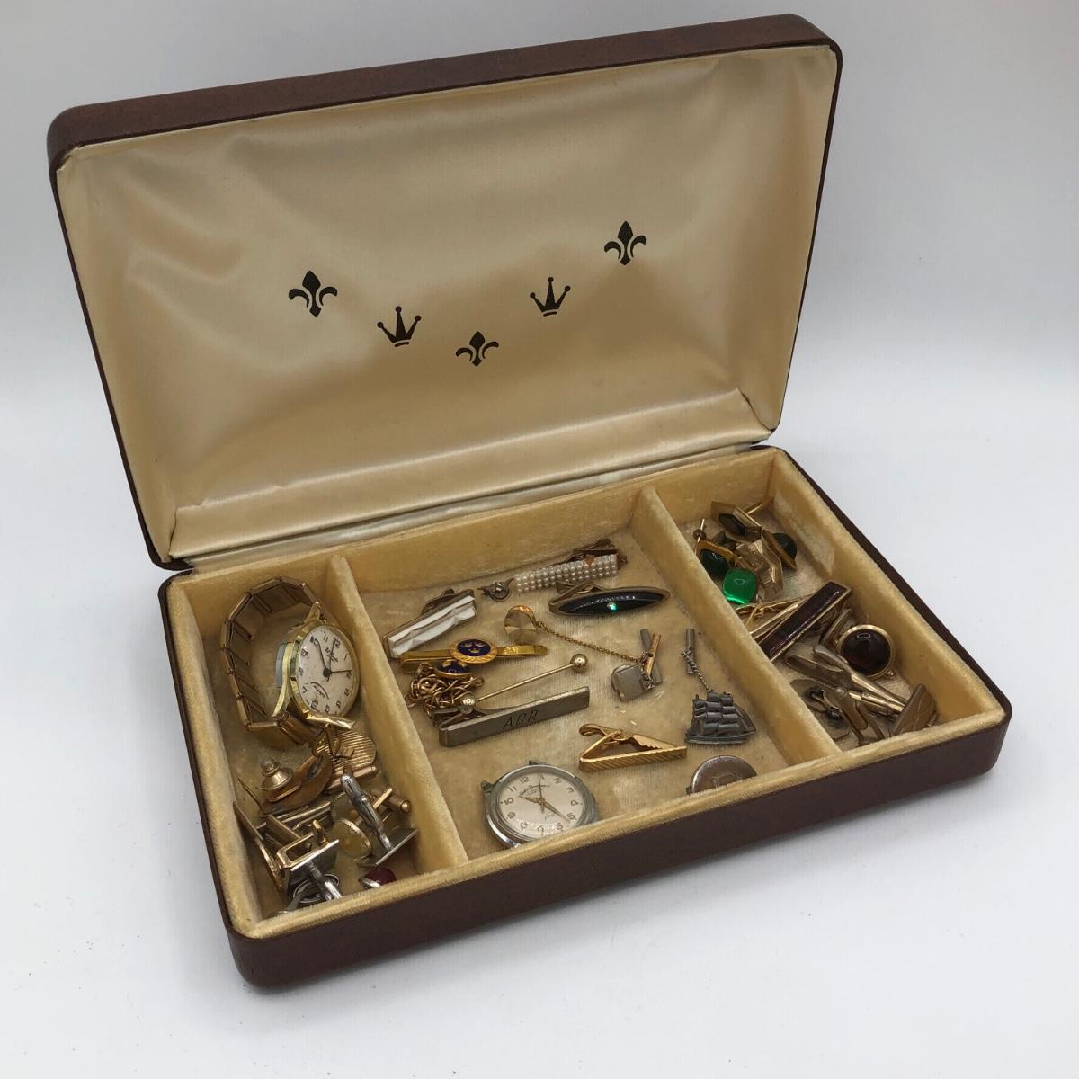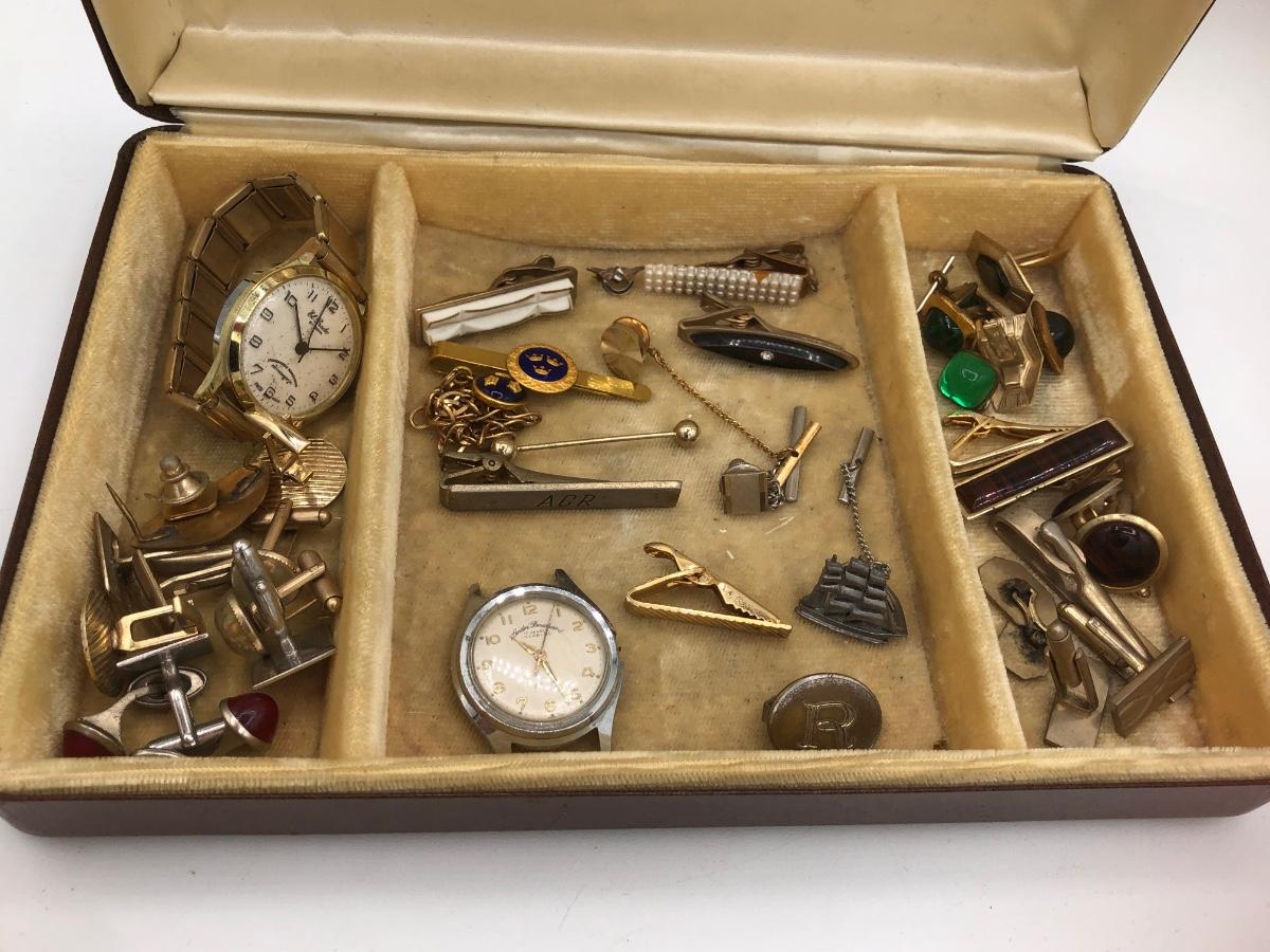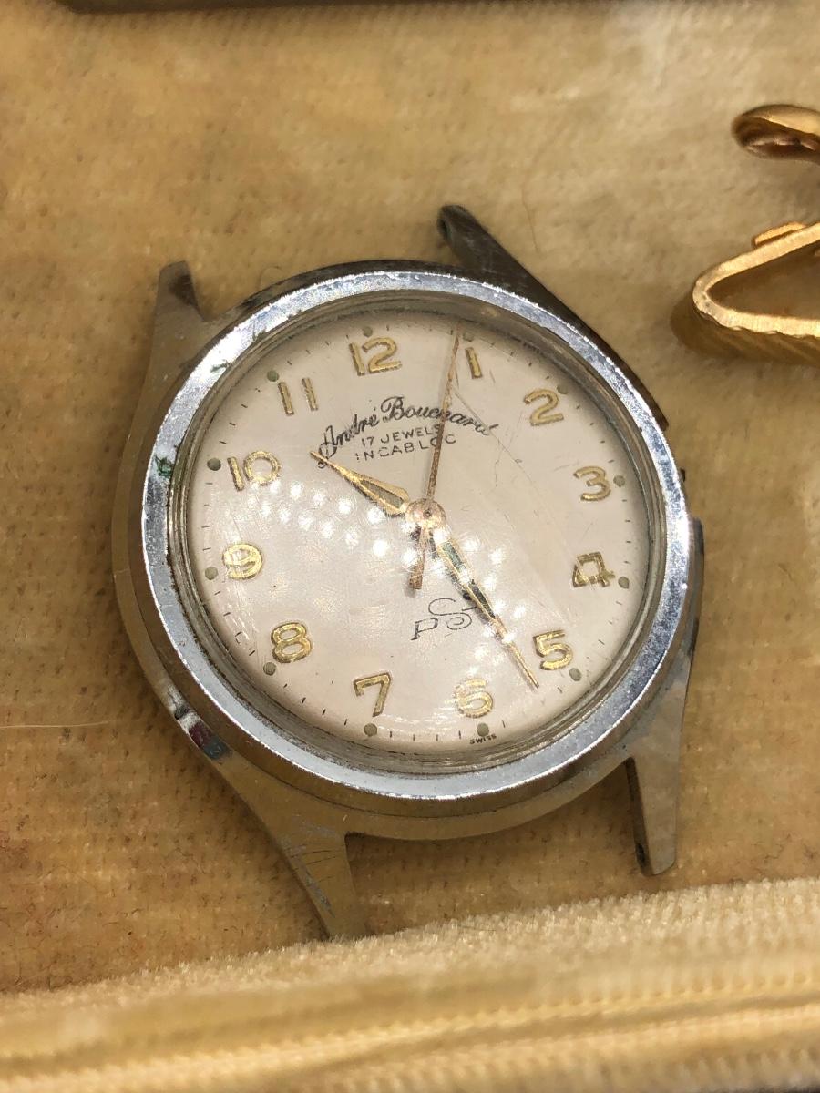 LOT 200J: Vintage Men's Tie Accessories, Cufflinks & El Trado by Mera Watch, André Bouchard 17 Jewels Swiss Watch Face
