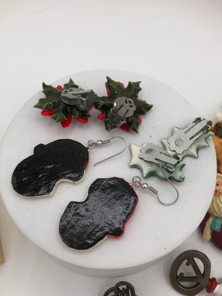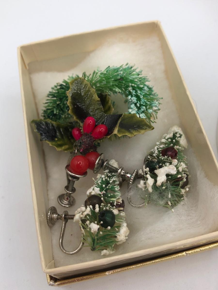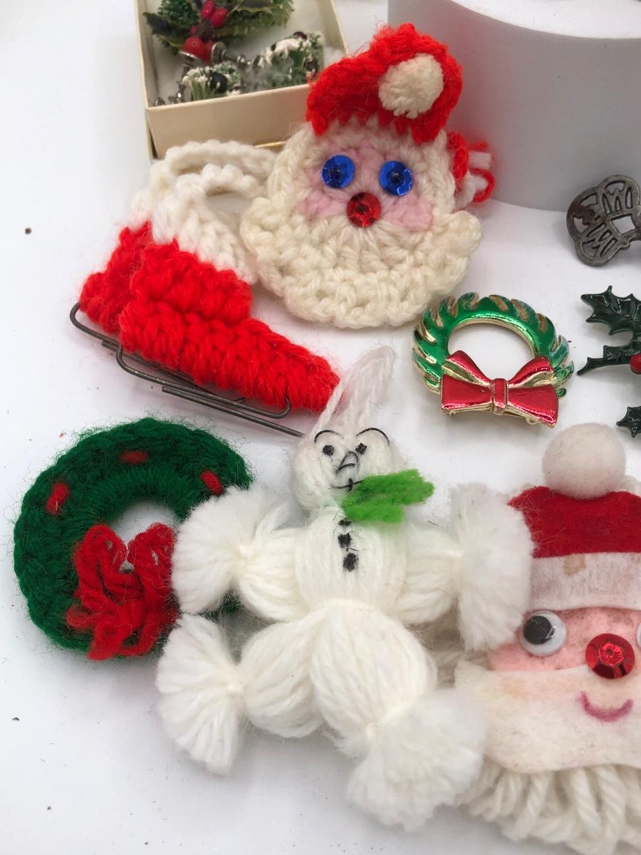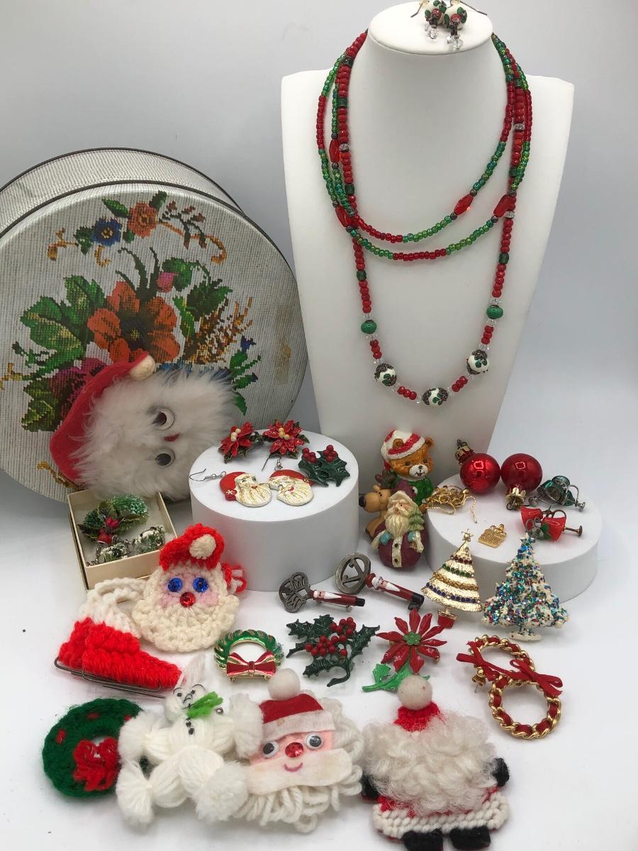 LOT 201J: Collection of Vintage Christmas Jewelry in Vintage Cross Stitch Tin