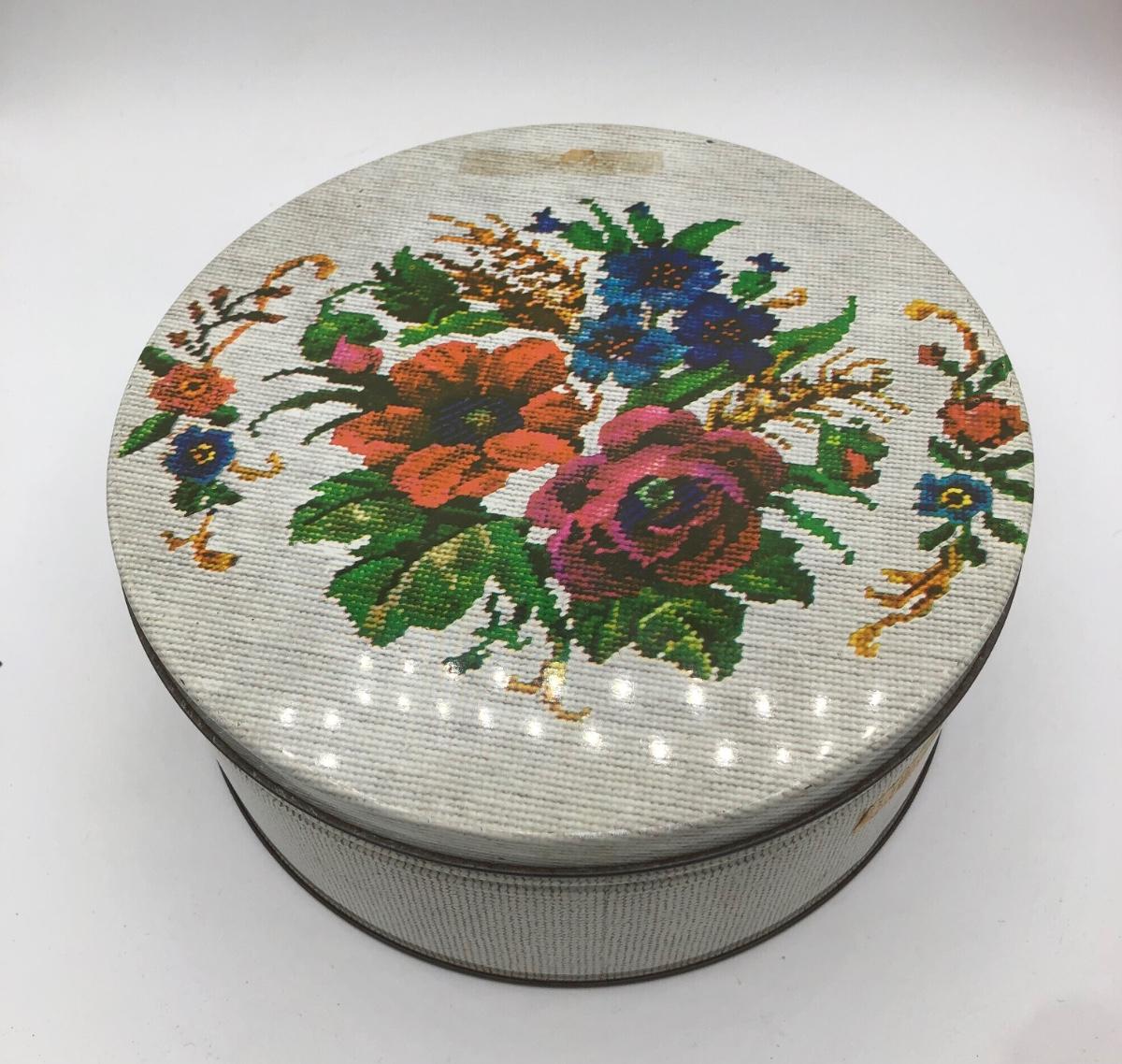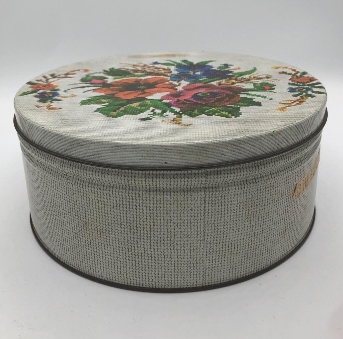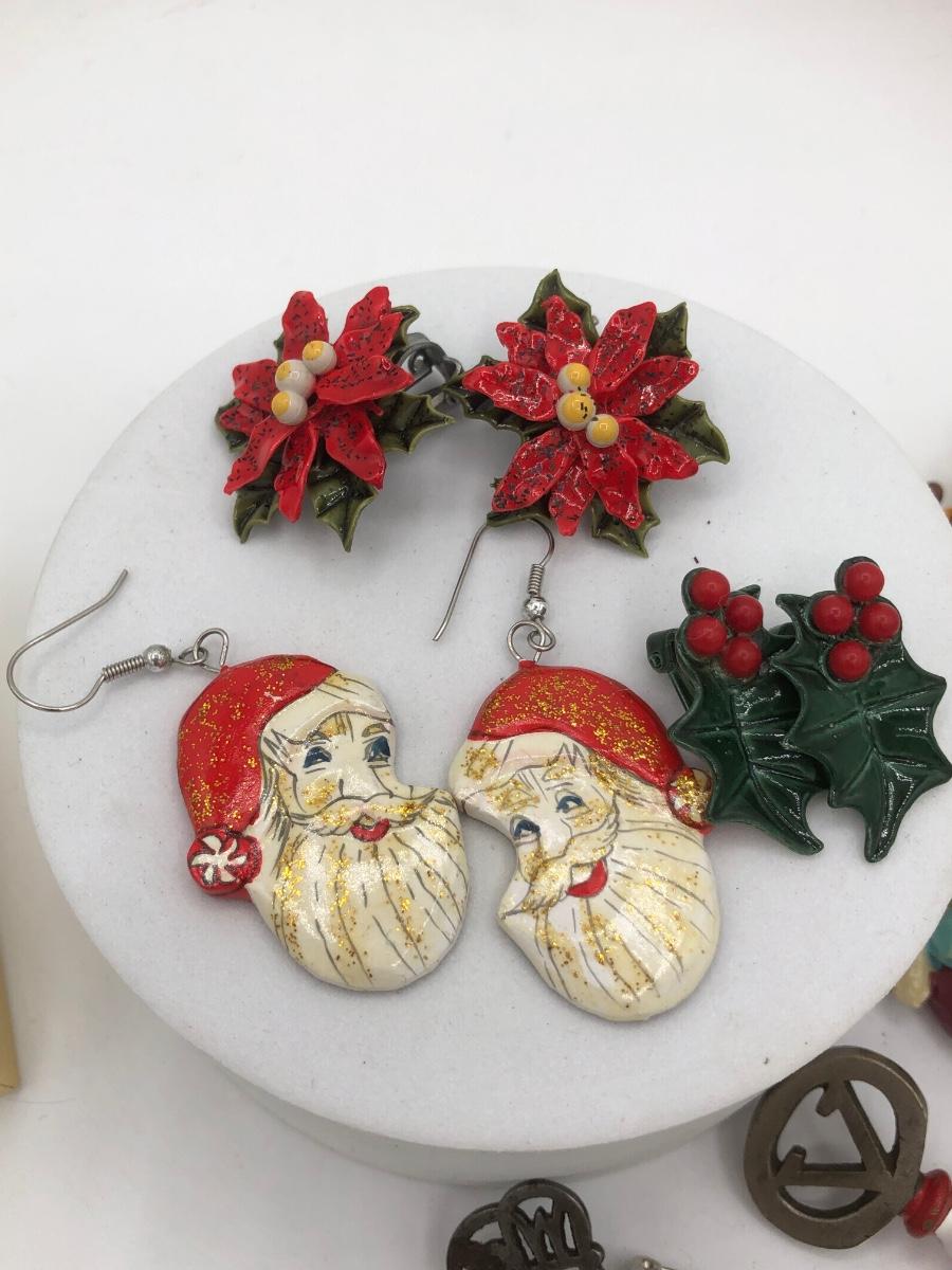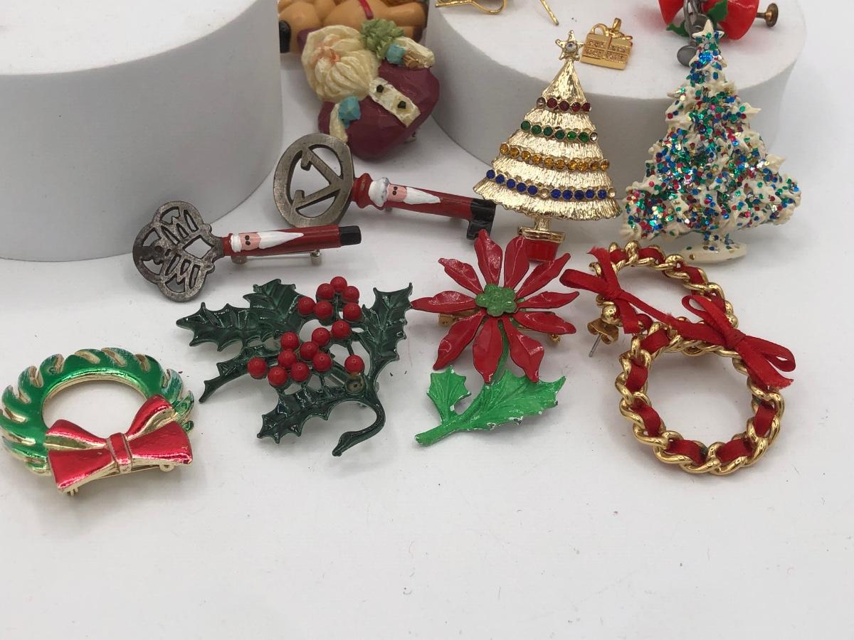 LOT 201J: Collection of Vintage Christmas Jewelry in Vintage Cross Stitch Tin
