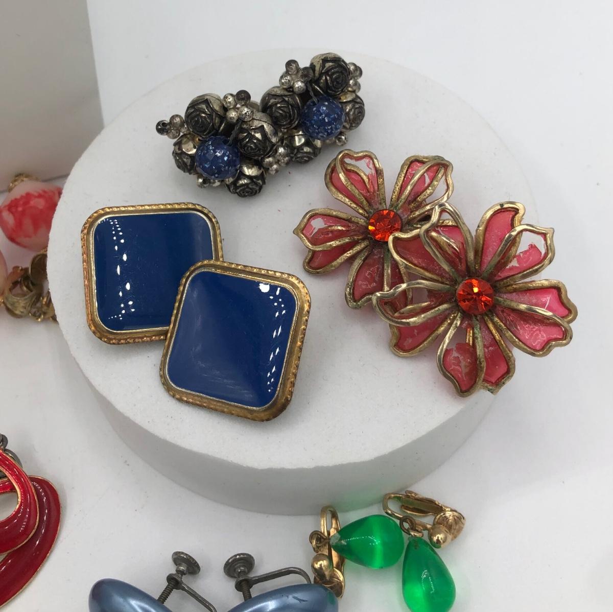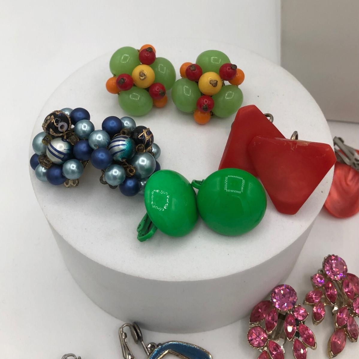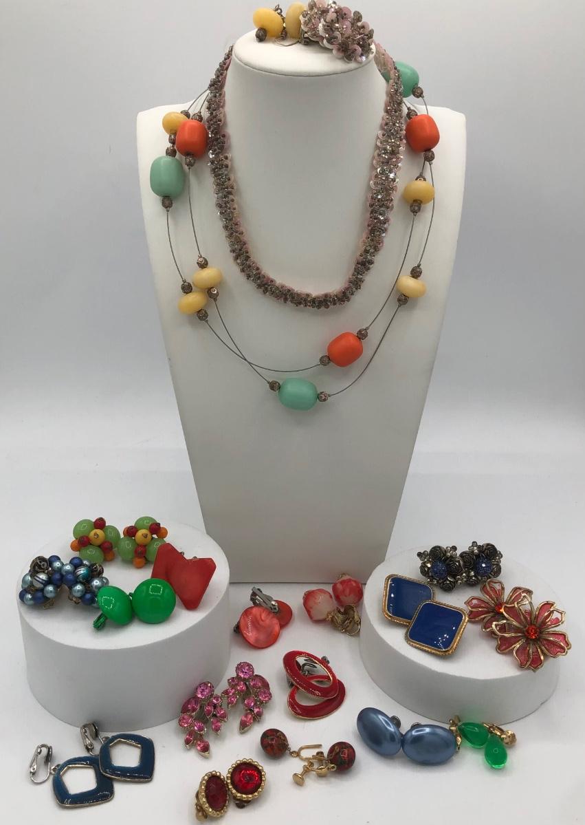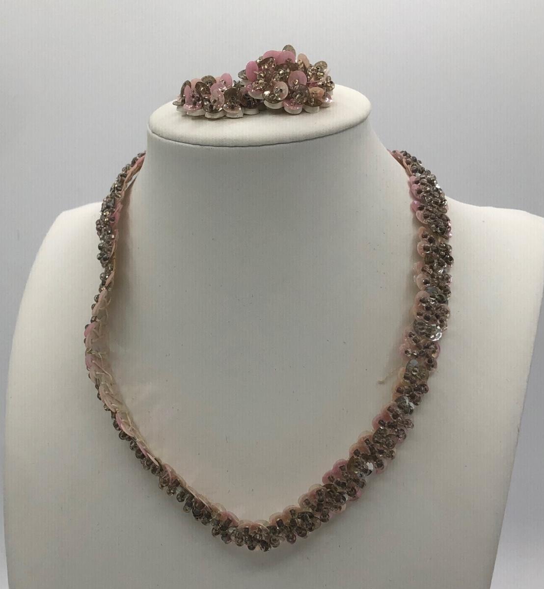 LOT 204J: Vintage Fabric Sequin Choker, Beaded Necklace & Pierced Earring Set & Collection of Vintage Screwback & Clipon Earrings