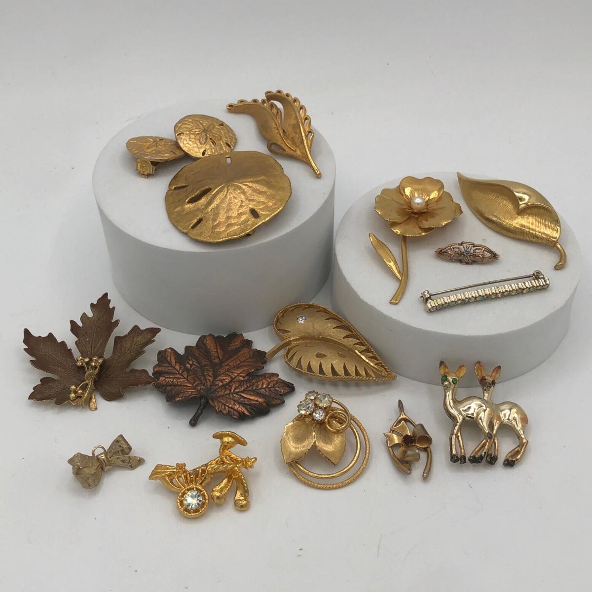 LOT 209J: Vintage Goldtone Pins, Brooches & Earrings