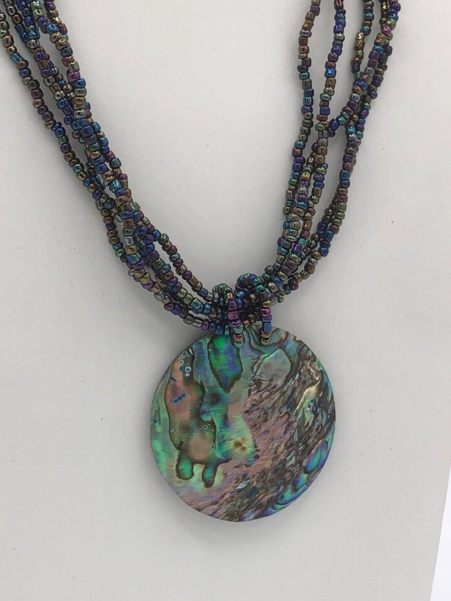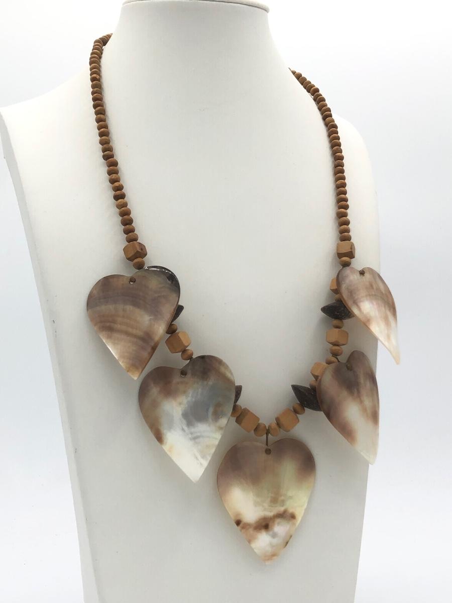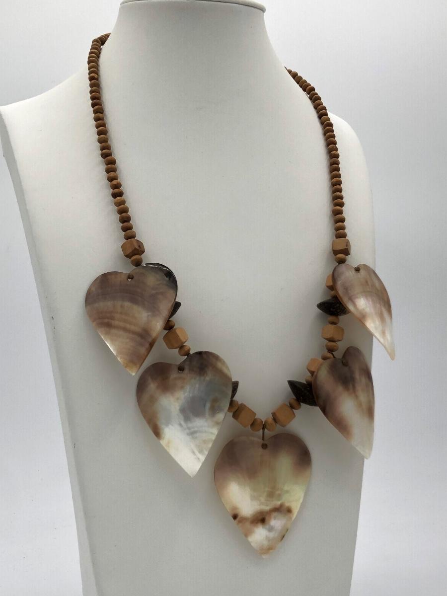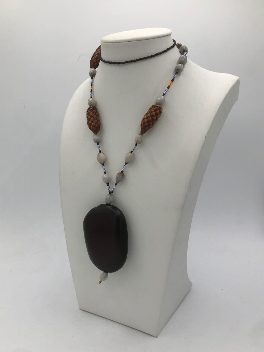 LOT 214J: Collection of Beaded Necklaces w/ Wood Hibiscus Necklace & Glass Pendants