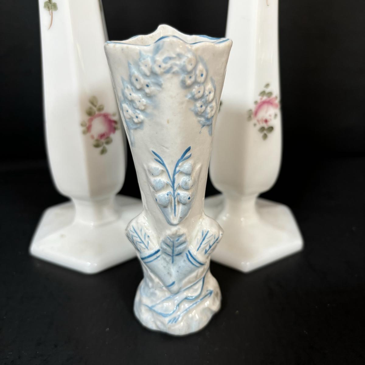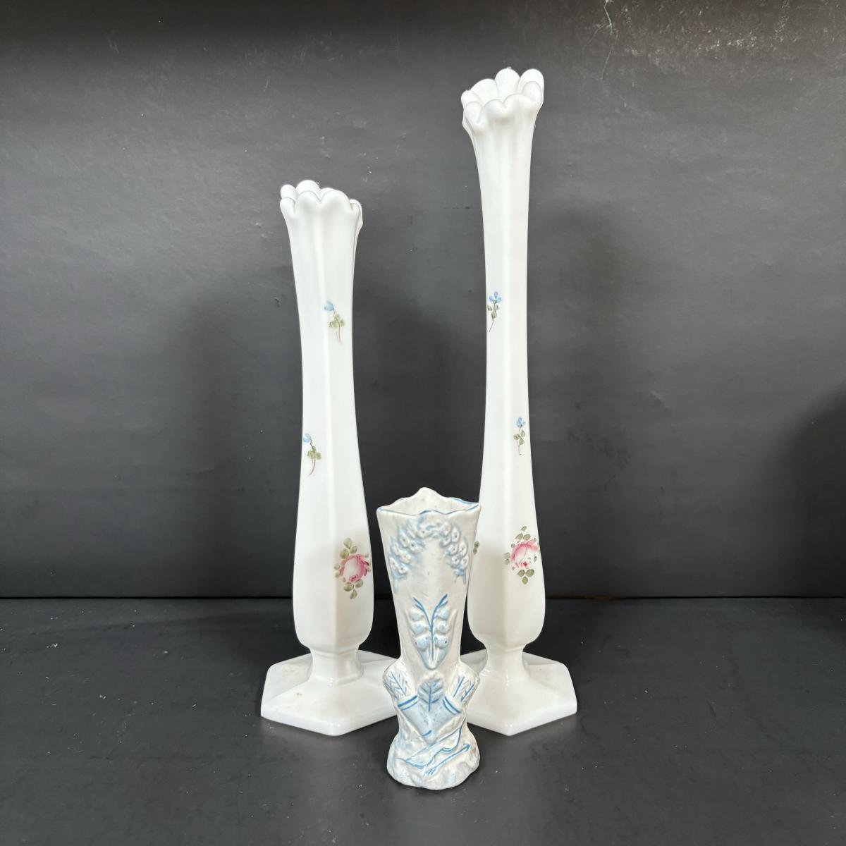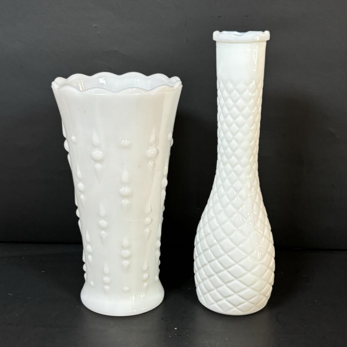 LOT 3: Stained Glass Floral Sun Catcher, Art Glass Bubble Paperweight Bird, Milk Glass Vases & More