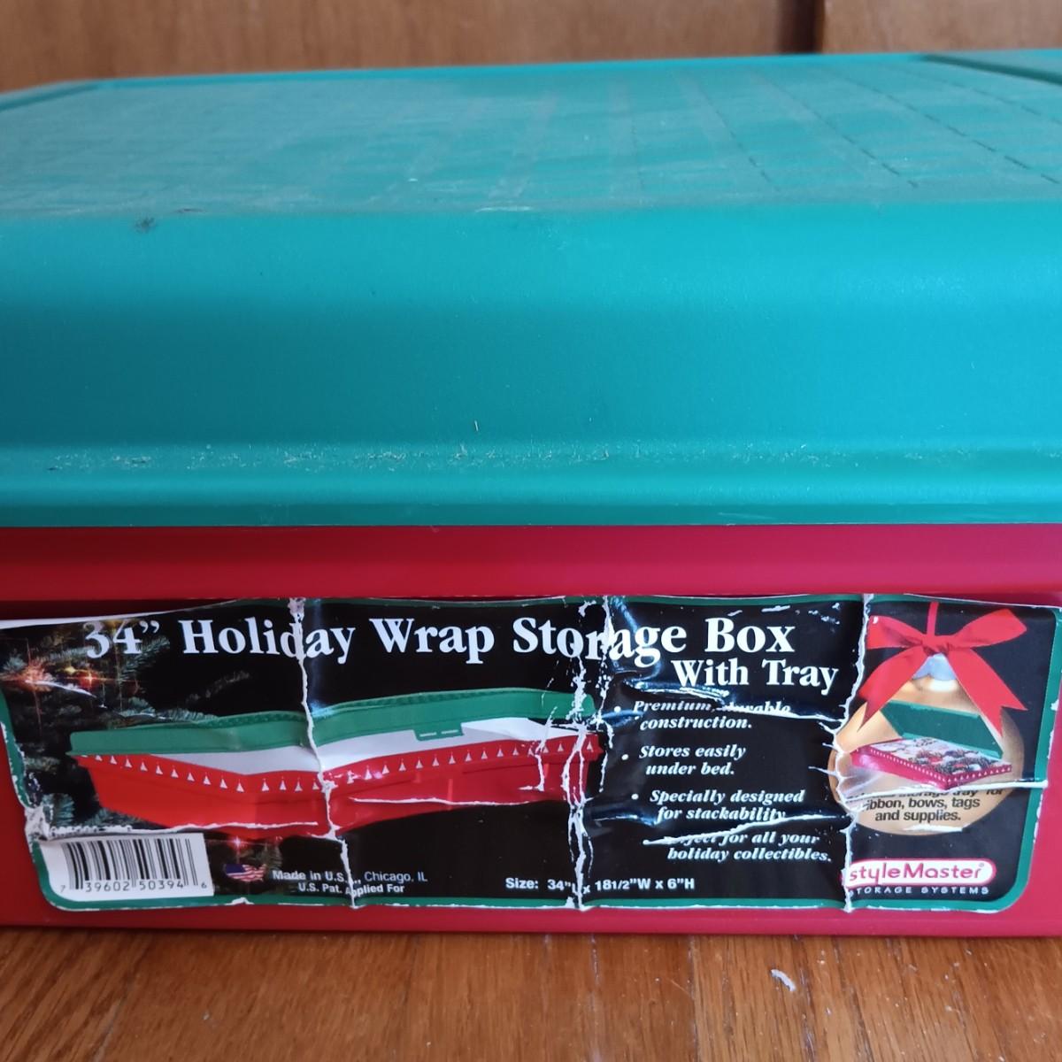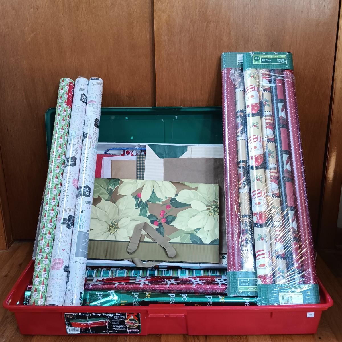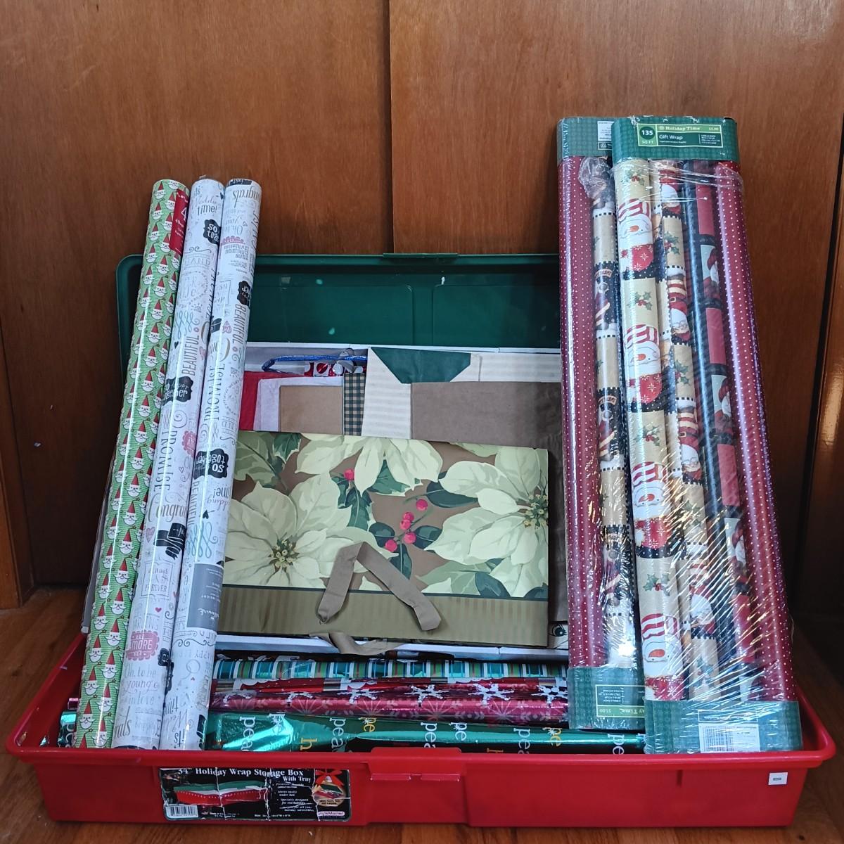 LOT 33: 34" Holiday Wrap Storage Box with Preowned and New Gift Wrap