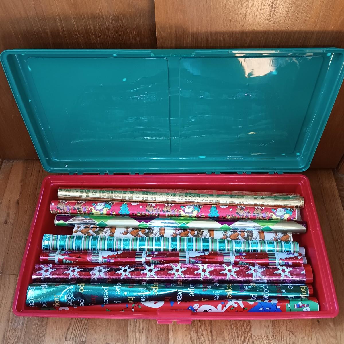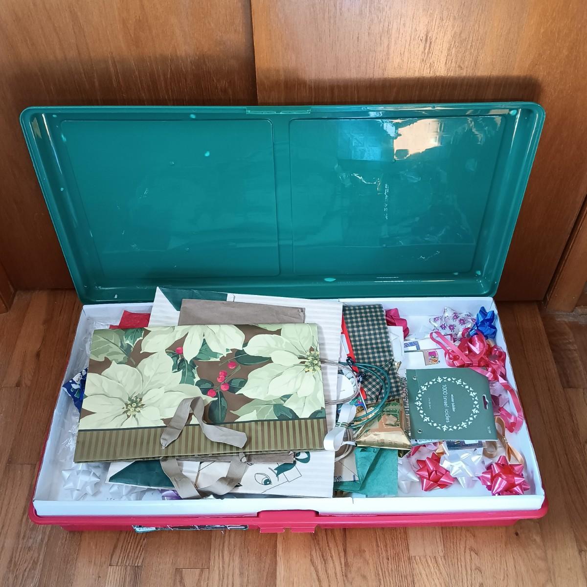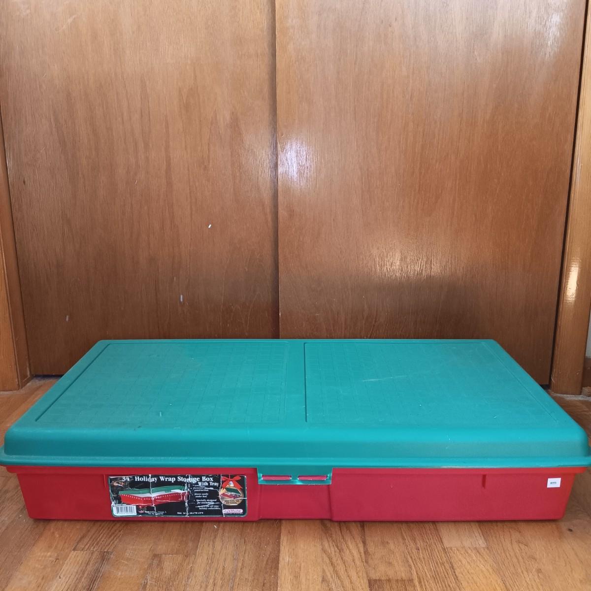 LOT 33: 34" Holiday Wrap Storage Box with Preowned and New Gift Wrap