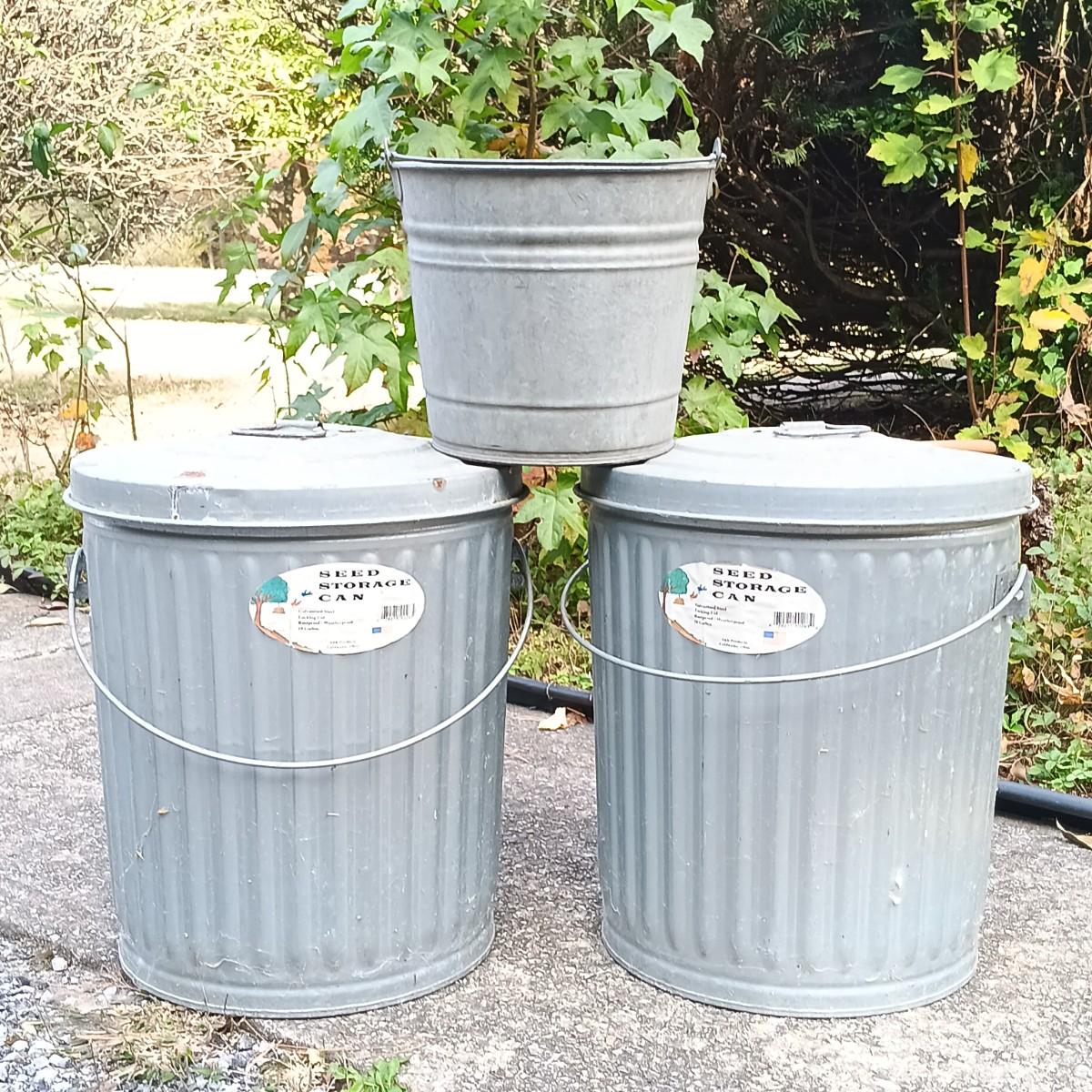 LOT 38: Galvanized Metal Seed Storage Cans with Bucket