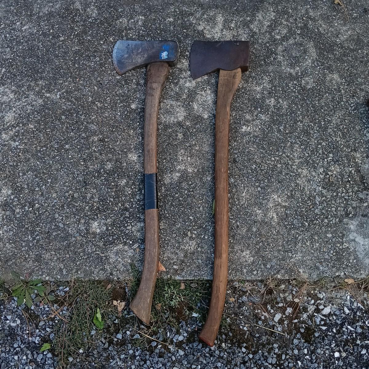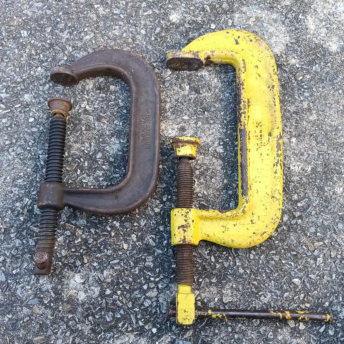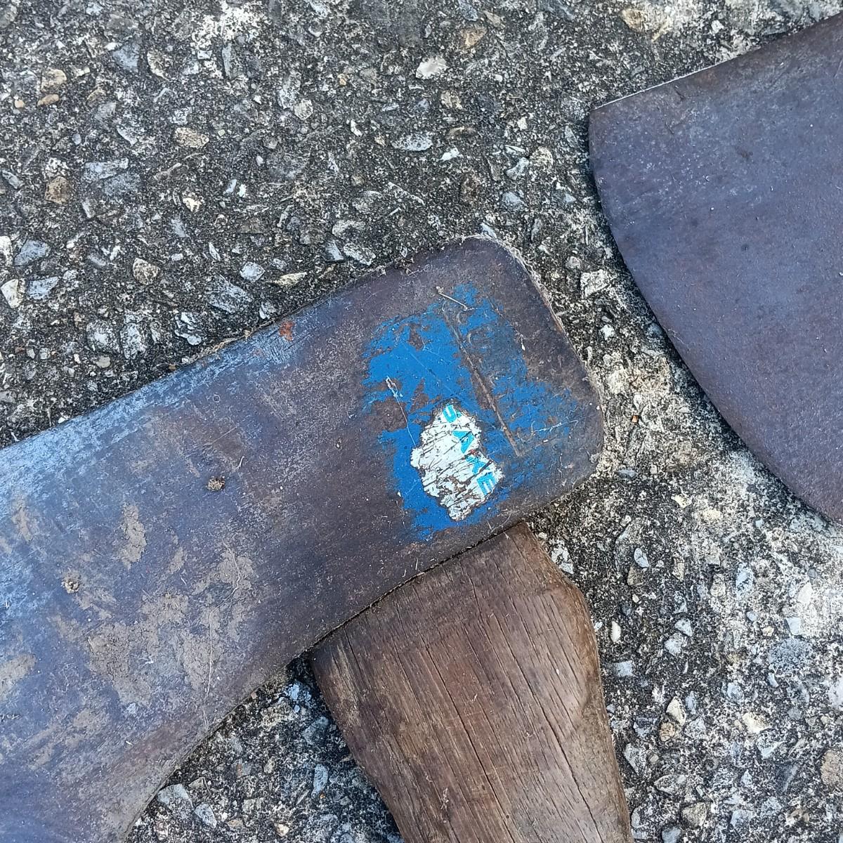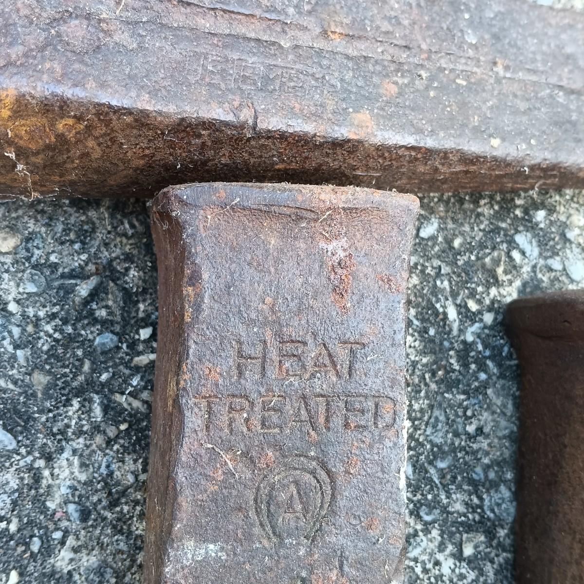LOT 47: Axes, Axe Head, Hammer and Hammer Heads, Crow Bar & C-Clamps