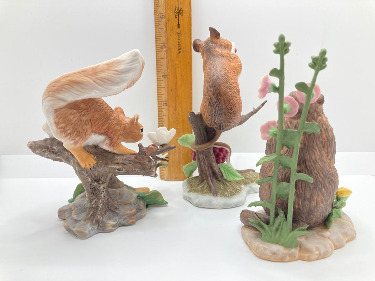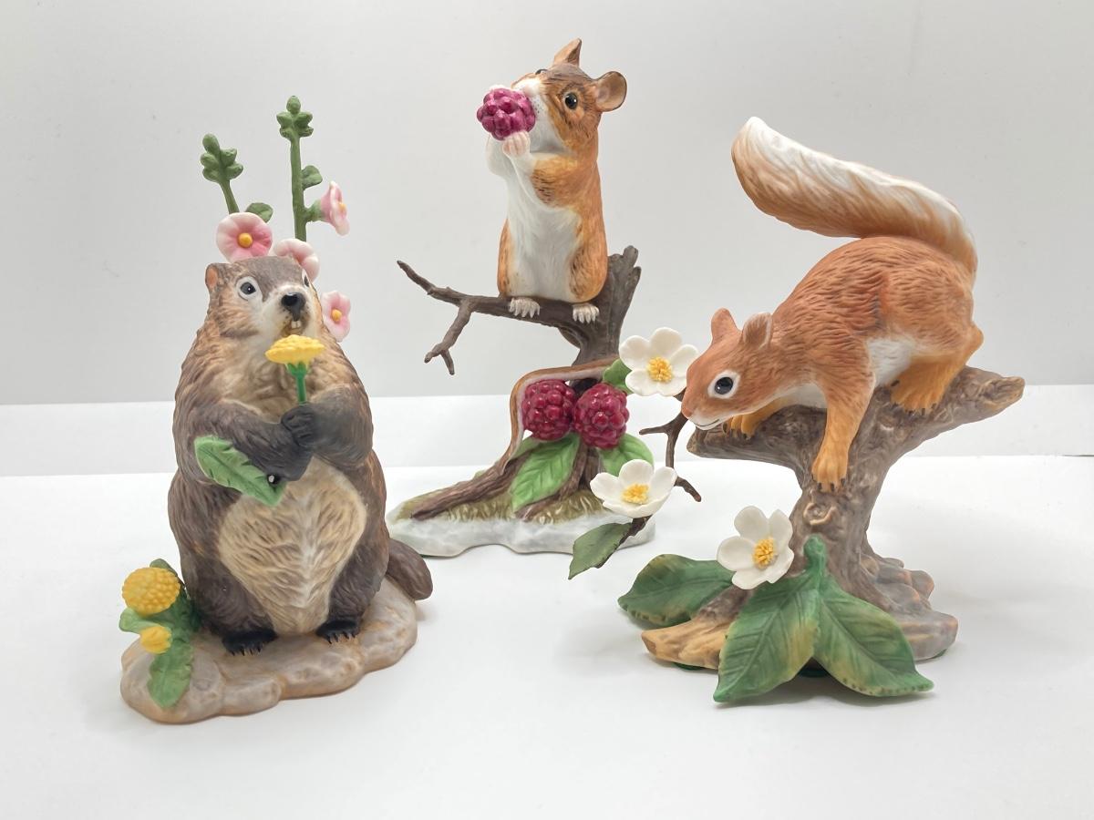 LOT 55: Collection of Lenox - Spring Shadow "Groundhog", Springtime Scamper "Red Squirrel" and Nature's Reward "White-Footed Mouse"