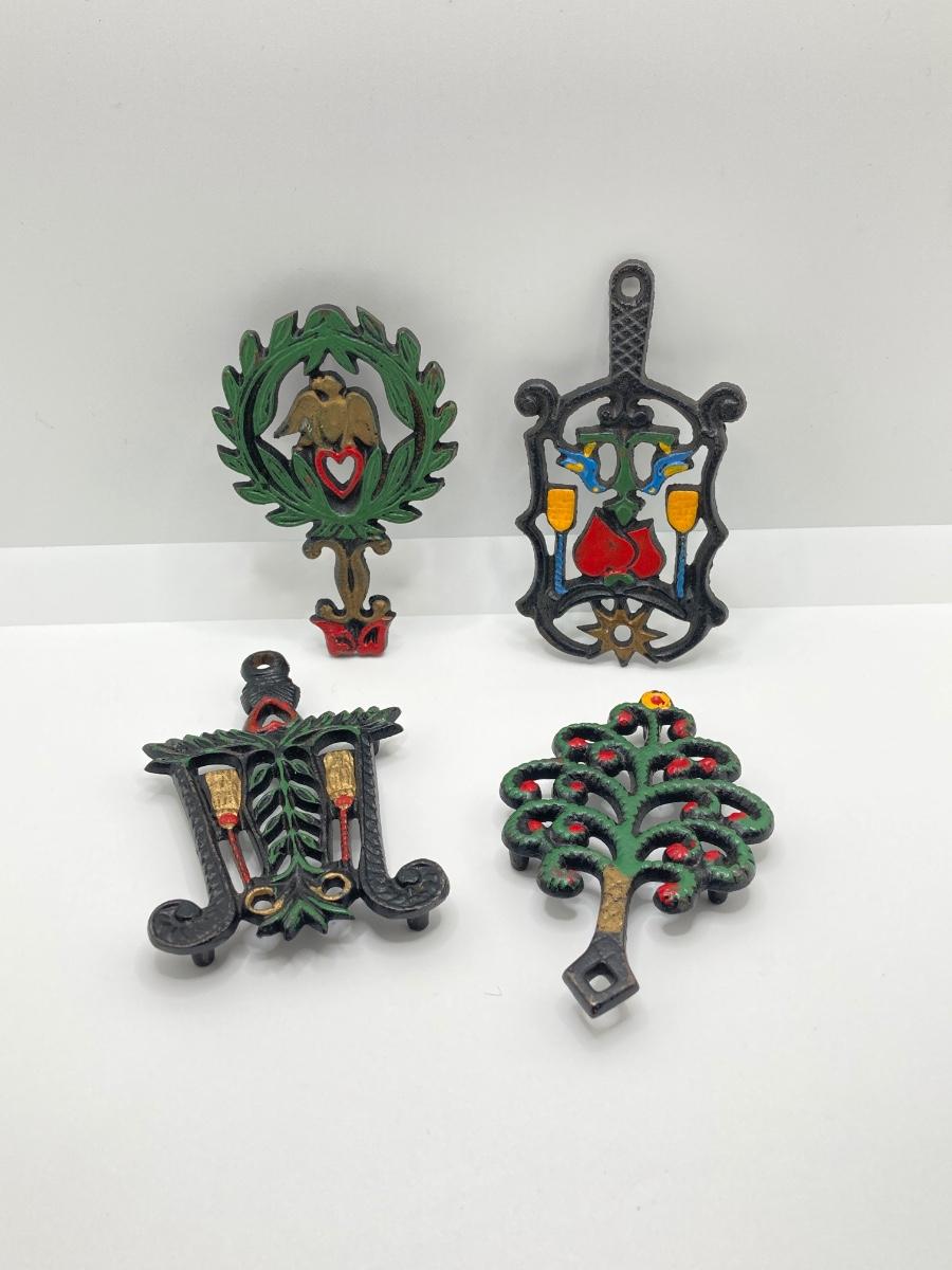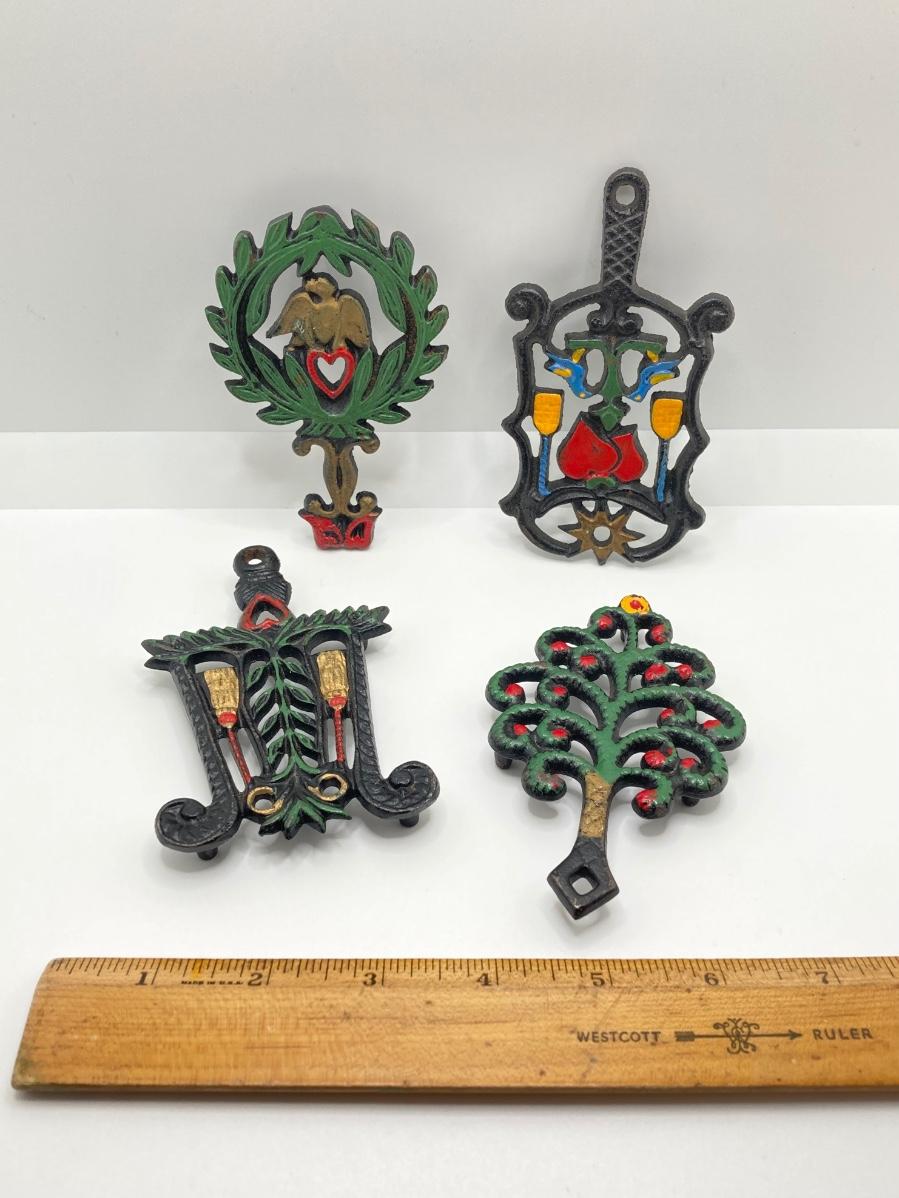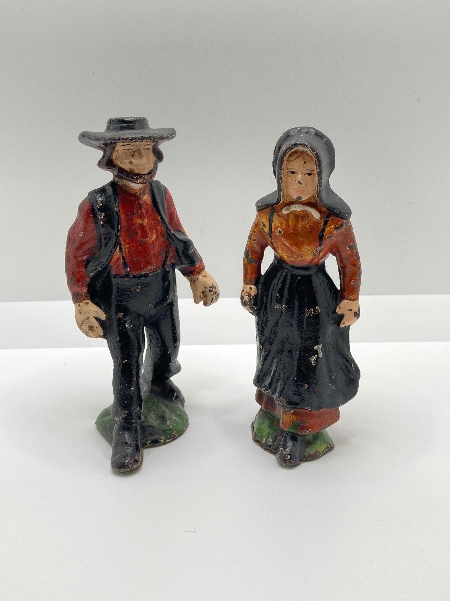 LOT 58: Cast Iron Collection - Amish Couple and Four Miniature Trivets