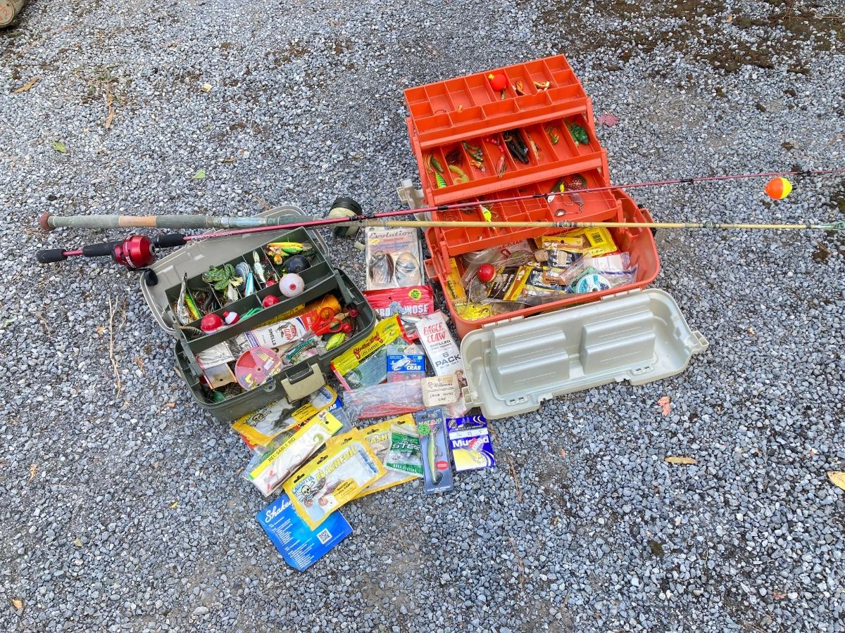 LOT 66: Large Collection of Fishing Tackle with Two Tackle Boxes and Rods / Reels
