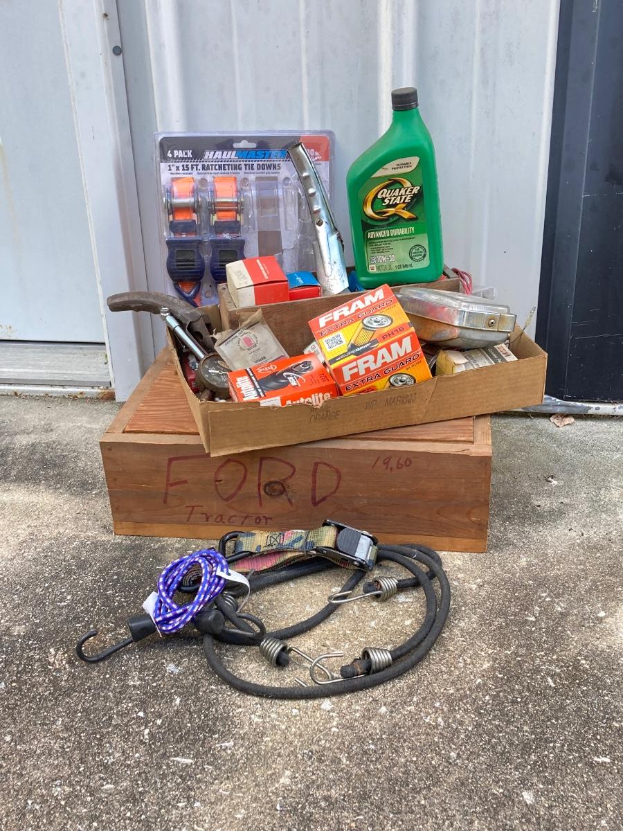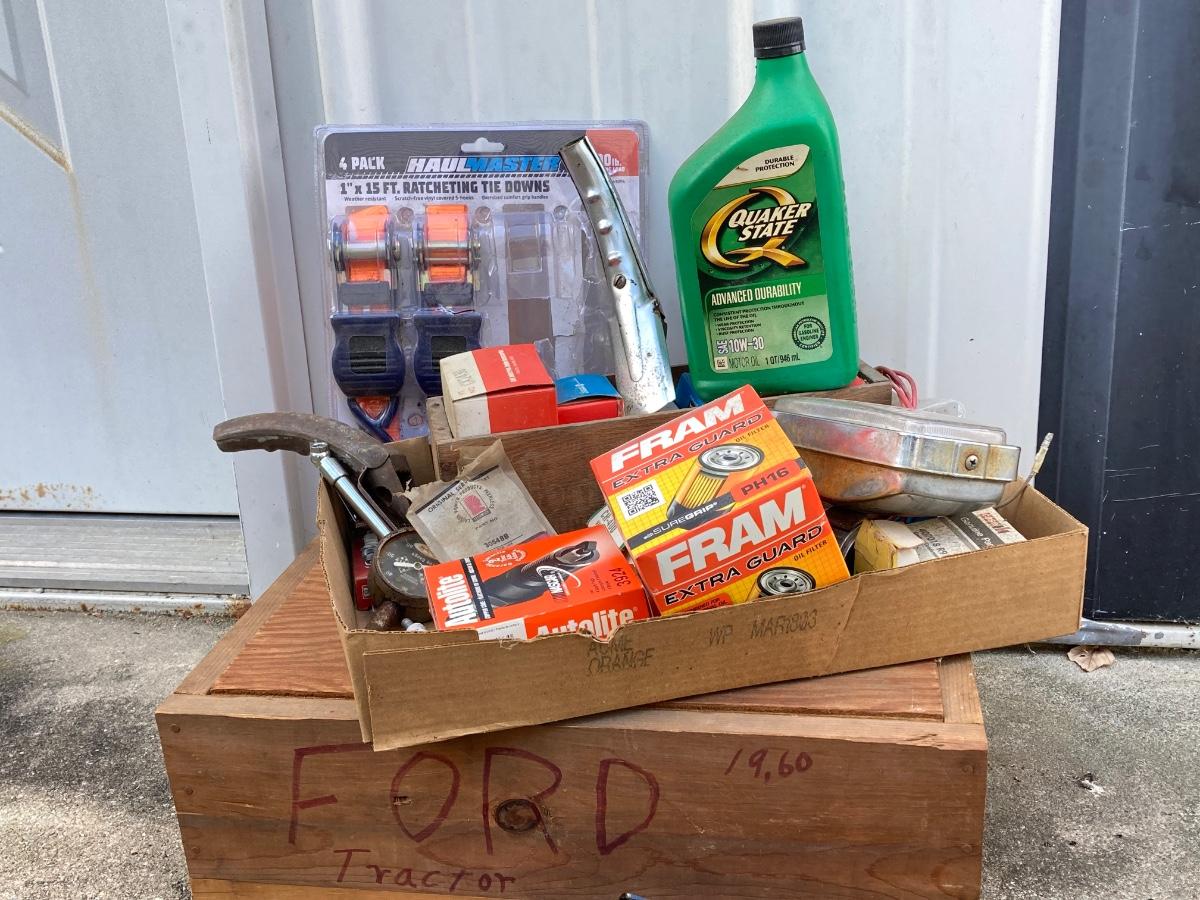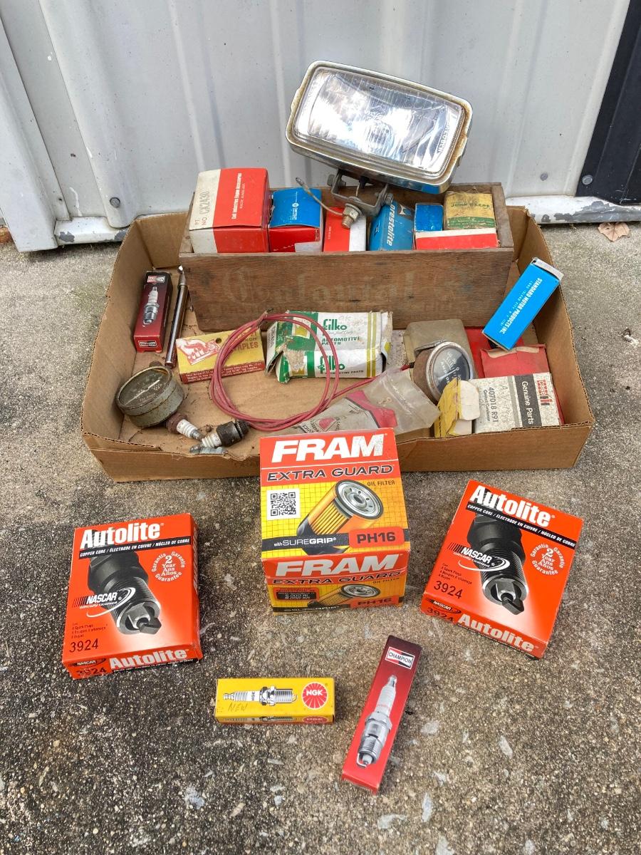 LOT 67: Automotive Collection - Spark Plugs, Miscellaneous Parts, Tie Downs and More