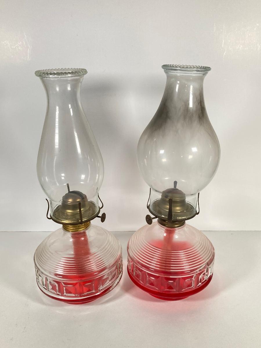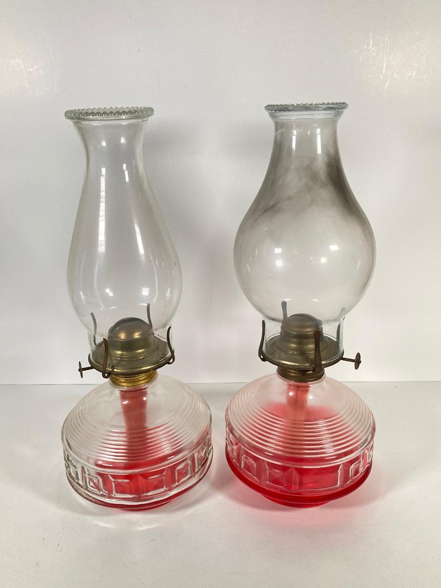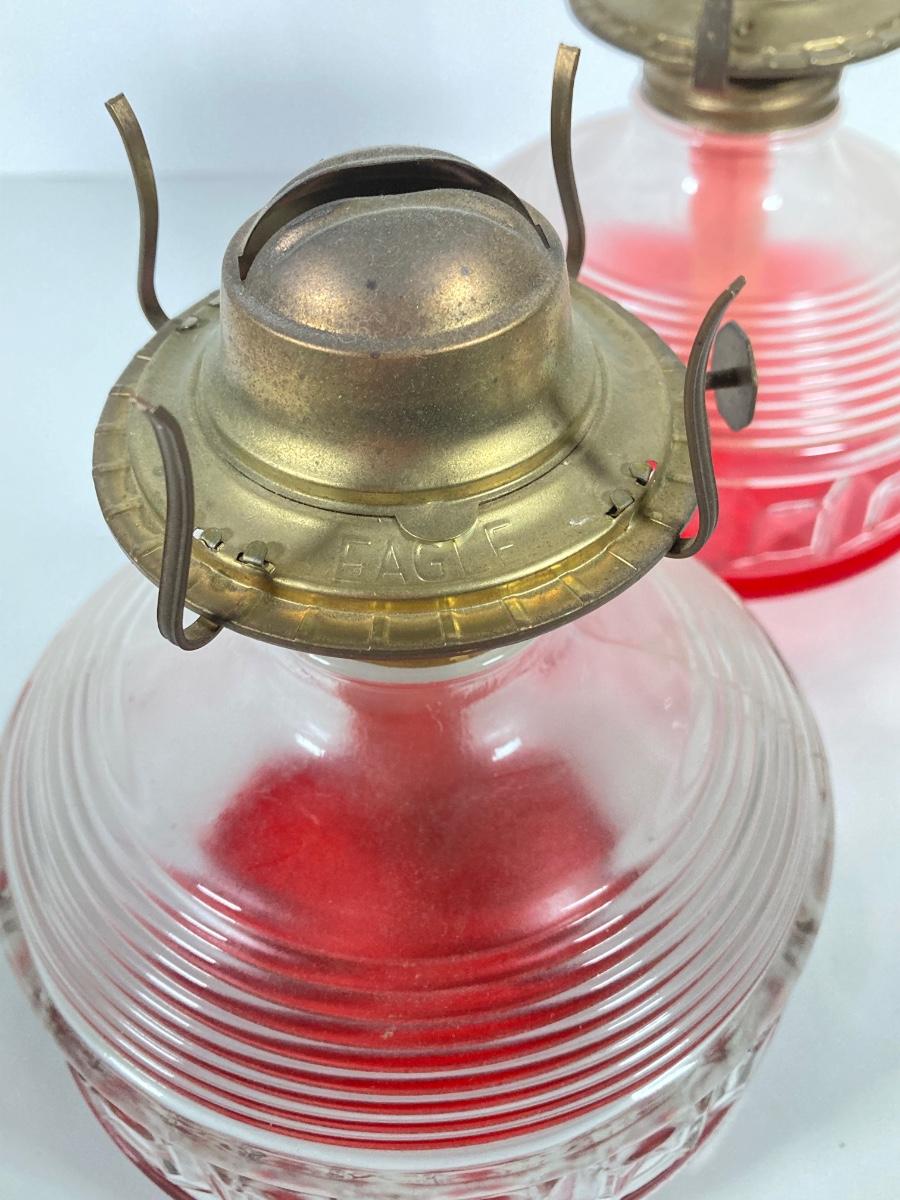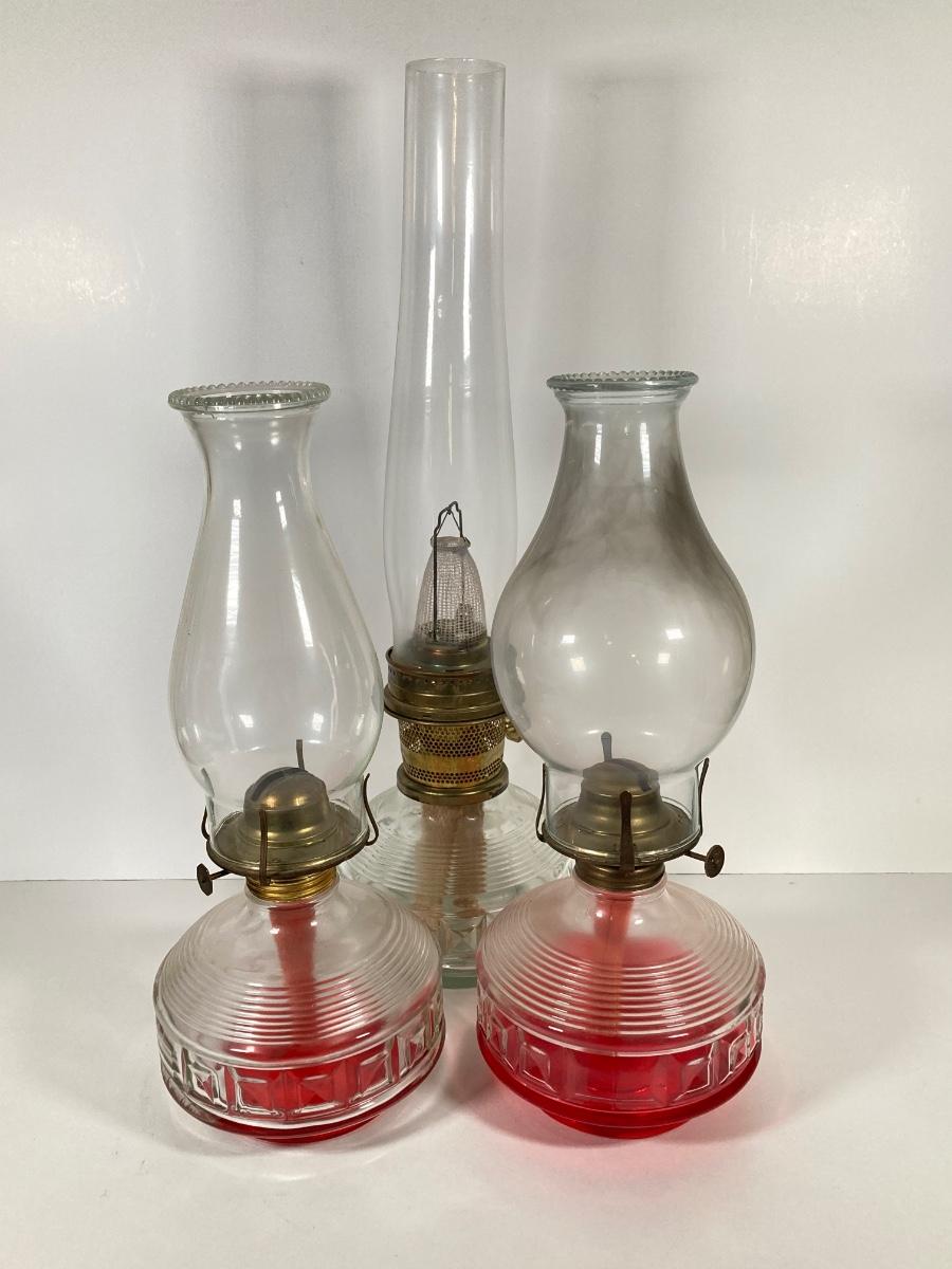 LOT 74: Set of Three Vintage Glass Oil Lanterns - Eagle and Aladdin Included