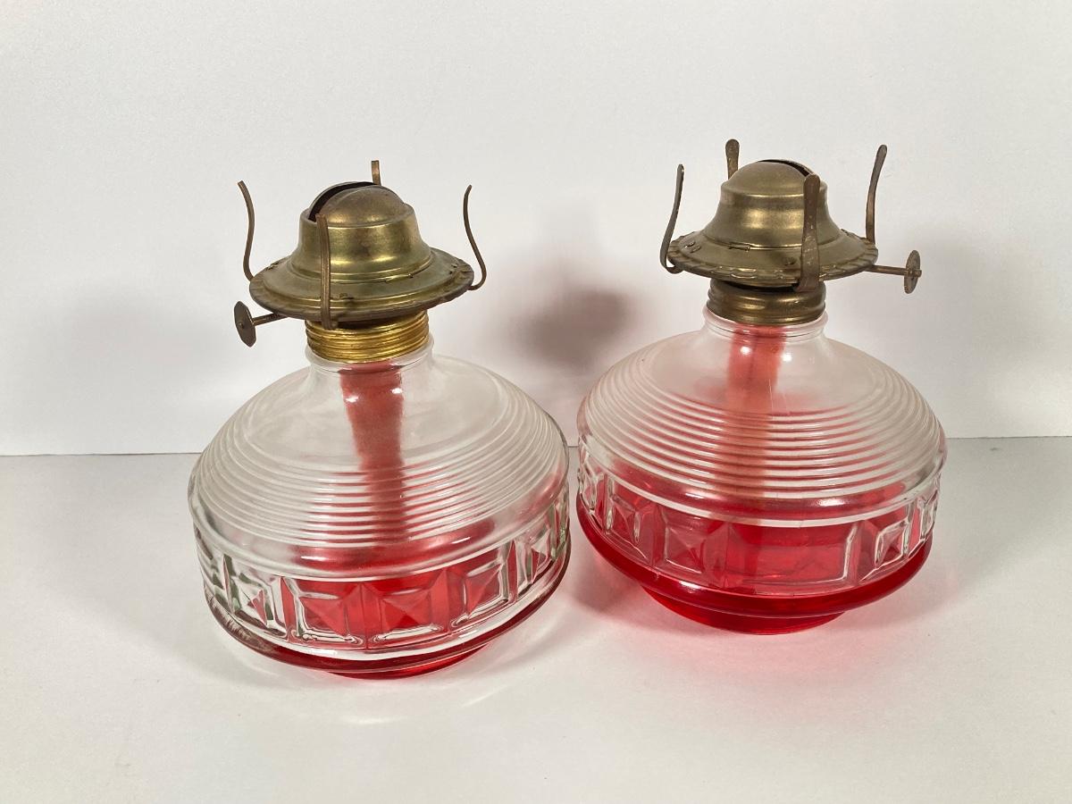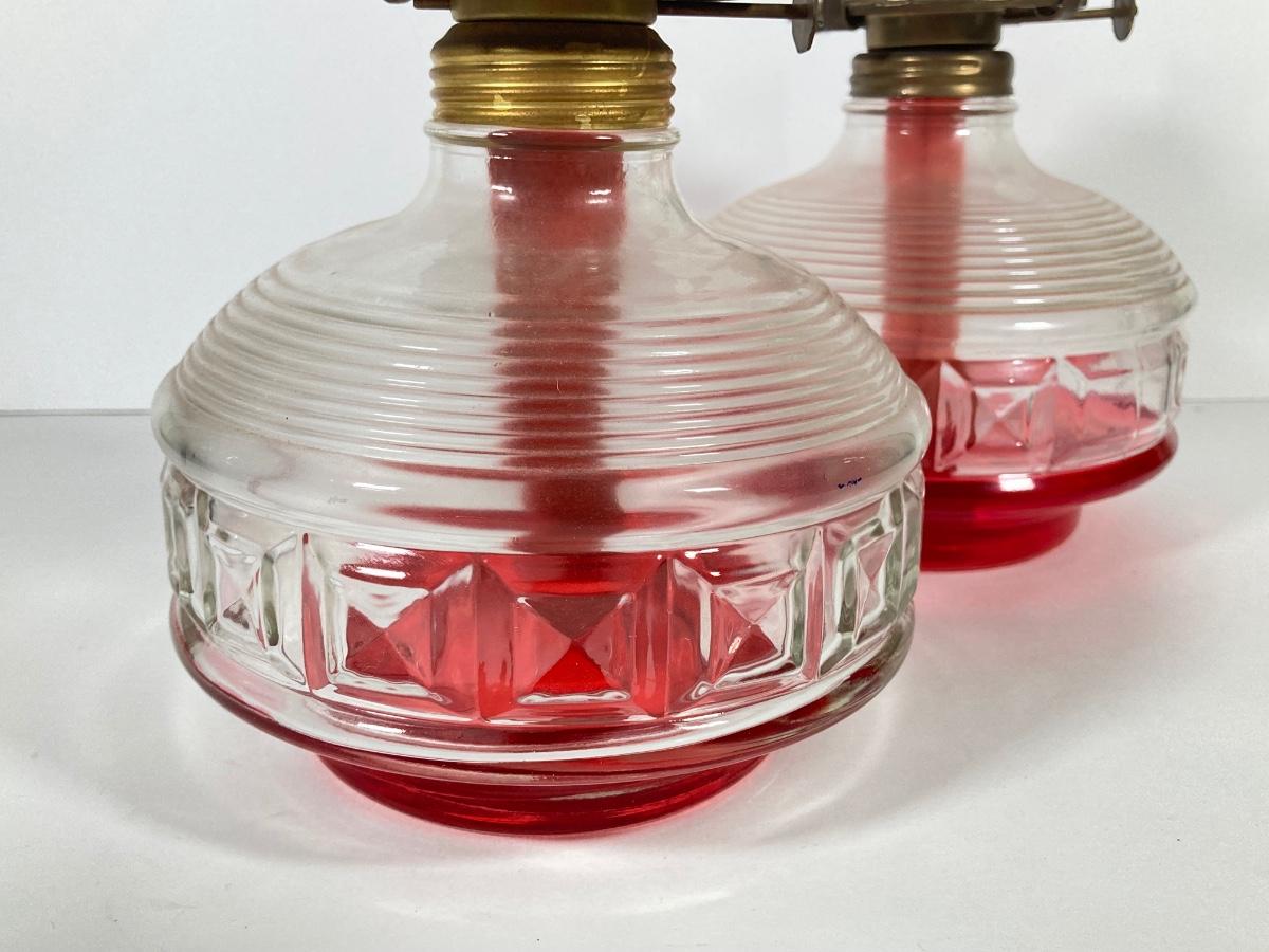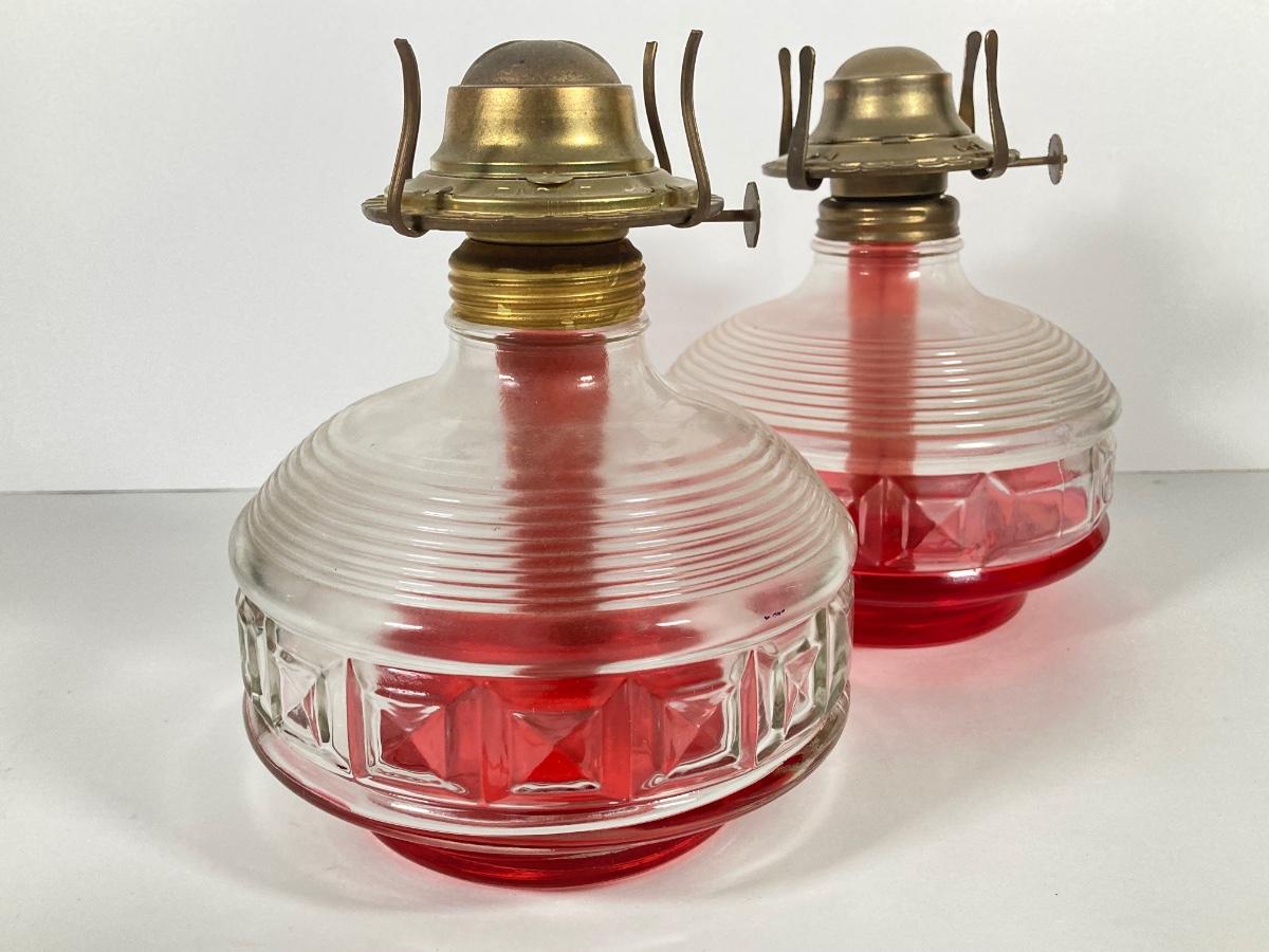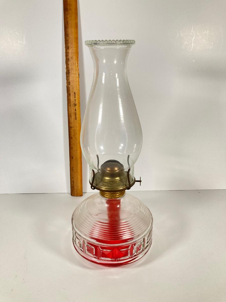 LOT 74: Set of Three Vintage Glass Oil Lanterns - Eagle and Aladdin Included