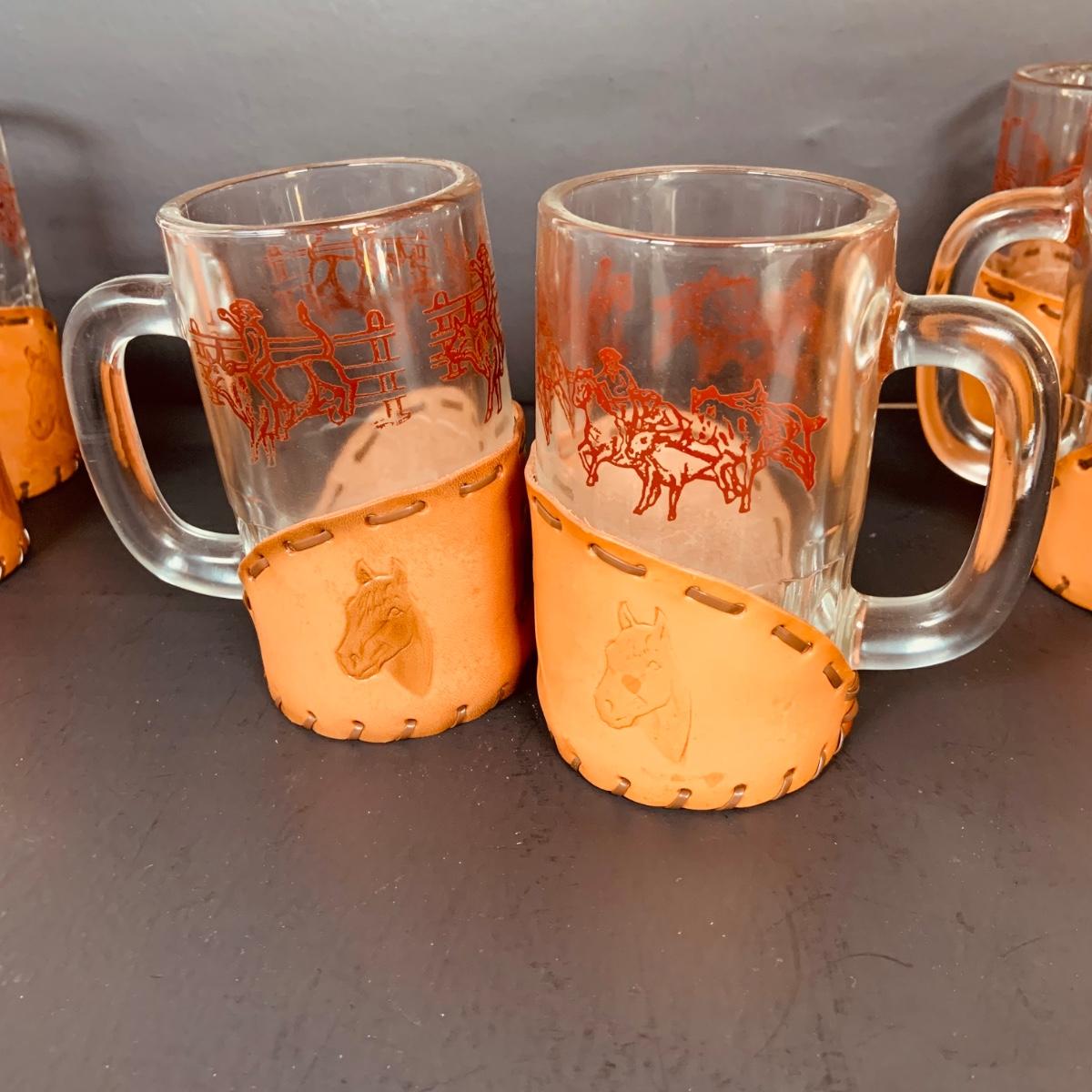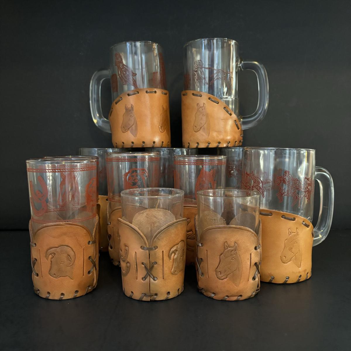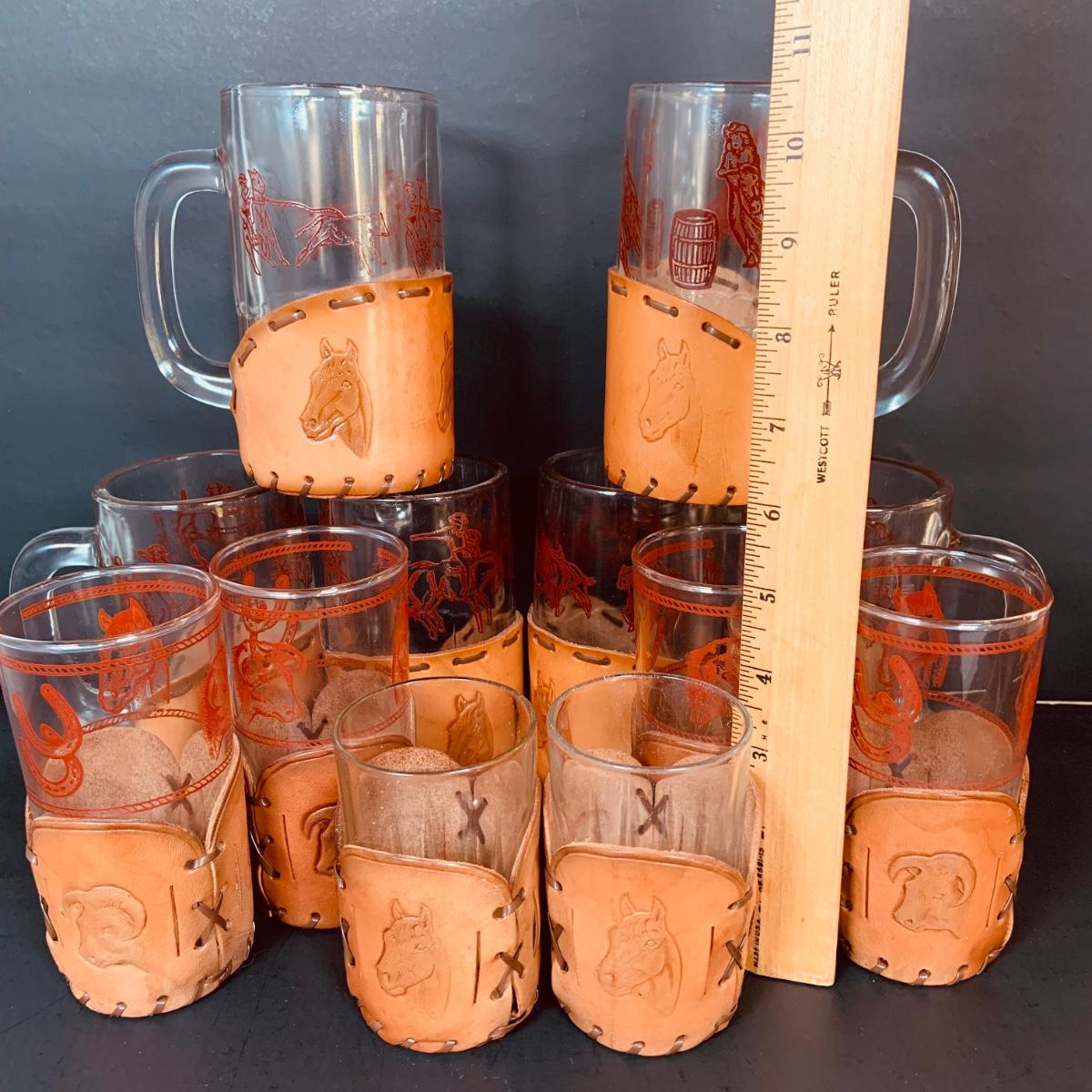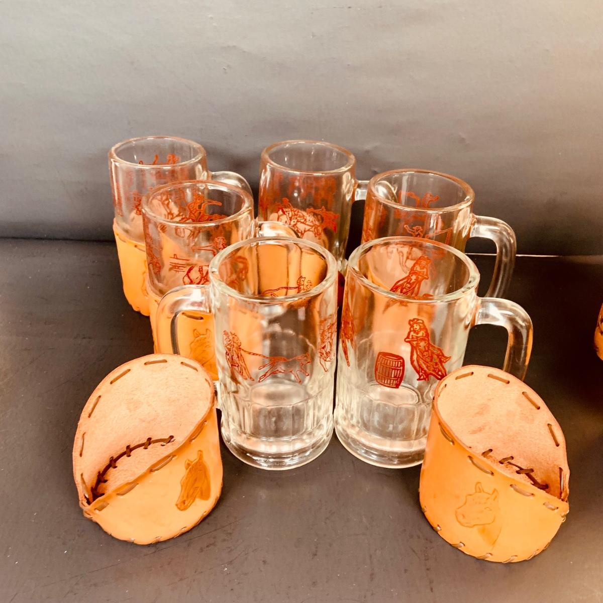 LOT:84: Collection of Vintage Western Themed Leather Wrapped Glasses and Mugs