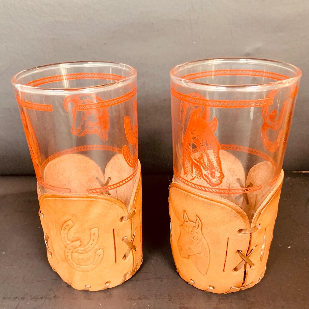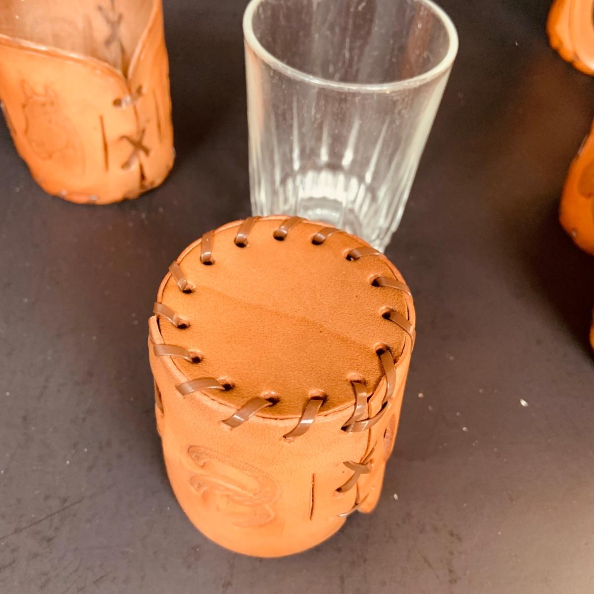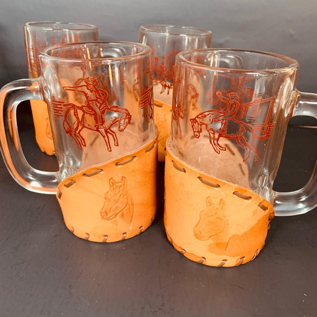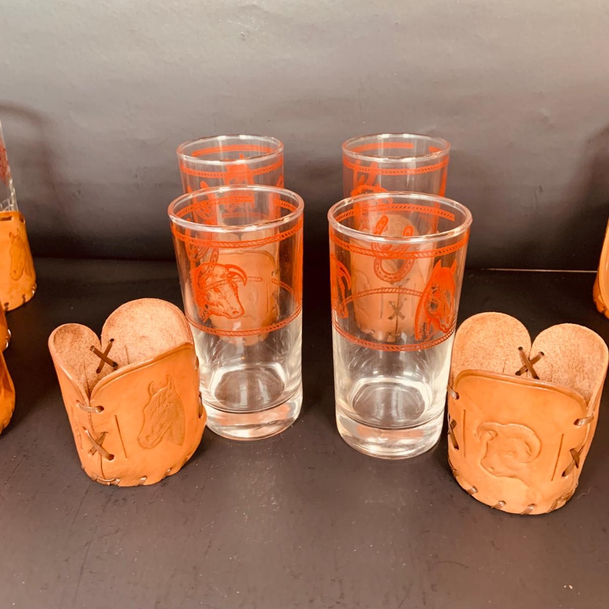 LOT:84: Collection of Vintage Western Themed Leather Wrapped Glasses and Mugs