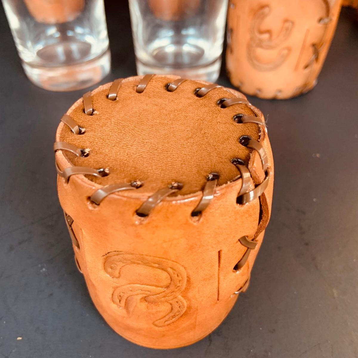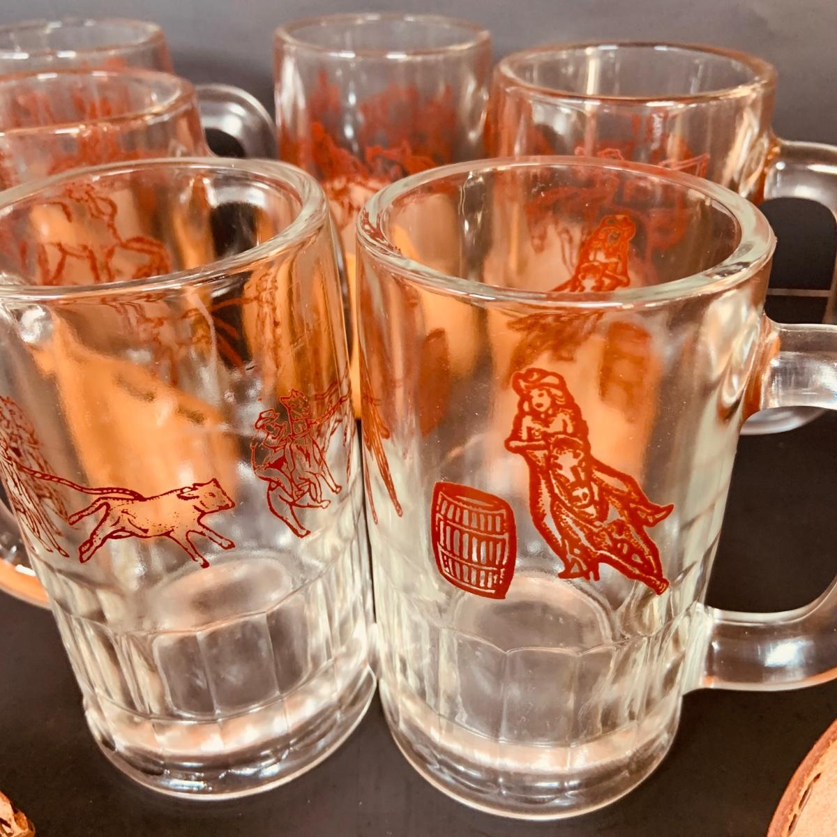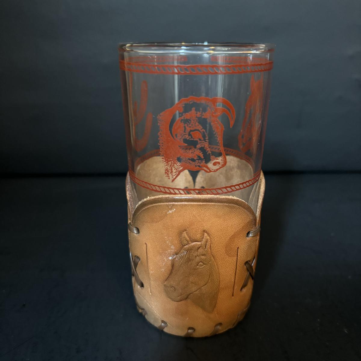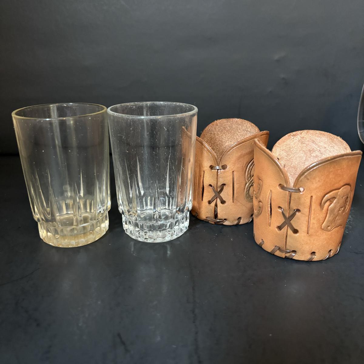 LOT:84: Collection of Vintage Western Themed Leather Wrapped Glasses and Mugs