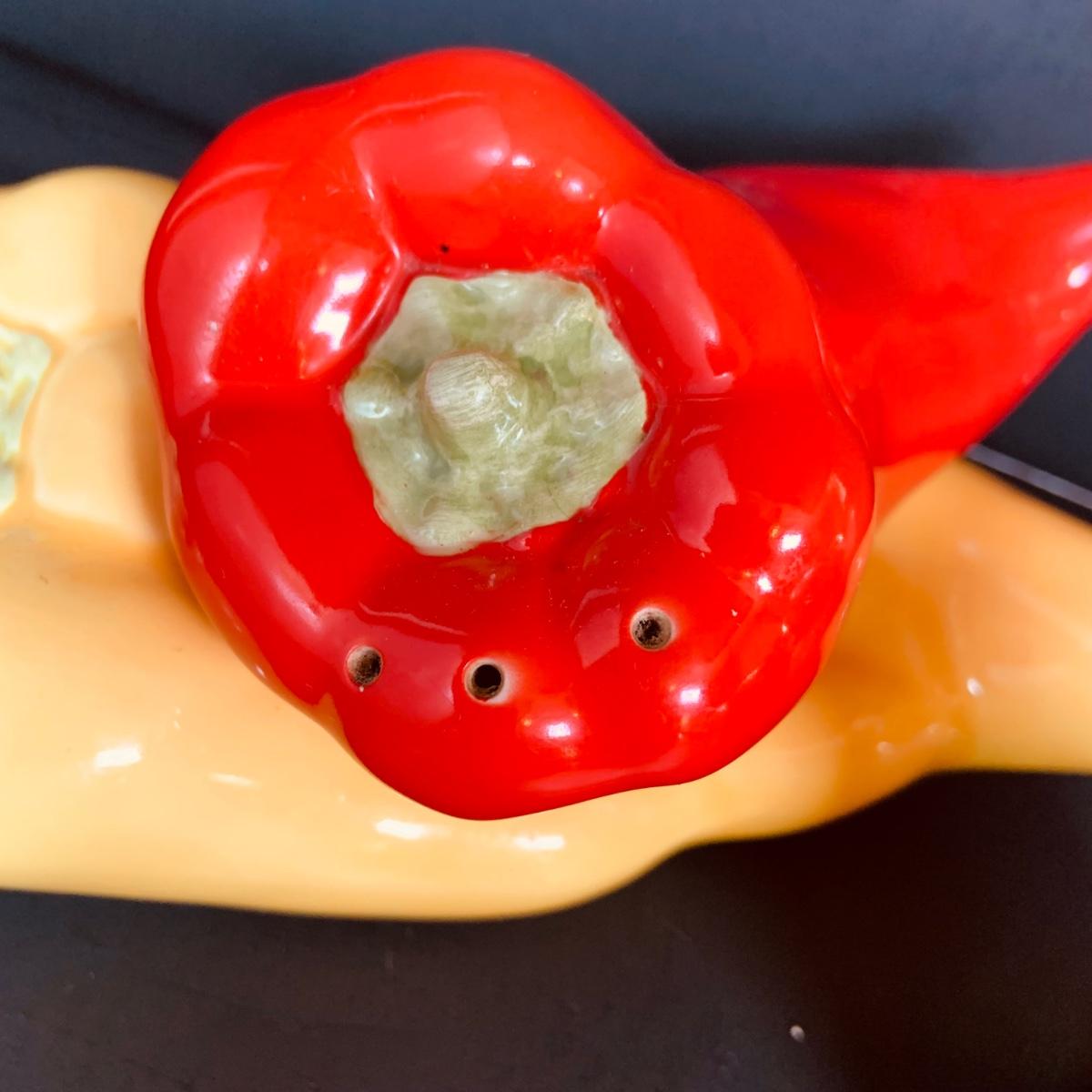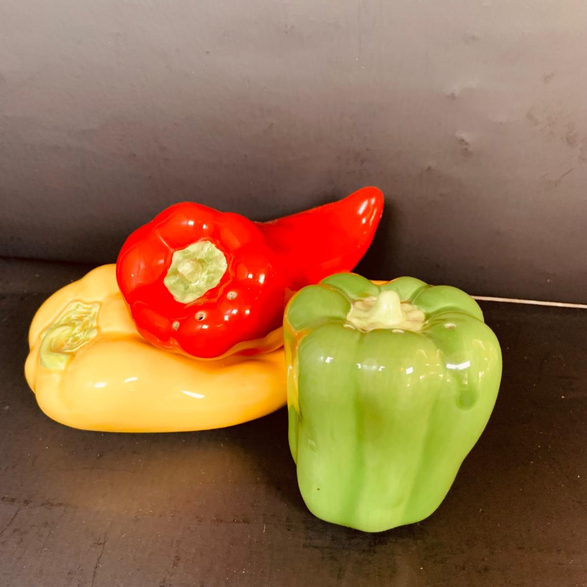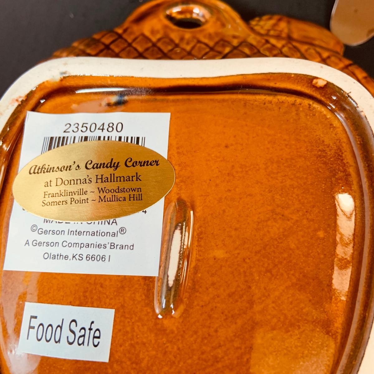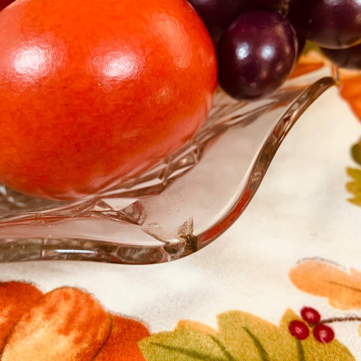 LOT:86: The Fall Kitchen with Vintage Wood Fruit, Ceramic Salt and Pepper sets, Glass Apple Jars, Pyrex Rupper Spatulas, a Stoneware Chefs Utensle Caddy with a Lazy Susan Base. Autum Placemats & More
