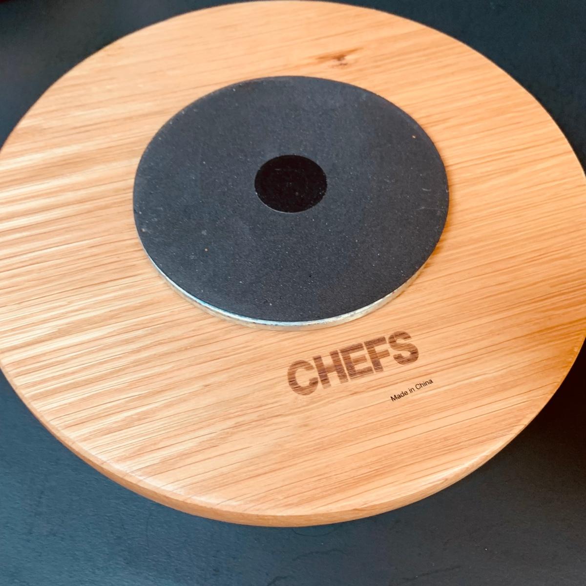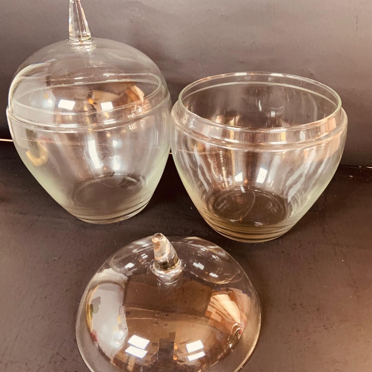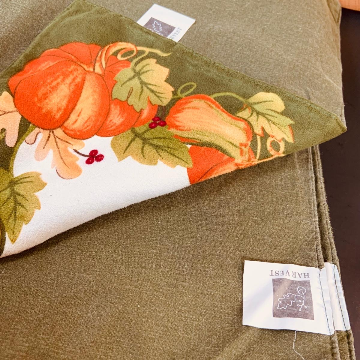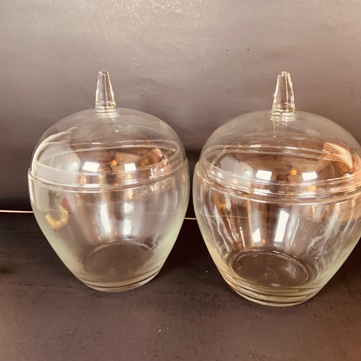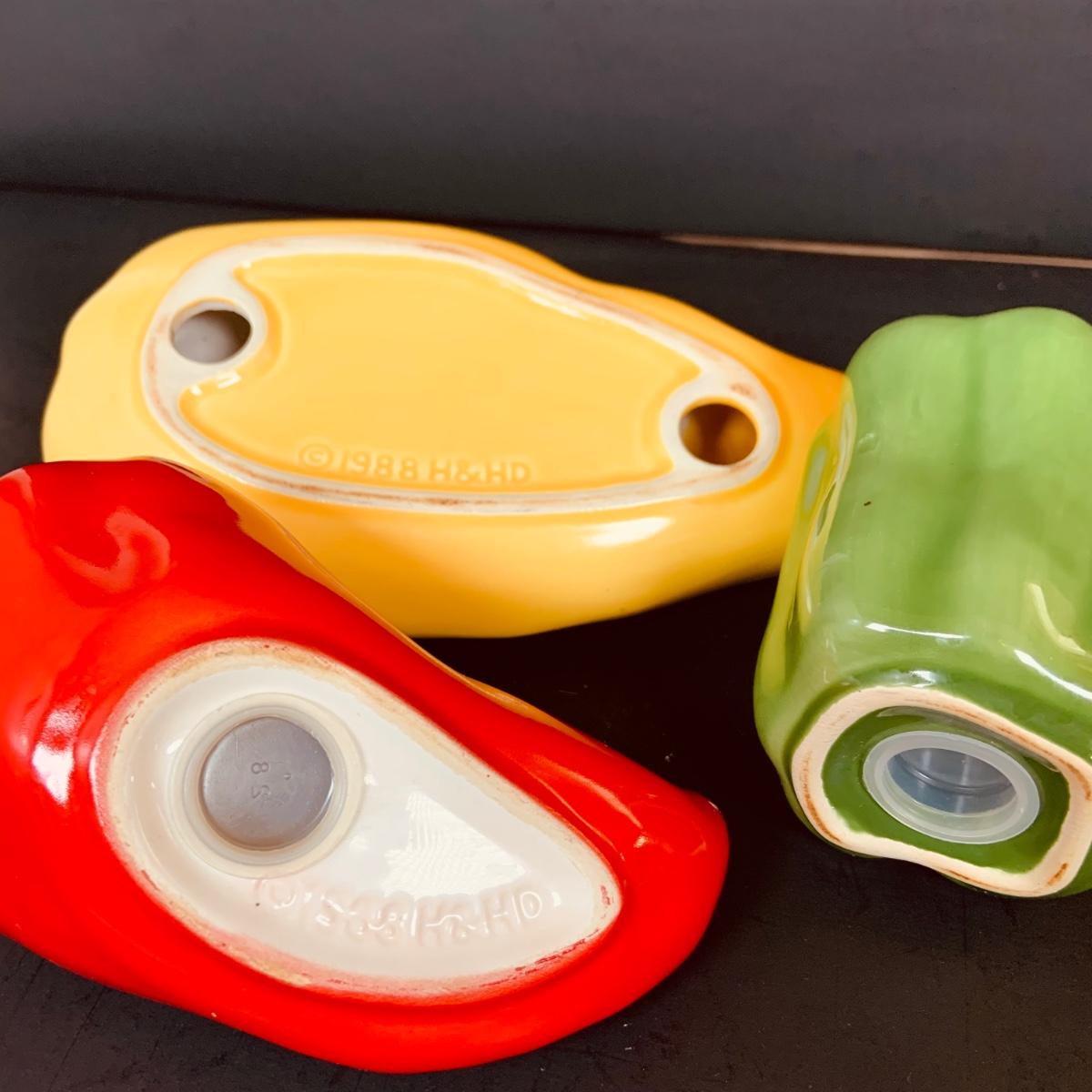 LOT:86: The Fall Kitchen with Vintage Wood Fruit, Ceramic Salt and Pepper sets, Glass Apple Jars, Pyrex Rupper Spatulas, a Stoneware Chefs Utensle Caddy with a Lazy Susan Base. Autum Placemats & More