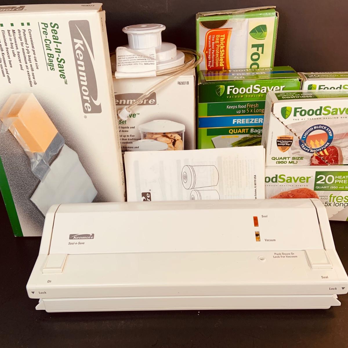 LOT:87: Kenmore Seal and Save Sealer, Canisters and Bags of Various Sizes and Brands