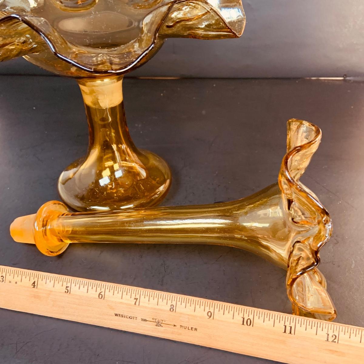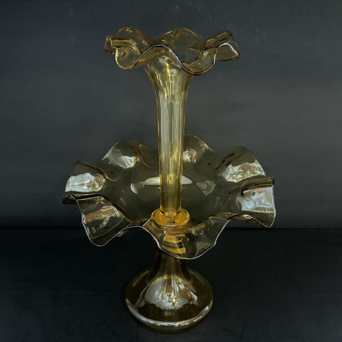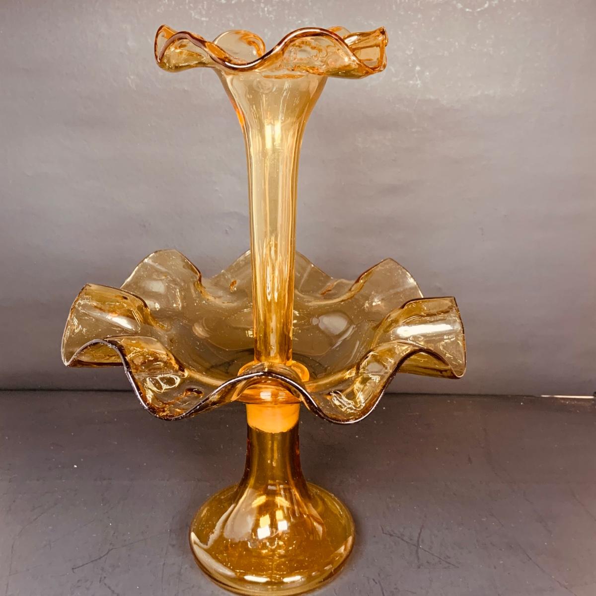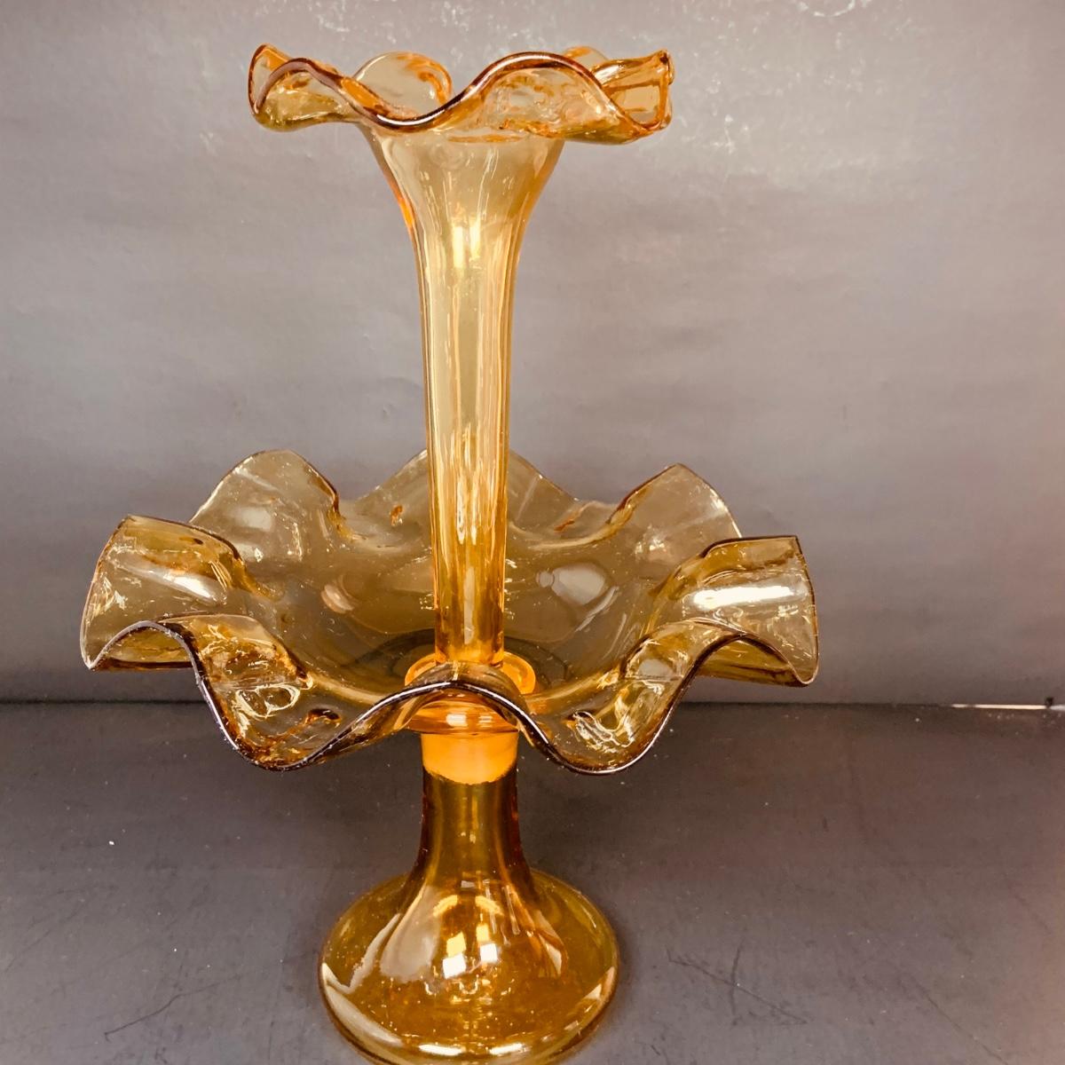LOT:90: Uniquely Beautiful Amber Handmade Blown Glass Two Piece Victorian Epergne