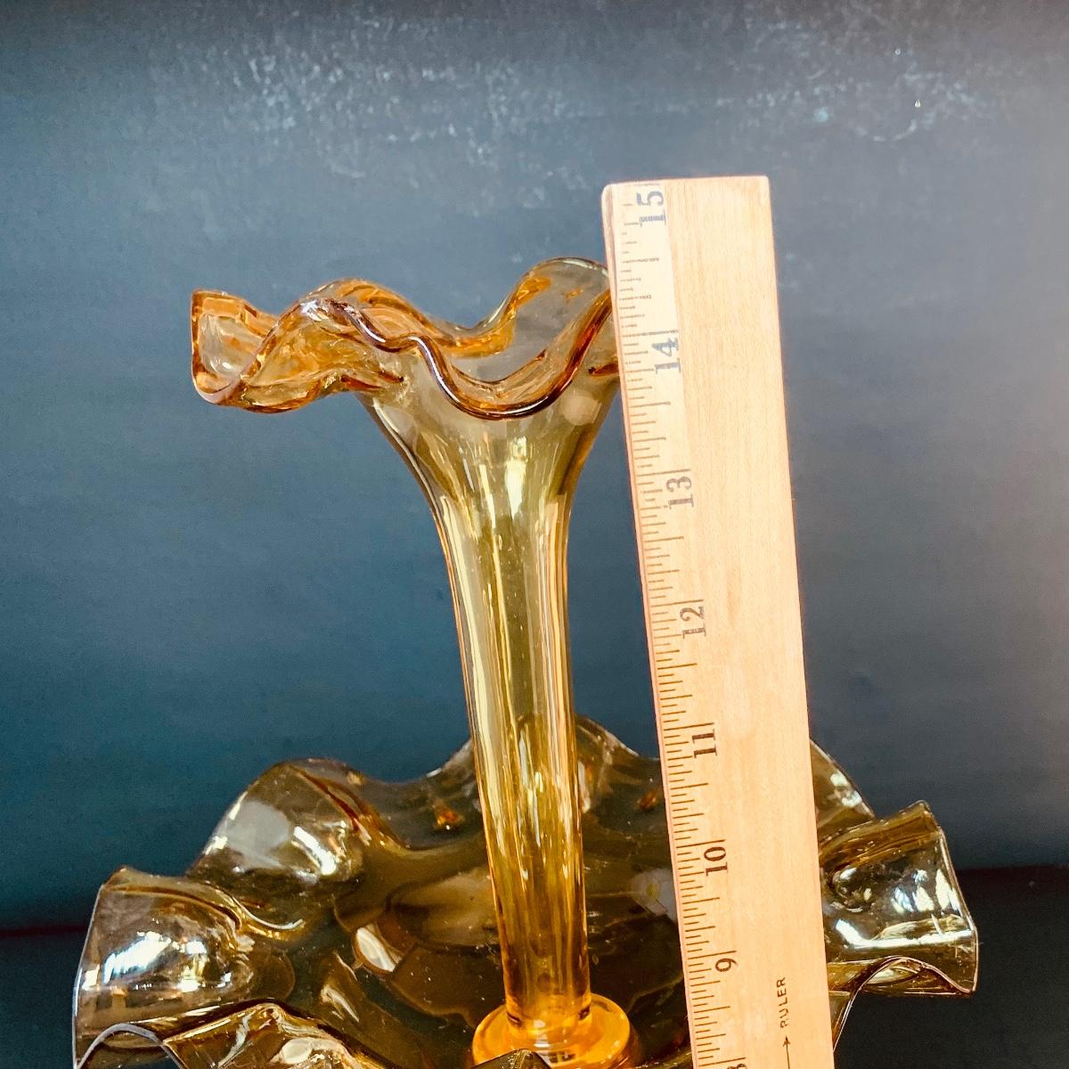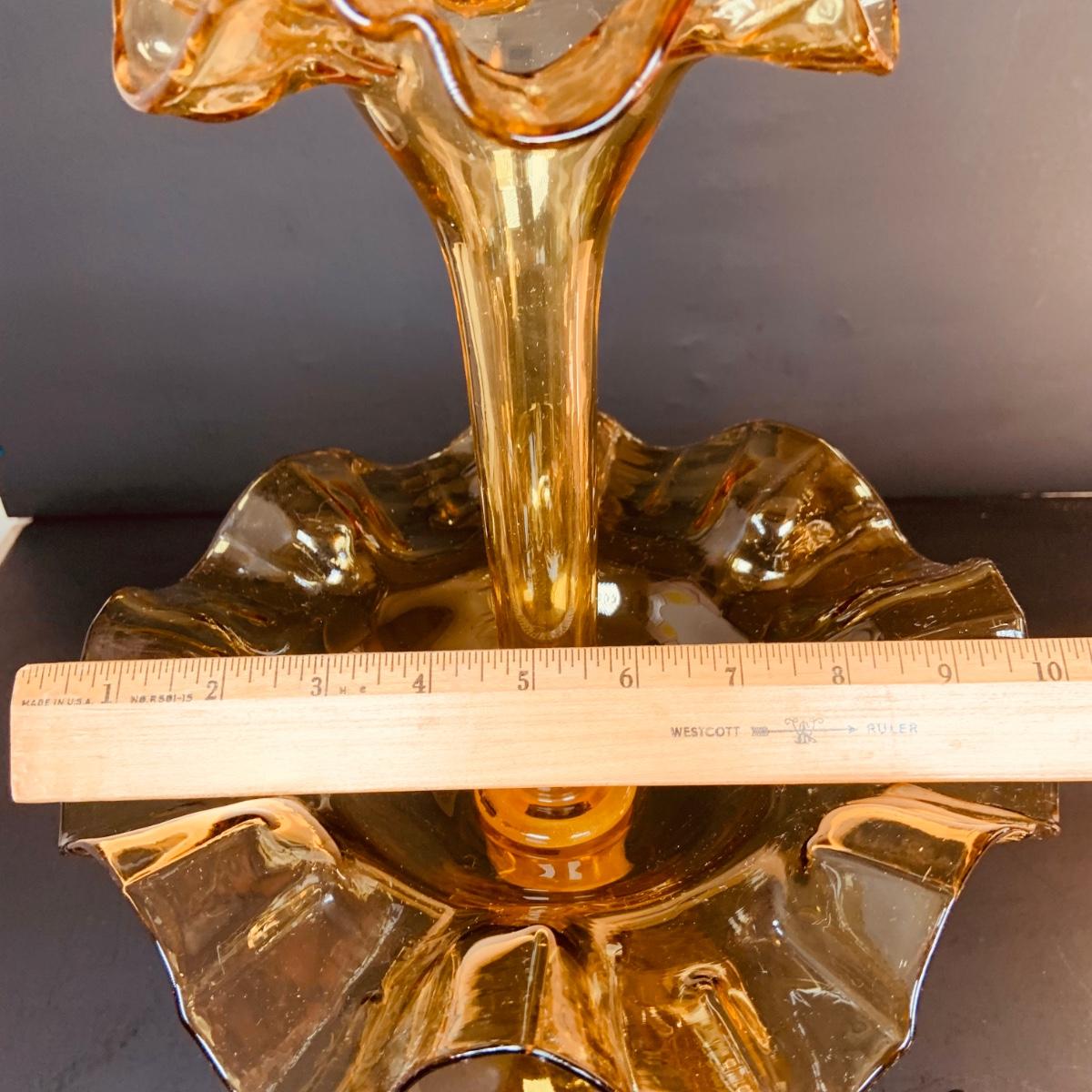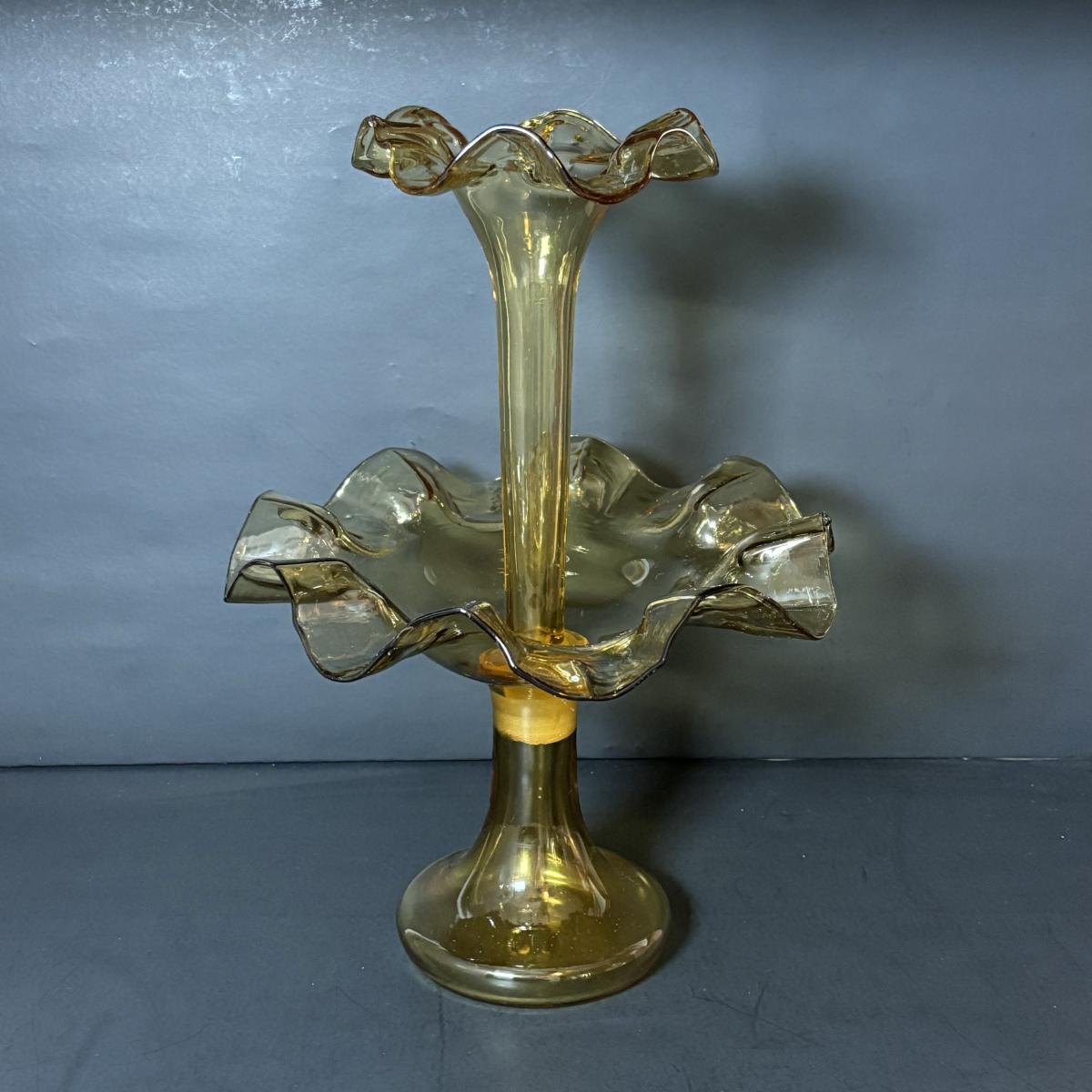 LOT:90: Uniquely Beautiful Amber Handmade Blown Glass Two Piece Victorian Epergne