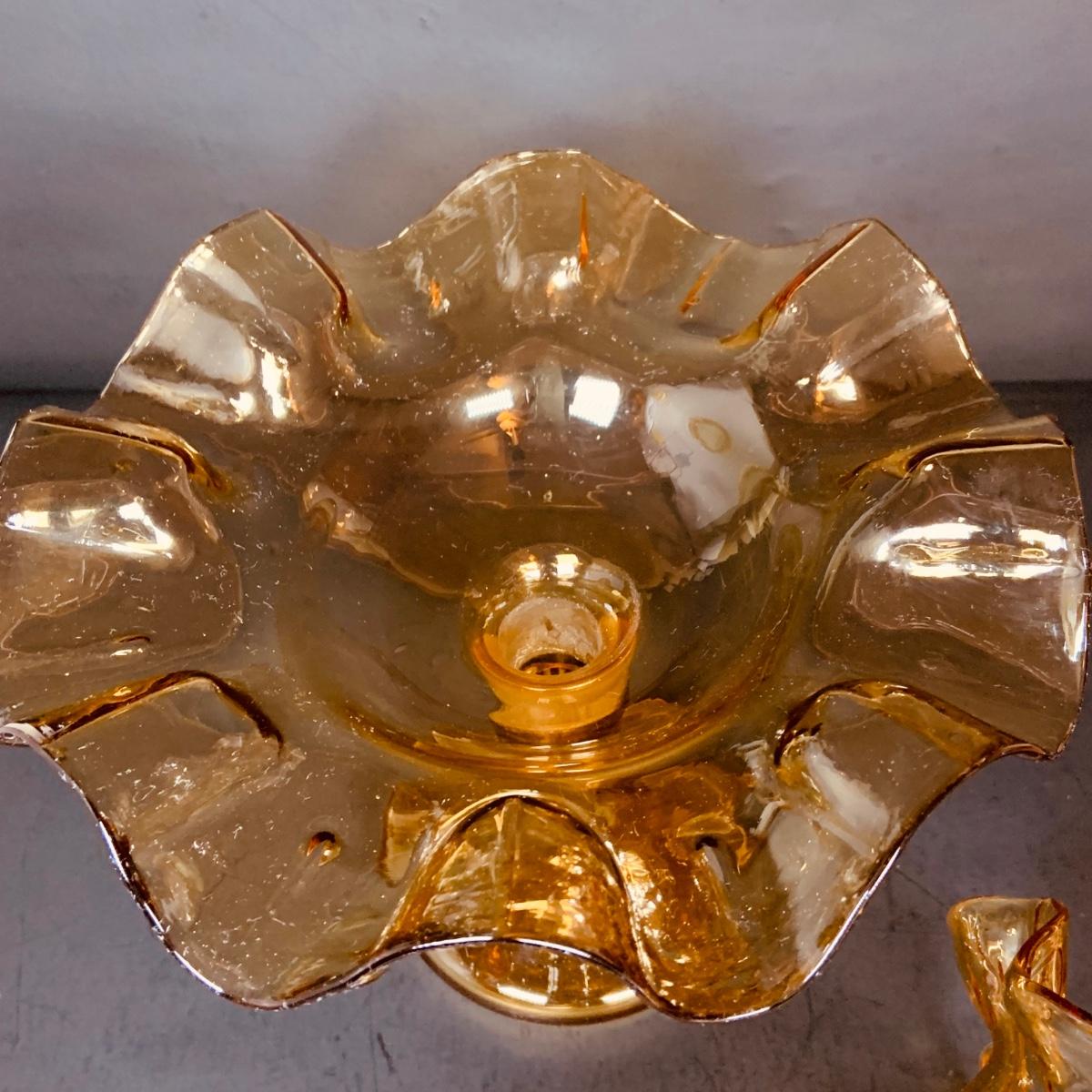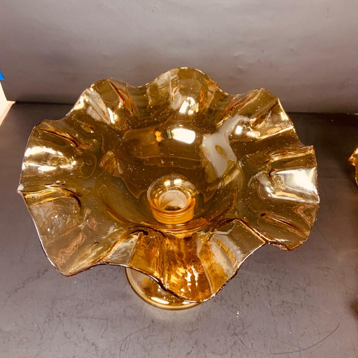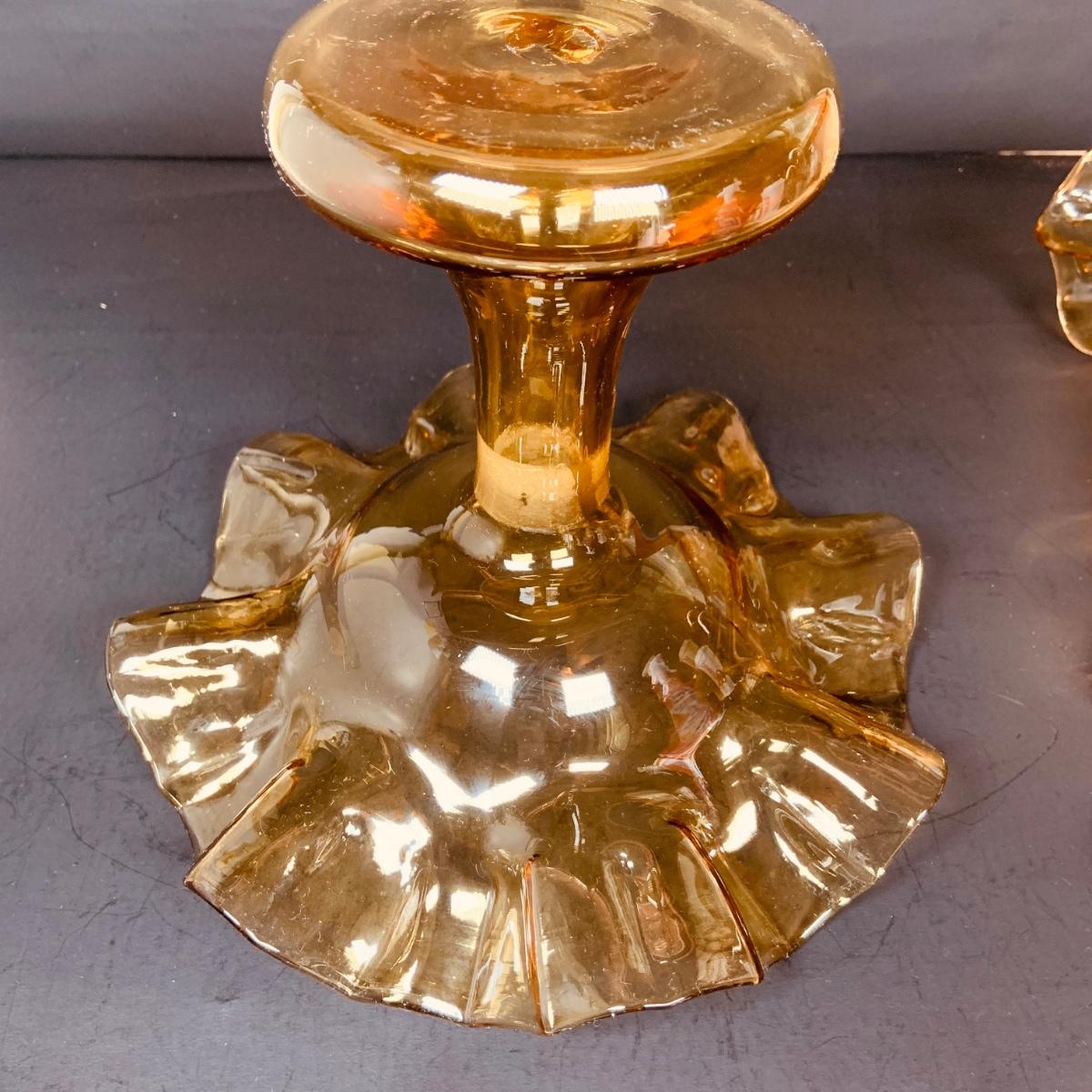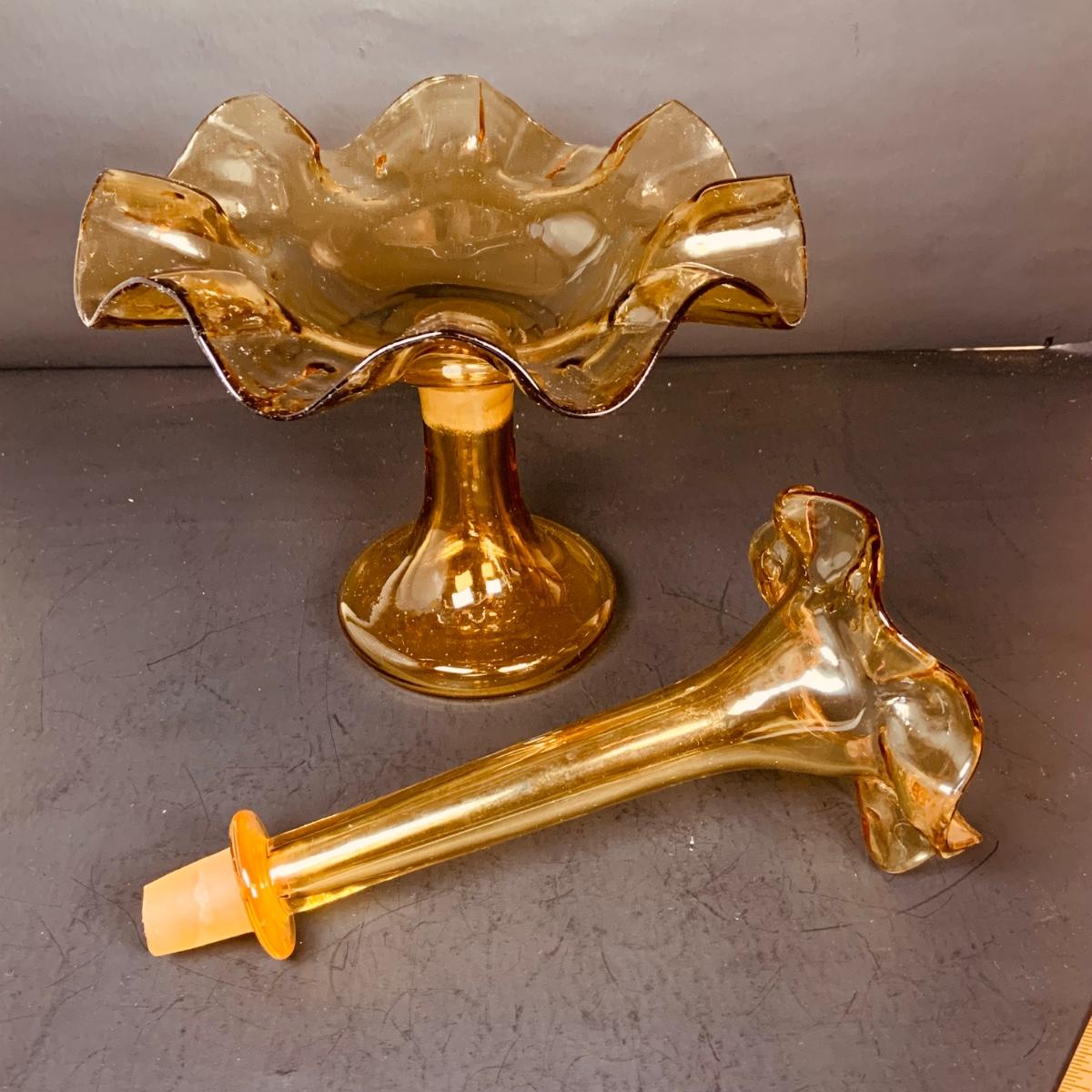 LOT:90: Uniquely Beautiful Amber Handmade Blown Glass Two Piece Victorian Epergne