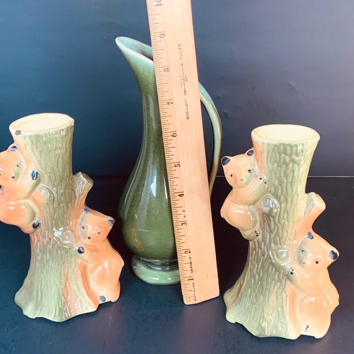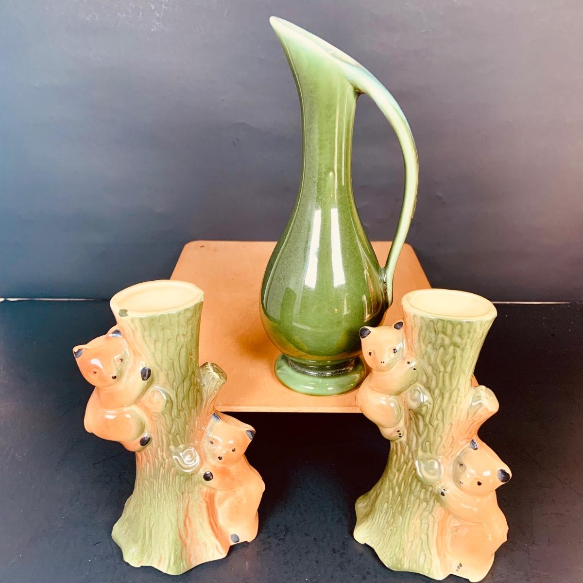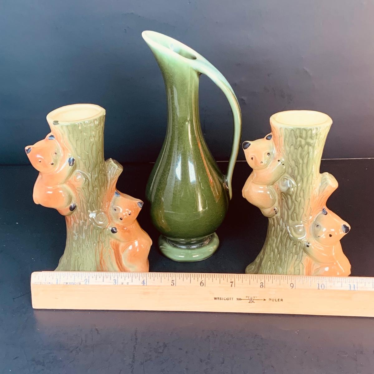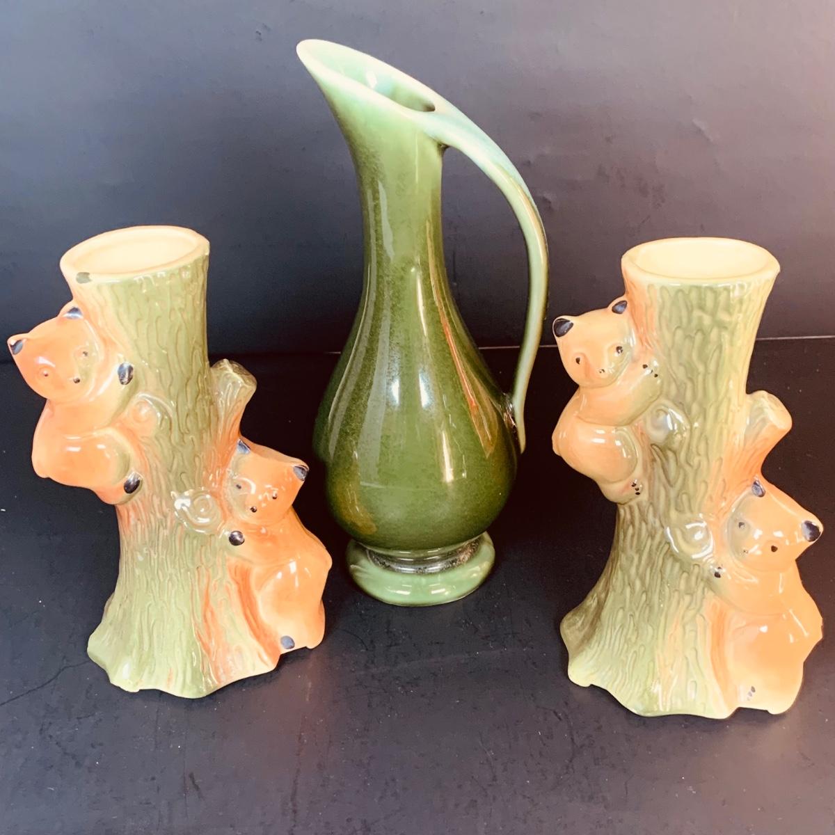 LOT:92: Set of 2 Vintage Ceramic Climbing Bear Vases, and a Vintage Ceramic Pitcher