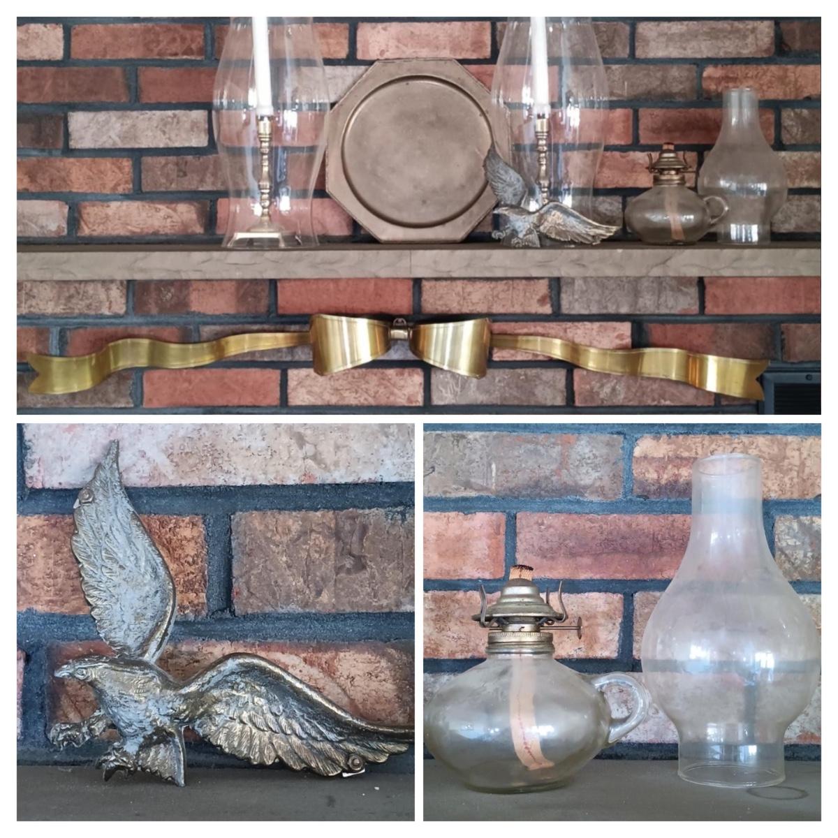 LOT 118: Vintage Glass Oil Lamp, Metal Ribbon Decor, Brass Tray & More