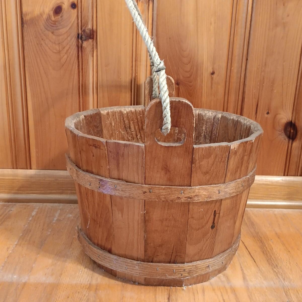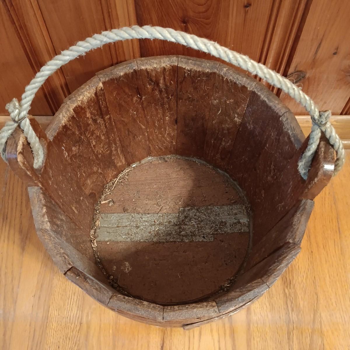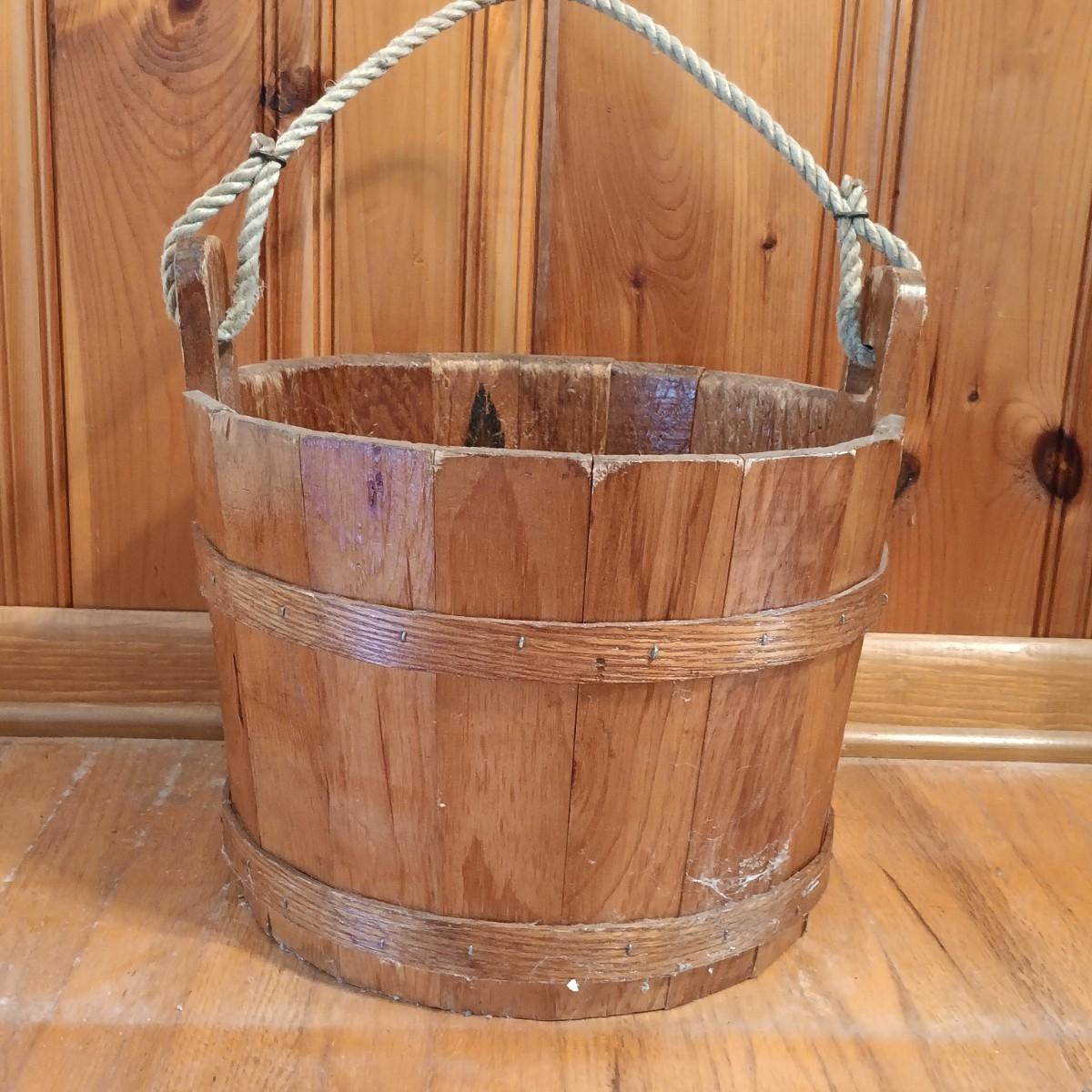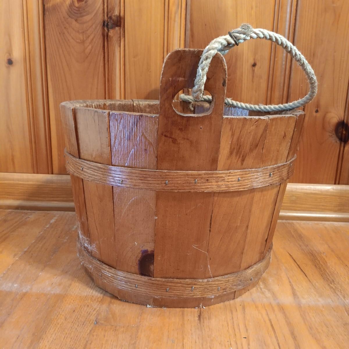 LOT 123: Primitive Decor Wood Scoop Wall Shelves, Wood Bucket and Wood Pocket Cage