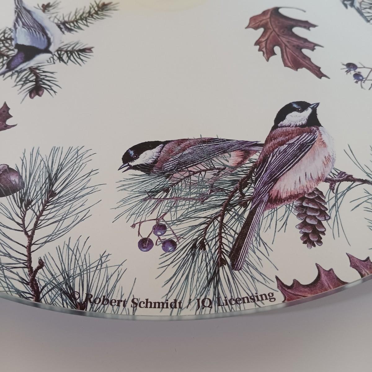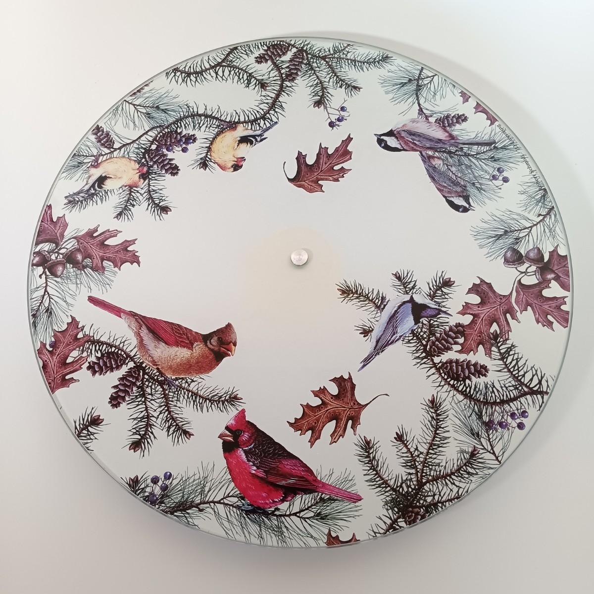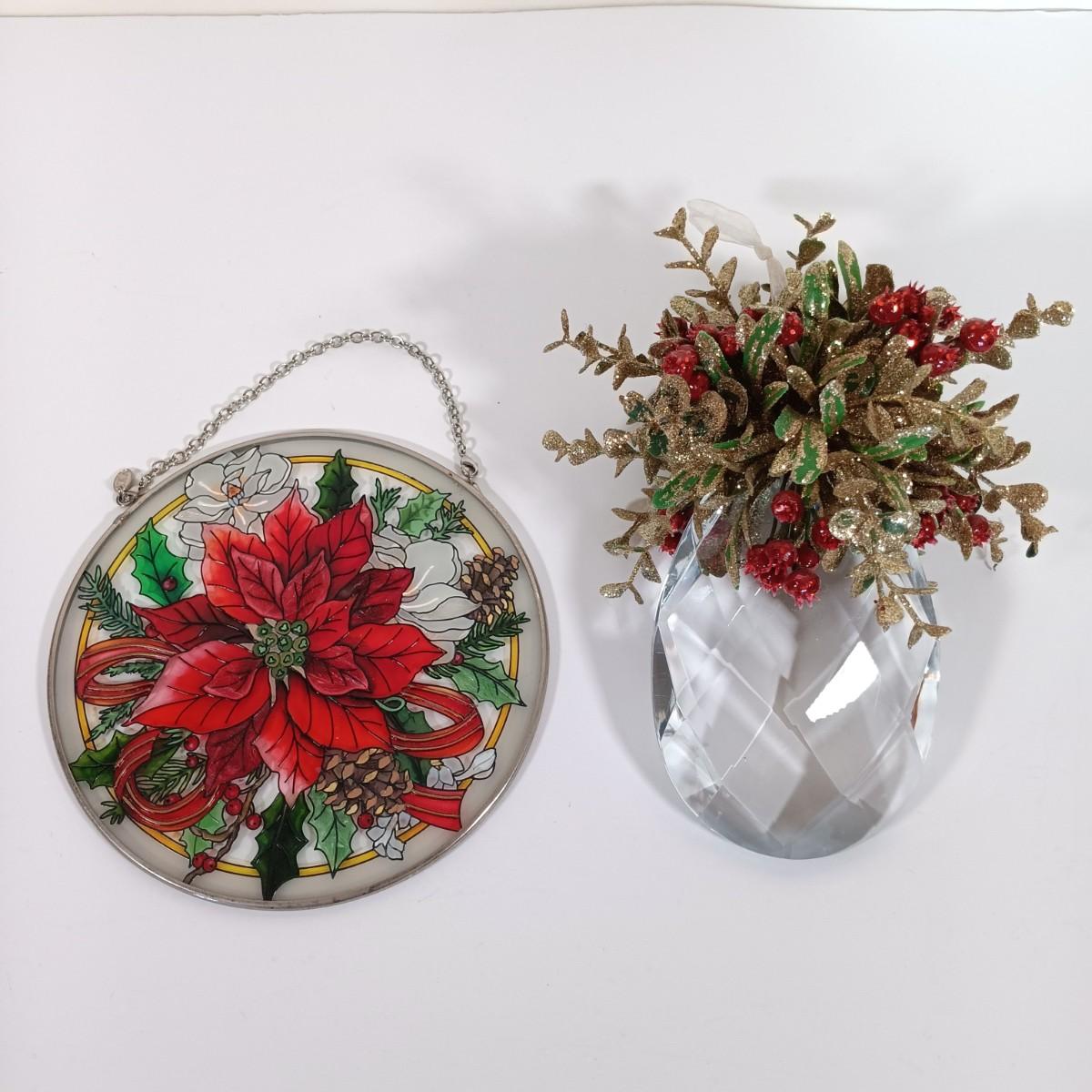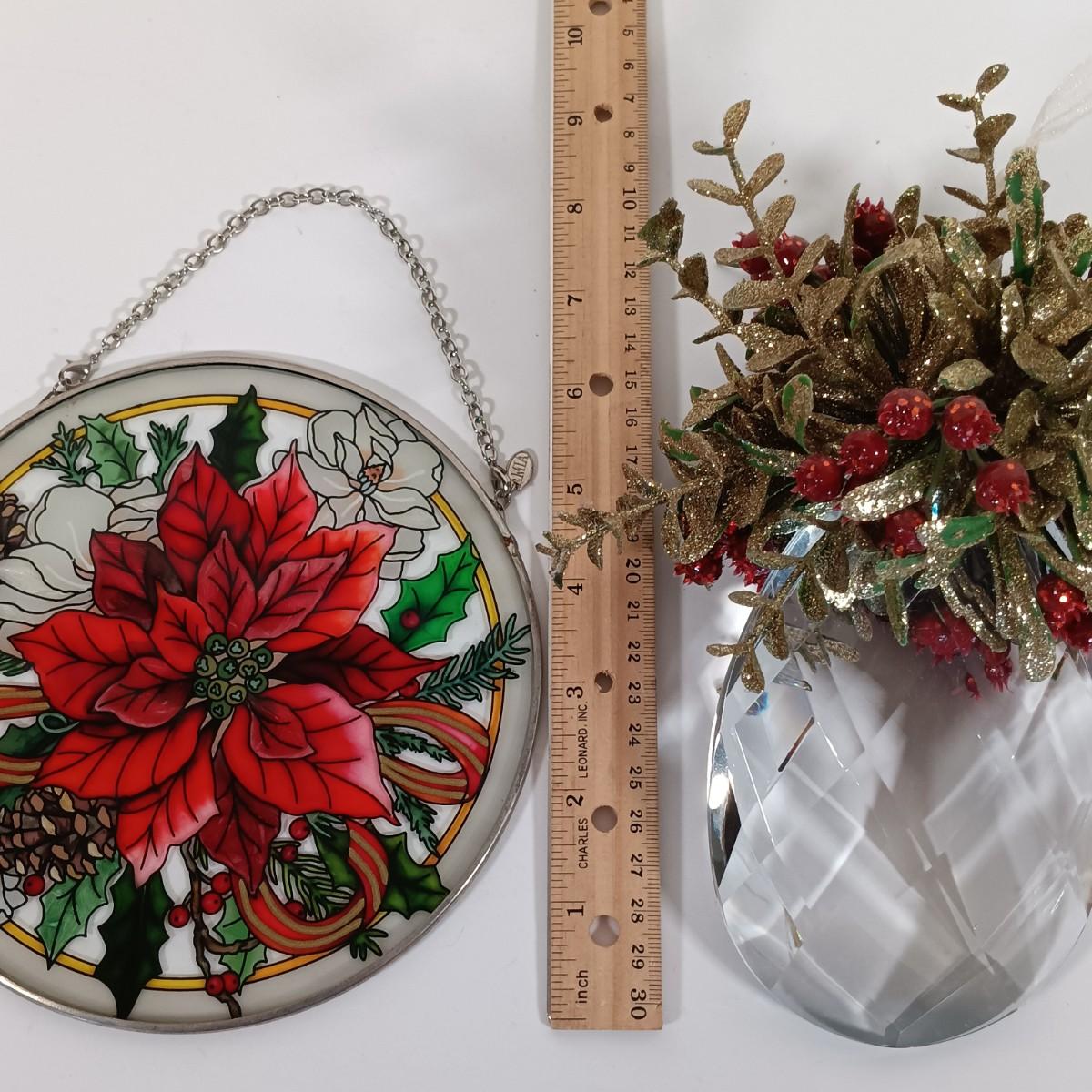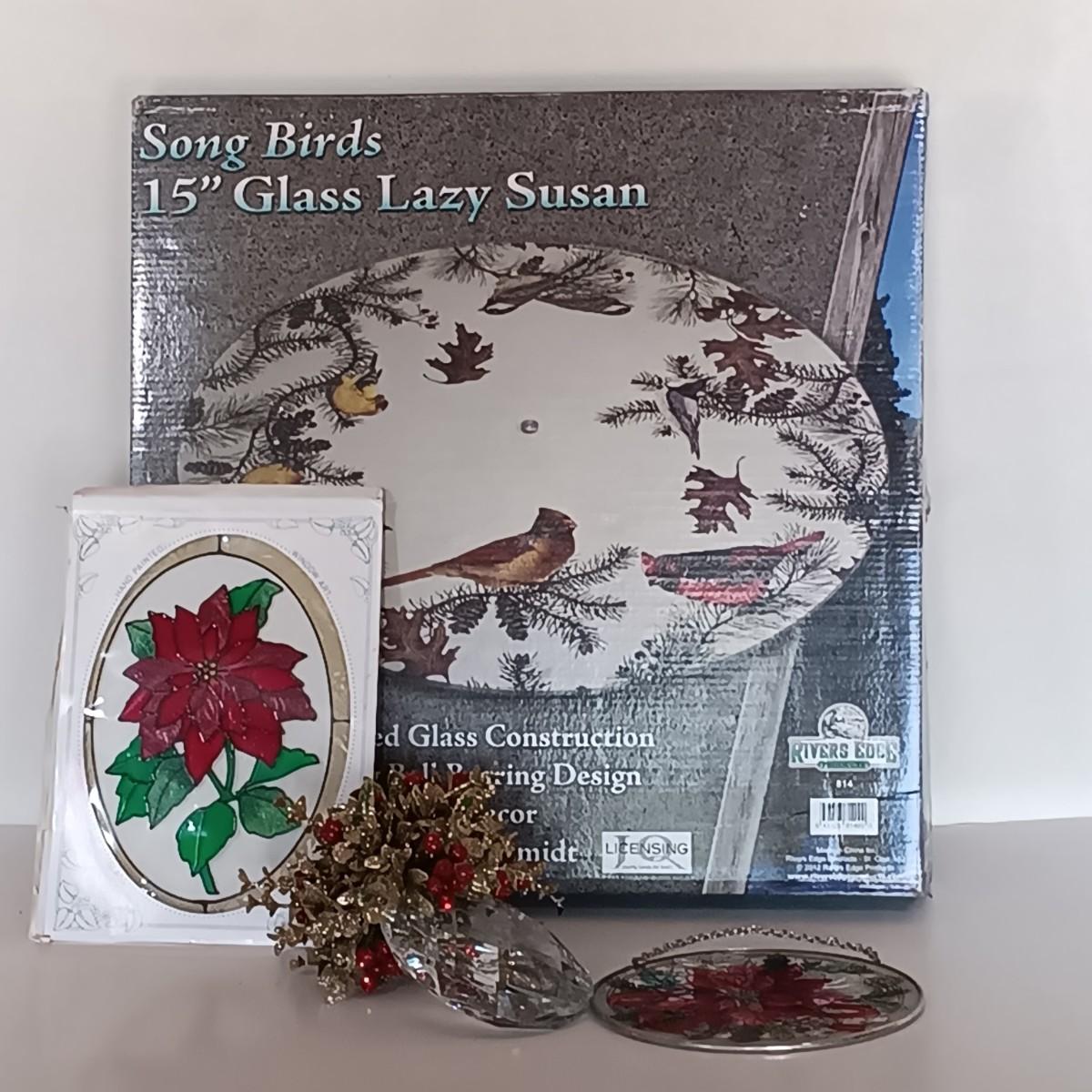 LOT 124: Rivers Edge 15" Glass Lazy Susan with Mistletoe and Stained Glass Ornaments