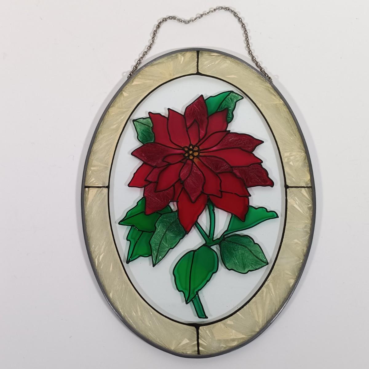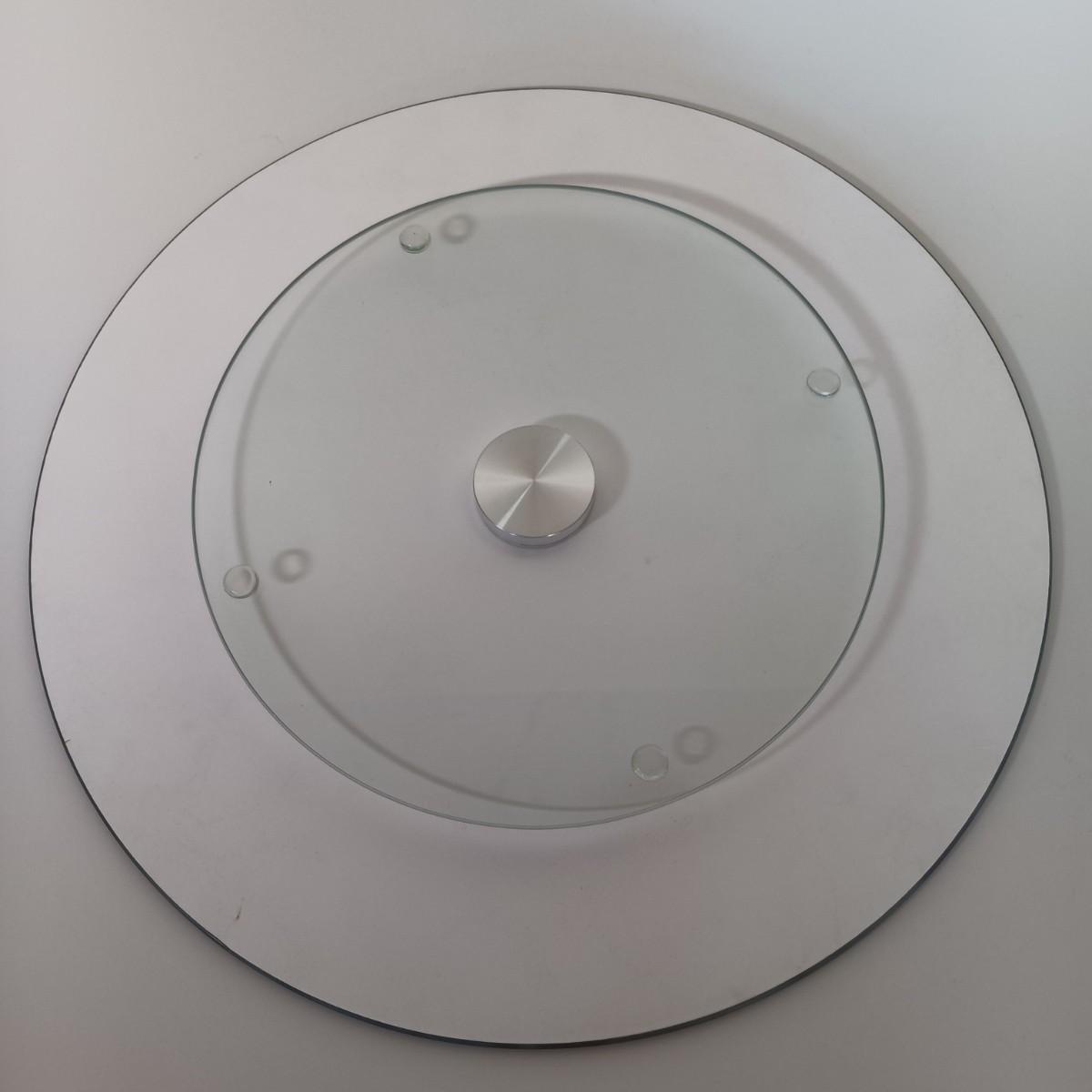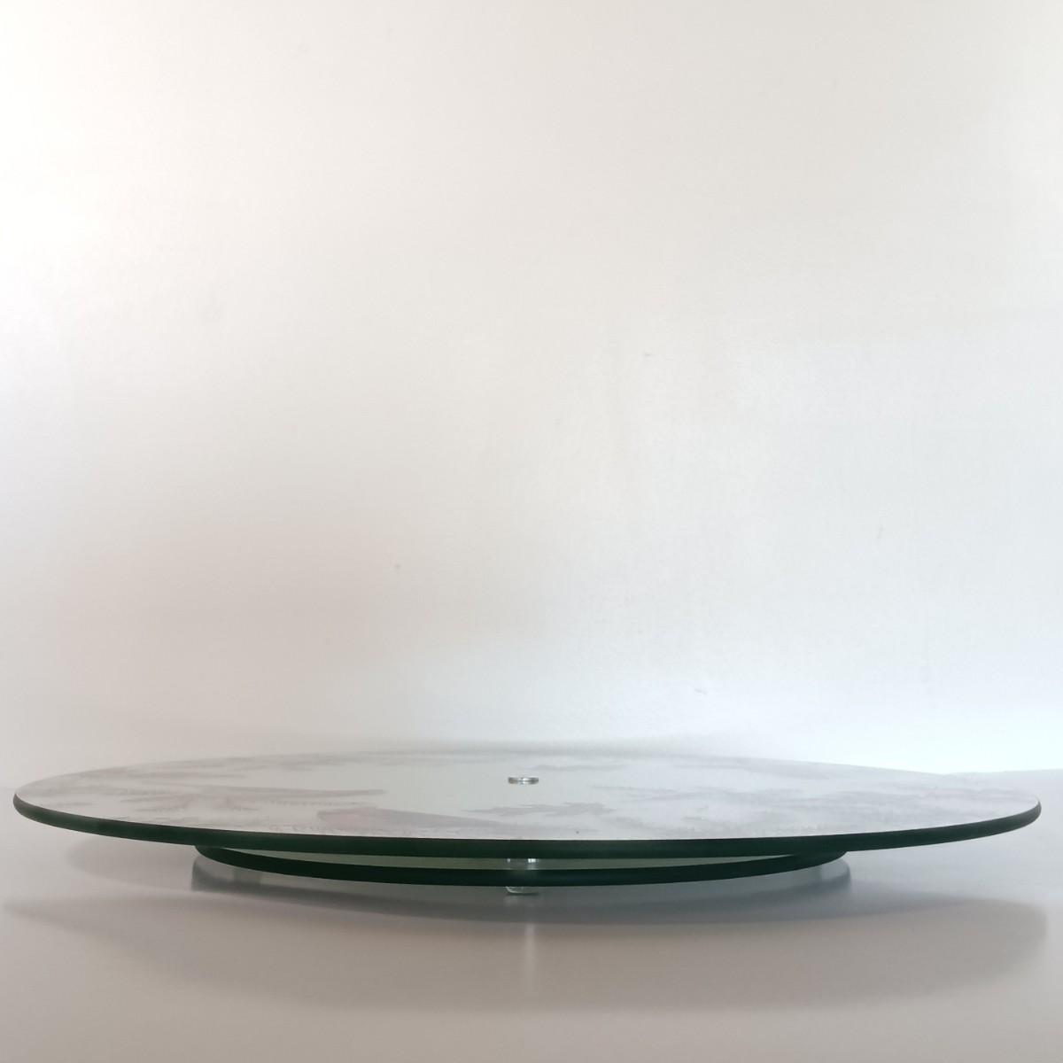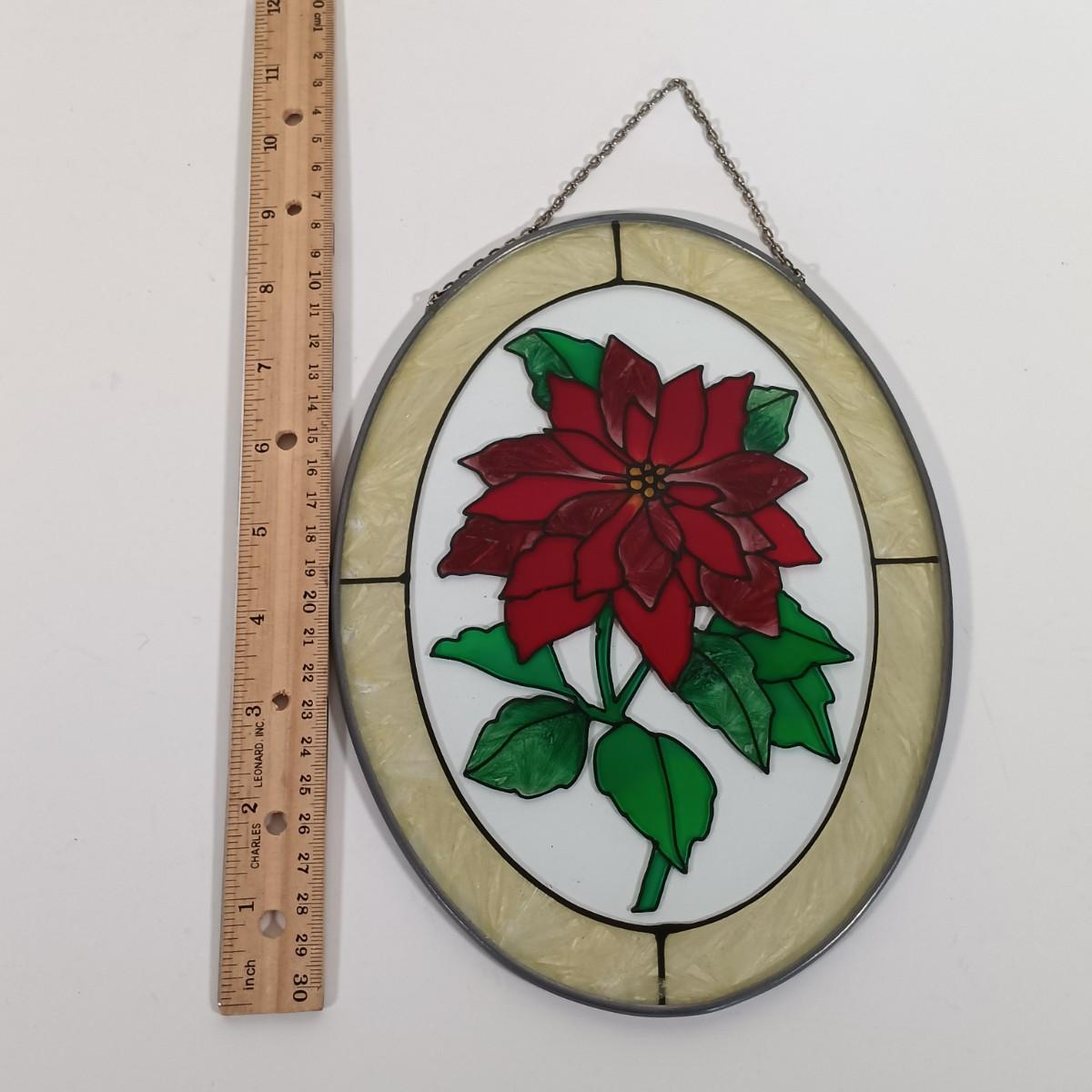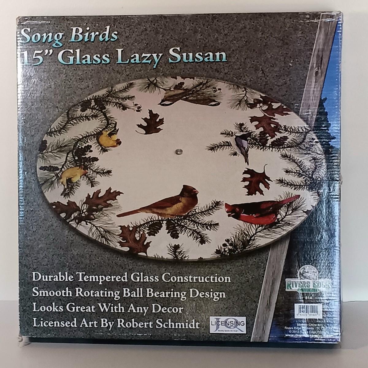 LOT 124: Rivers Edge 15" Glass Lazy Susan with Mistletoe and Stained Glass Ornaments