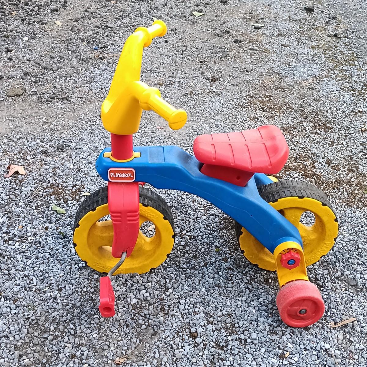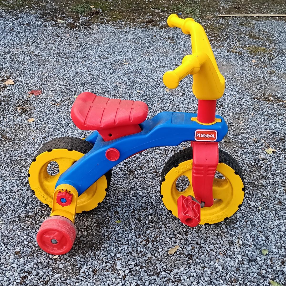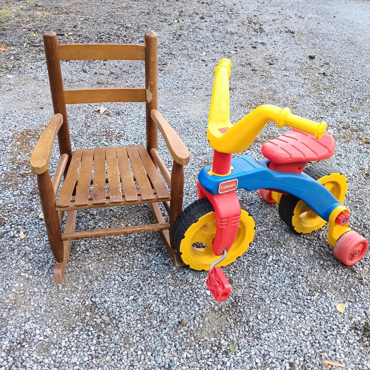 LOT 134: Vintage Playskool 1-2-3 Kids Bike with Wooden Rocking Chair