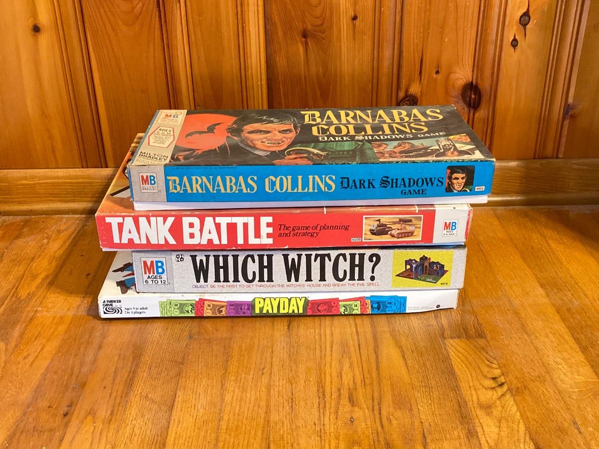 LOT 146: Vintage Board Games - Barnabas Collins / Dark Shadows, Tank Battle, Which Witch and Pay Day